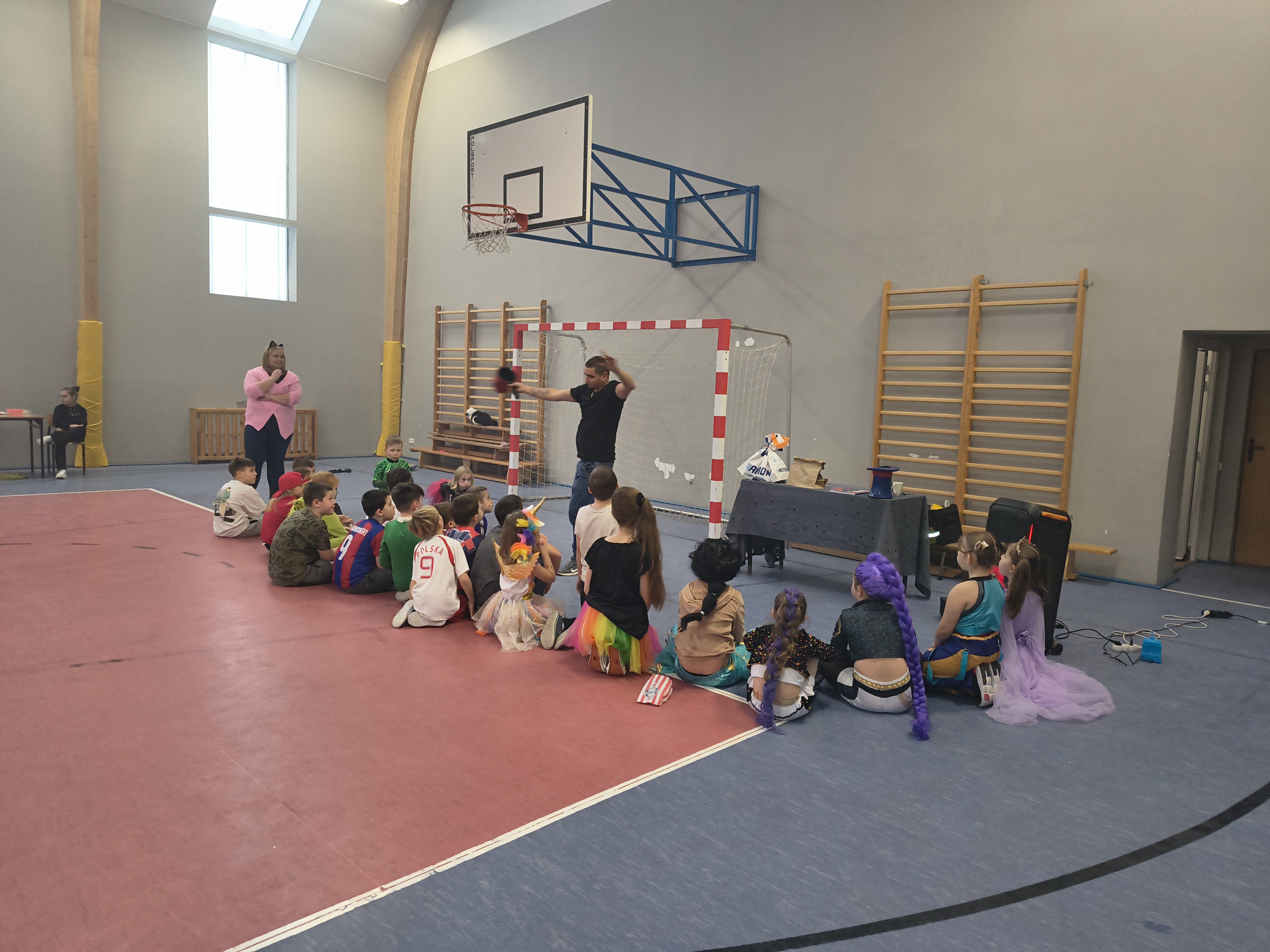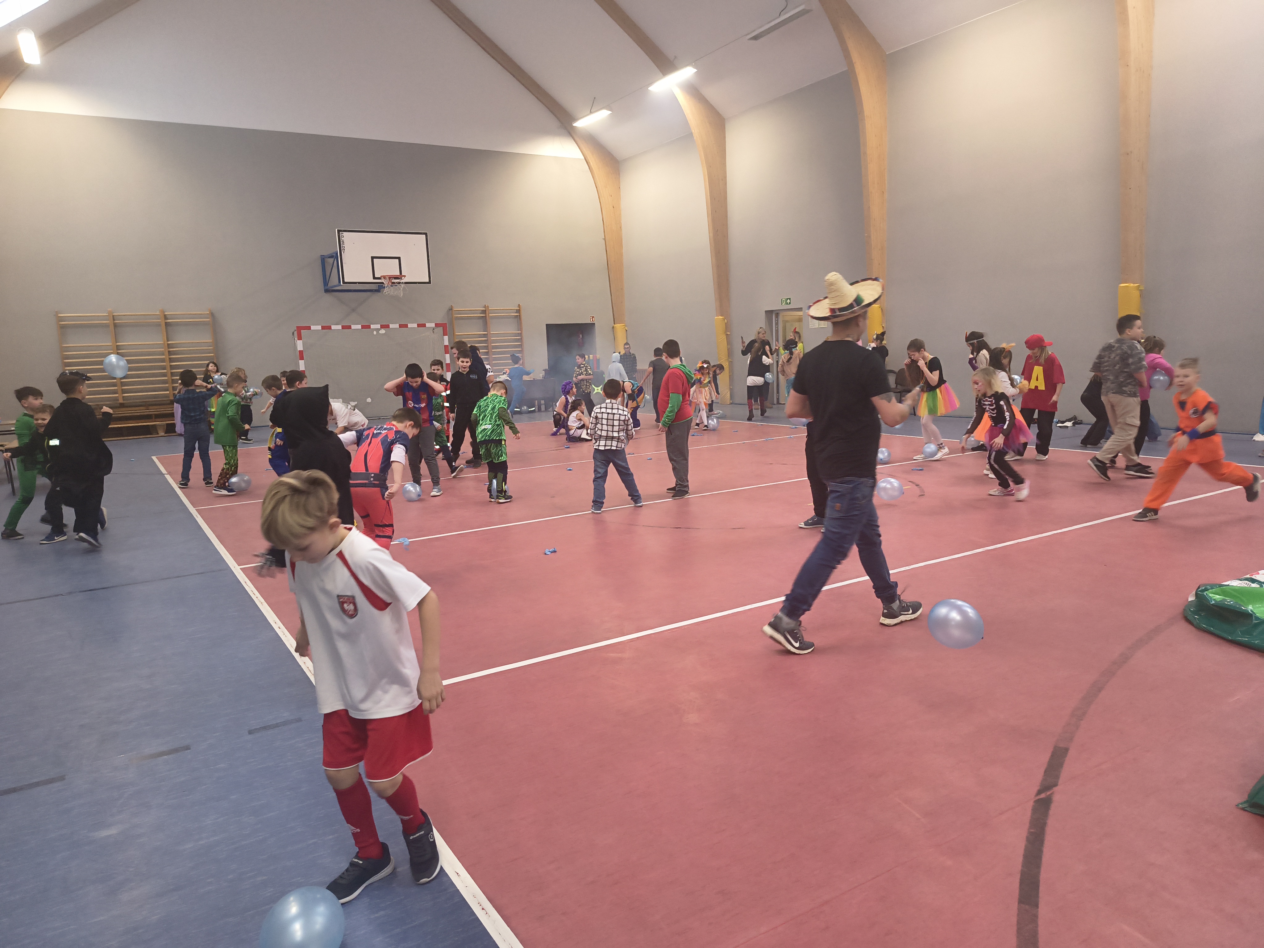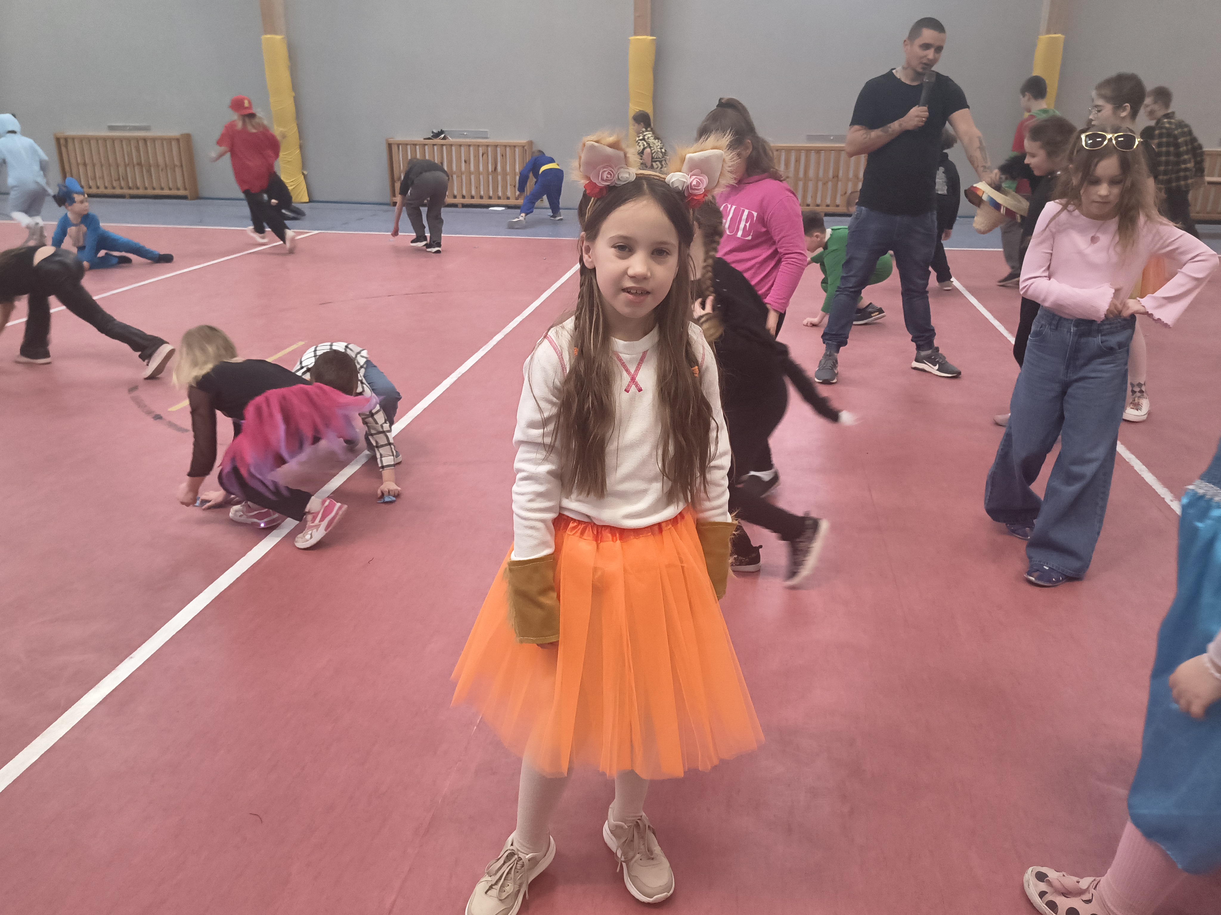 Dziś odbył się bal karnawałowy, który dostarczył wszystkim mnóstwo radości i niezapomnianych wrażeń. Na uczestników czekały pyszne atrakcje: wata cukrowa, tosty, ciastka, lemoniada oraz popcorn. Zabawa odbywała się przy wsparciu animatora, który dbał o świetną atmosferę, a ogromną frajdę sprawił także zamek dmuchany.