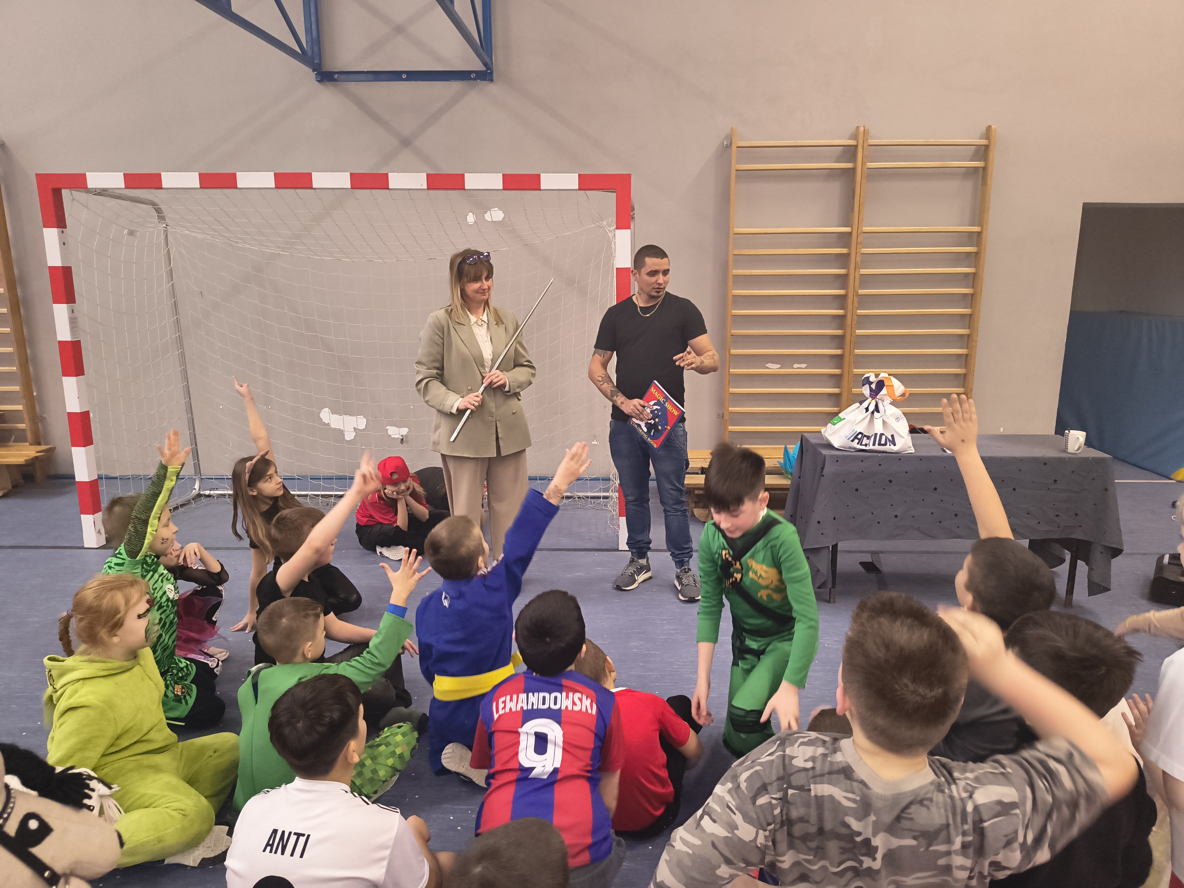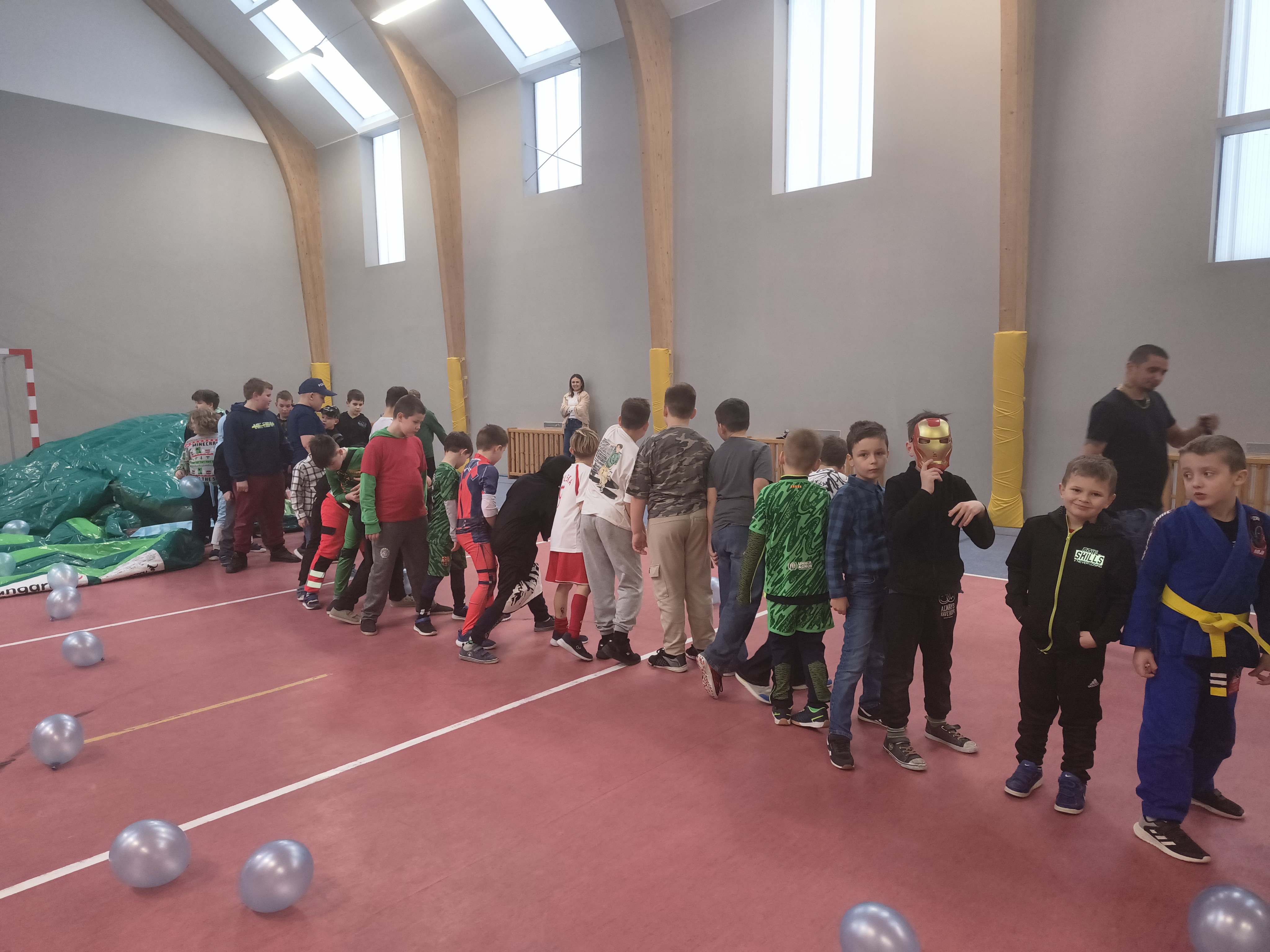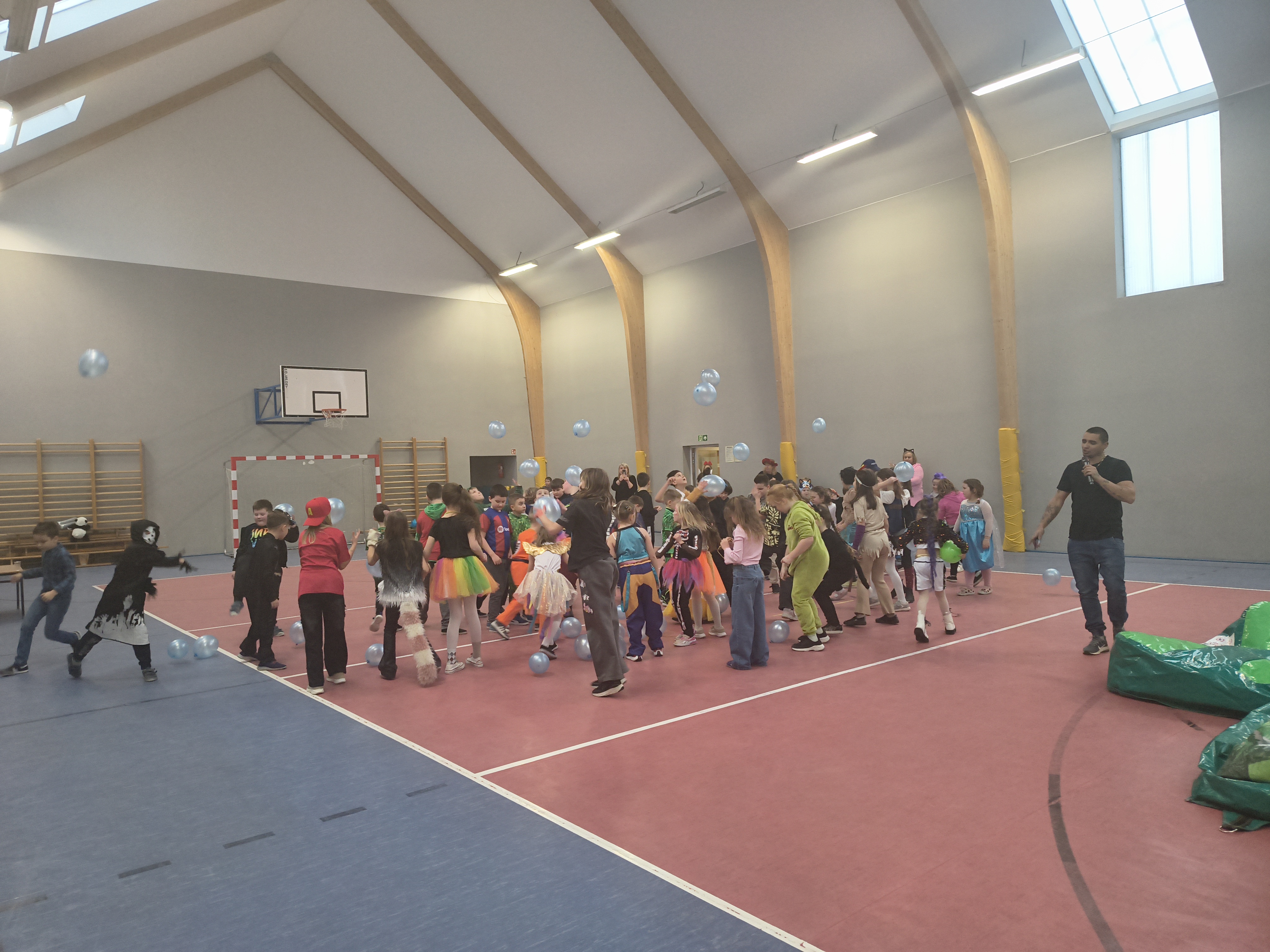 Dziś odbył się bal karnawałowy, który dostarczył wszystkim mnóstwo radości i niezapomnianych wrażeń. Na uczestników czekały pyszne atrakcje: wata cukrowa, tosty, ciastka, lemoniada oraz popcorn. Zabawa odbywała się przy wsparciu animatora, który dbał o świetną atmosferę, a ogromną frajdę sprawił także zamek dmuchany.