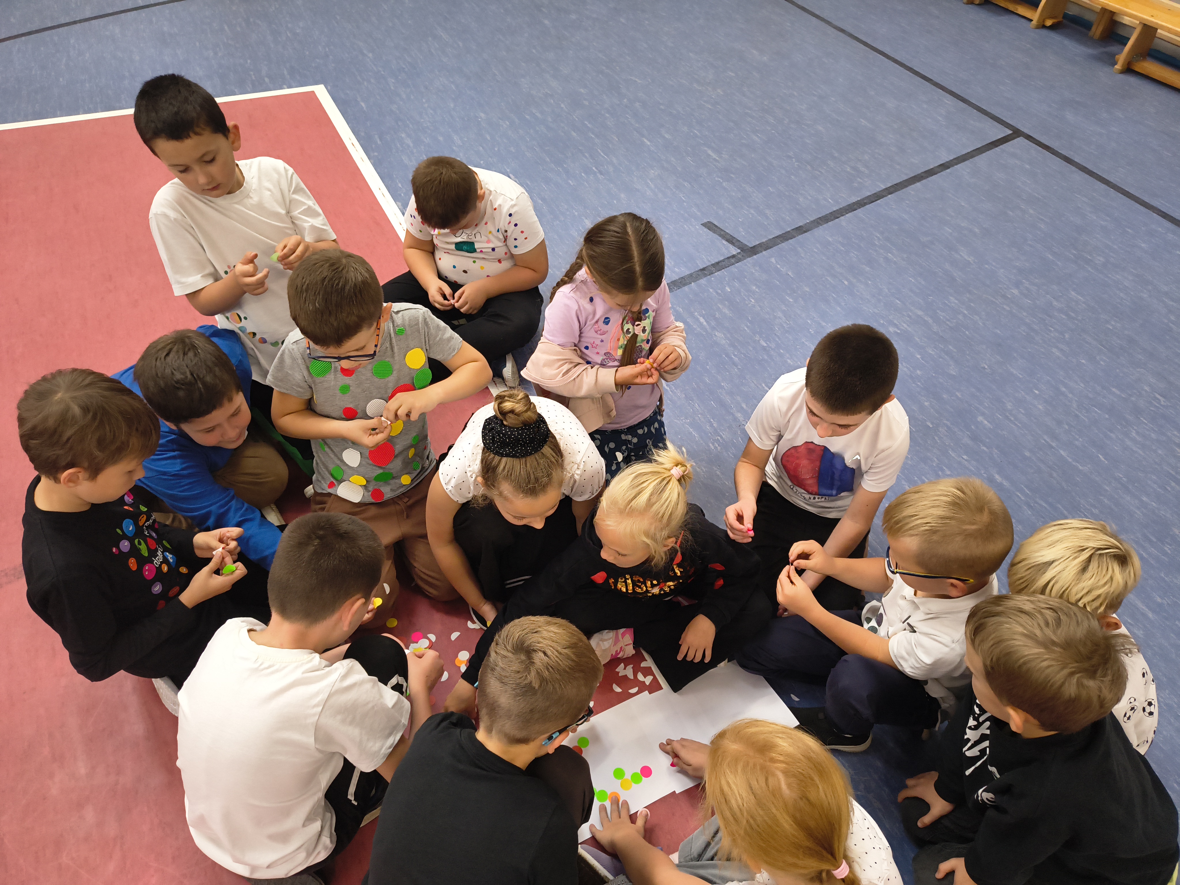 Podczas wspólnej zabawy powstały piękne „kropkowe” prace plastyczne, a także odbyły się zabawy i gry związane z kropką. Był to dzień pełen radości, twórczych pomysłów i wzajemnego wsparcia.