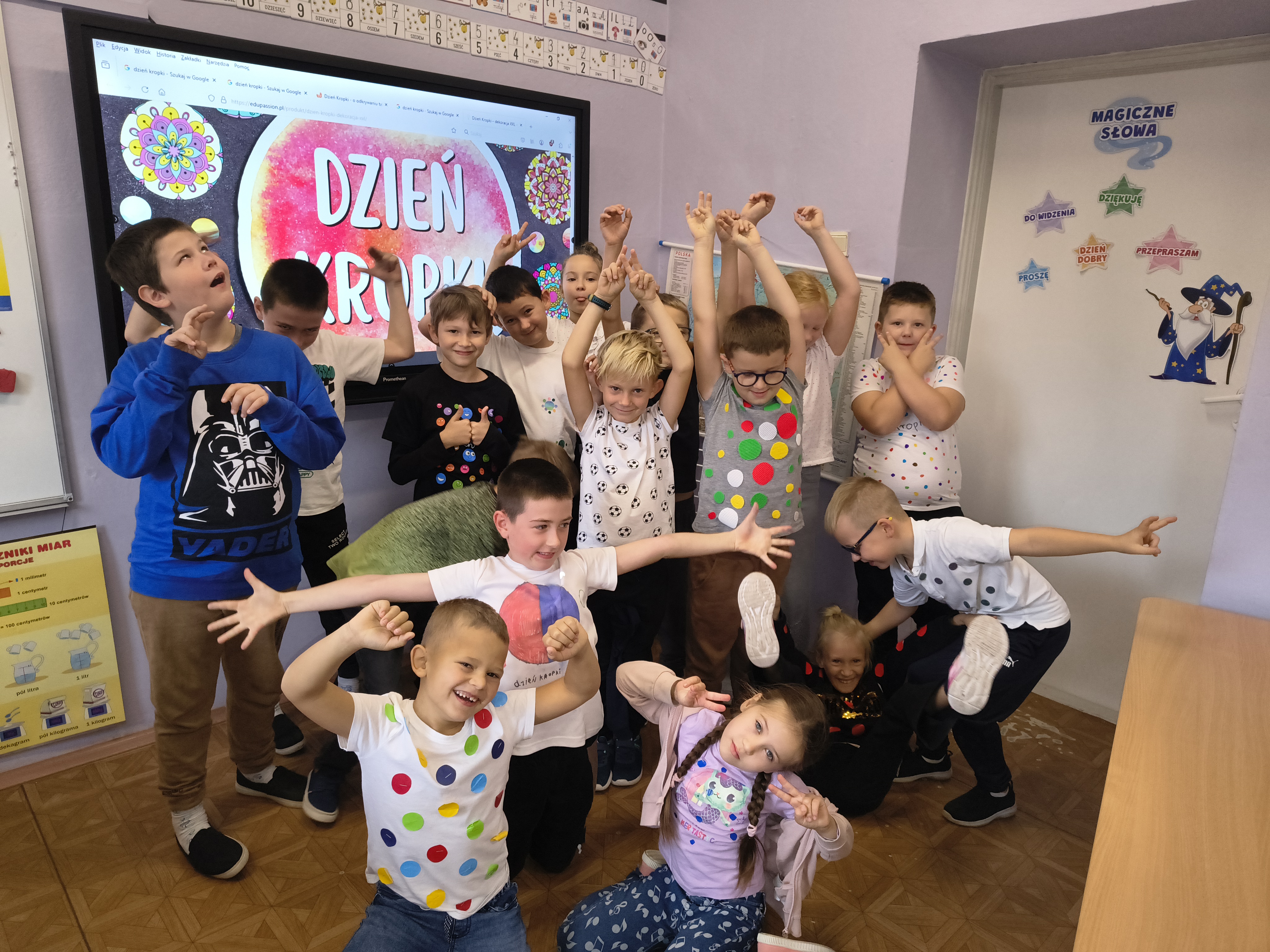 18 września uczniowie klasy 2a obchodzili Międzynarodowy Dzień Kropki – święto kreatywności, odwagi i odkrywania własnych talentów. Dzieci wysłuchały historii Vashti z książki Petera H. Reynoldsa „Kropka”, rozmawiały o swoich mocnych stronach i uczyły się, że każdy z nas ma w sobie coś wyjątkowego.