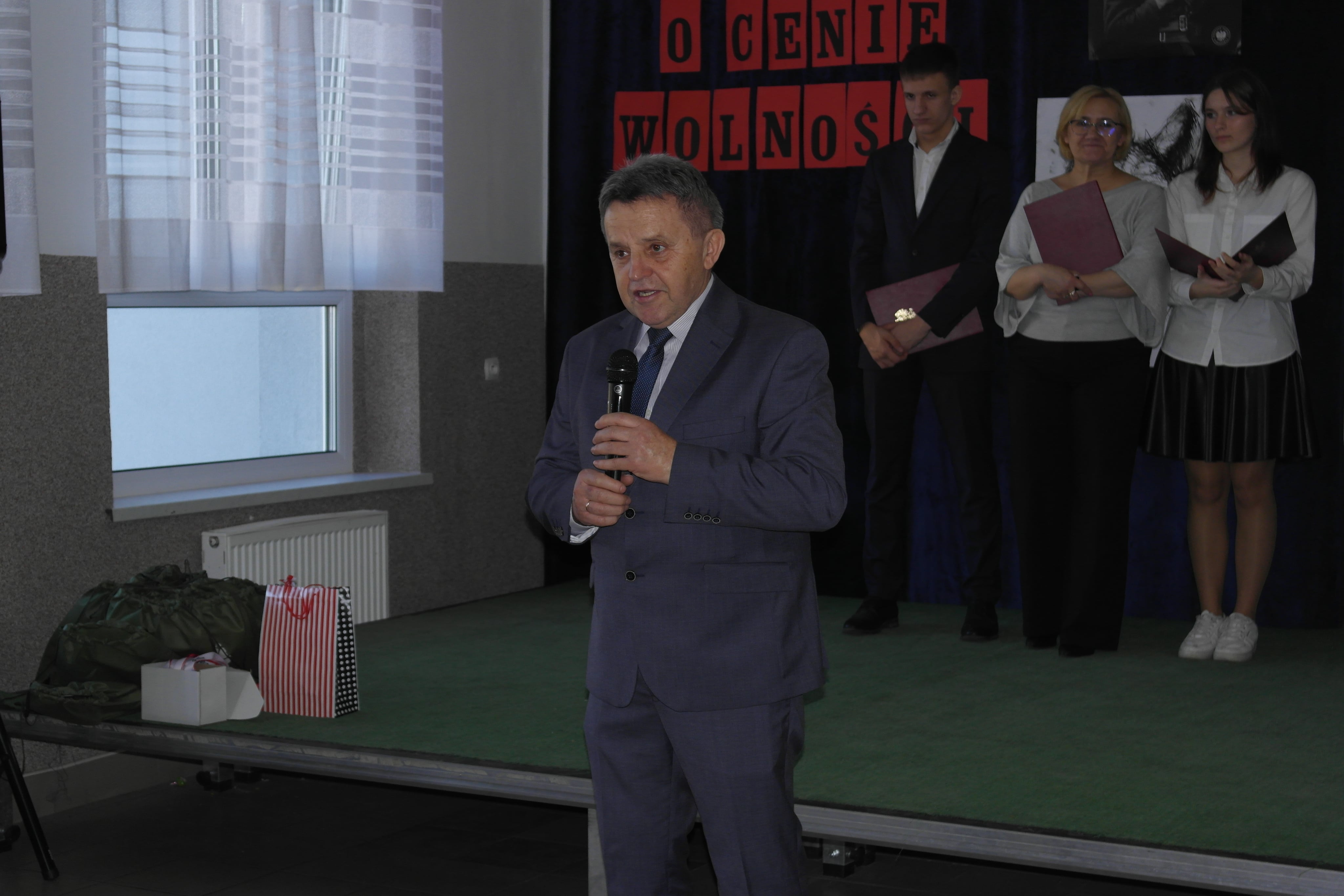 Pani Honorata Baniel przybliżyła uczestnikom spotkania życiorys swojego dziadka, który spoczywa na cmentarzu parafialnym w Prusach. Pan Stefan od 1944 był żołnierzem oddziału Narodowych Sił Zbrojnych. Walczył z niemieckim okupantem do końca wojny. Po wejściu sowietów, w 1946 roku został dowódcą samodzielnego oddziału dywersyjnego. Oddział działał na terenach powiatów oleskiego, częstochowskiego oraz wieluńskiego. W nocy z 01./ 02. 08.1946 roku pan Stefan został aresztowany i po brutalnym śledztwie skazany na karę dożywotniego więzienia oraz „utraty praw na zawsze”. Wyrok dożywotniego więzienia został zamieniony na karę 15 lat pozbawienia wolności. Pan Stefan wyszedł na wolność z więzienia w Raciborzu w 1956 roku, mając 31 lat. Żołnierz NSZ oraz Żołnierz Niezłomny zmarł 11.05.2006 roku.