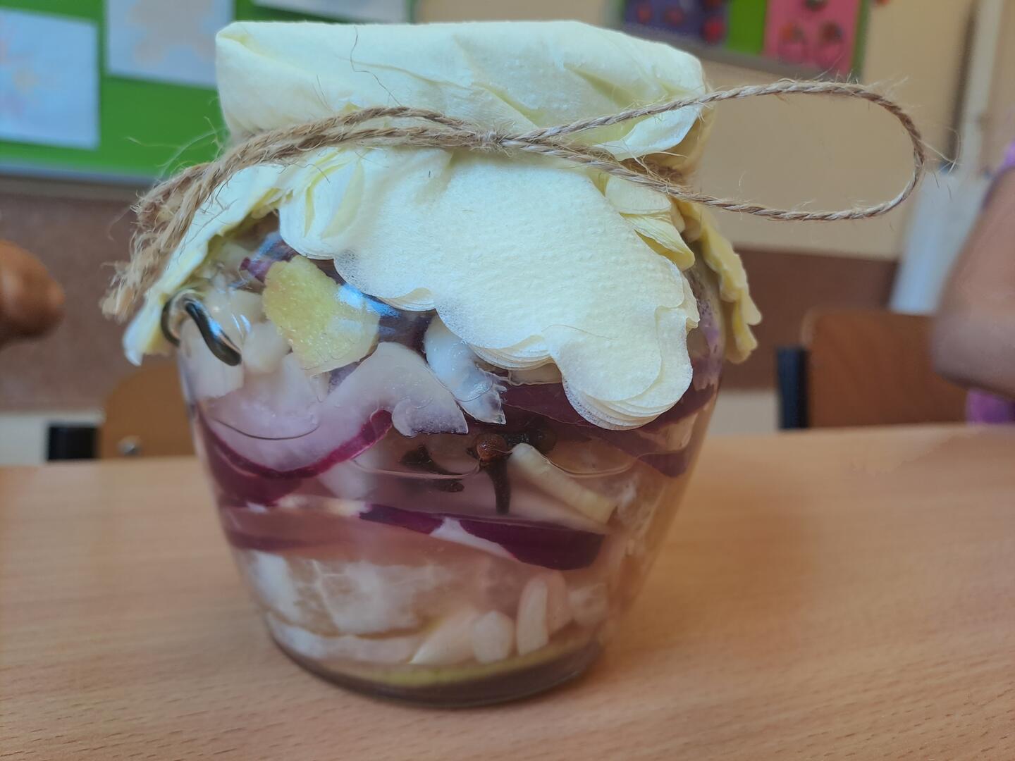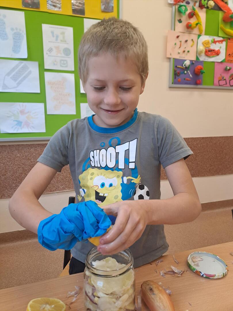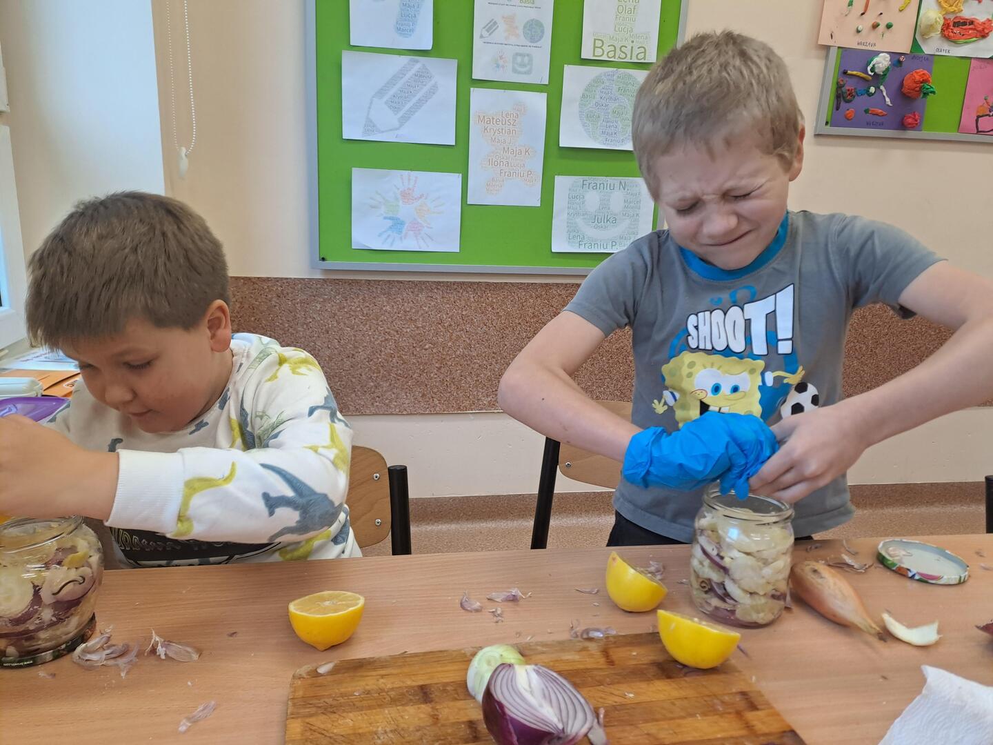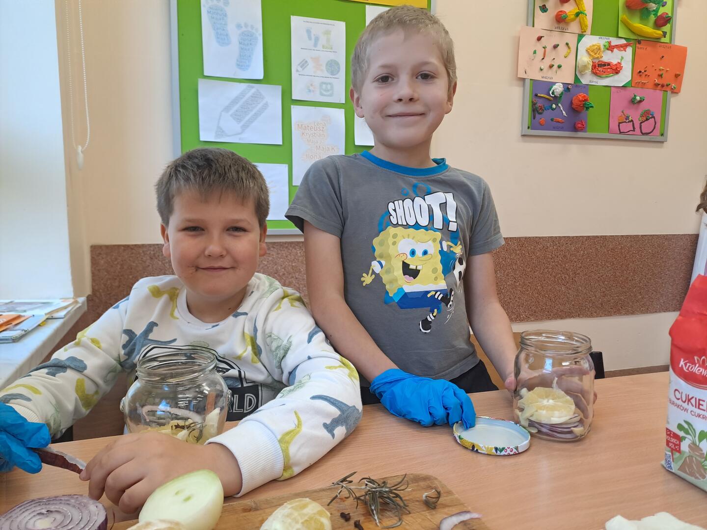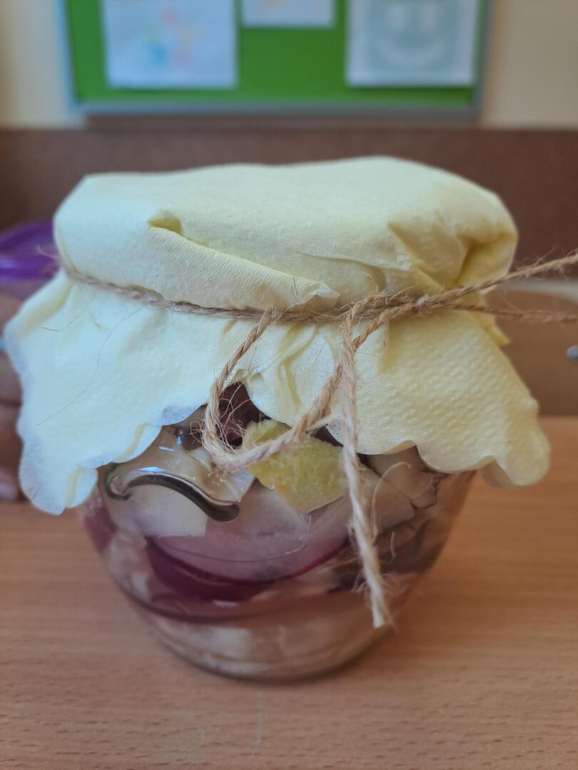 W piątek 17.11 obchodziliśmy w szkole Dzień Zdrowego Żywienia. Celem takiej akcji było propagowanie zdrowych nawyków żywieniowych. W naszej klasie wspólnymi siłami przygotowaliśmy syrop z cebuli- miksturkę na przeziębienie. Przepis pochodzi z blogu mgr farmacji Marcina Korczyka, znanego jako ,,Pan Tabletka". Syrop składa się ze składników, z których każdy ma swoje właściwości antybiotyczne, stymulujące odporność, trawienie i rozgrzewające.