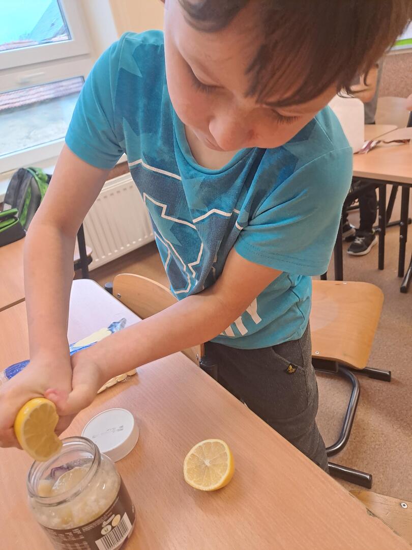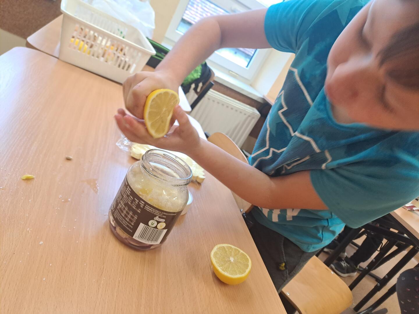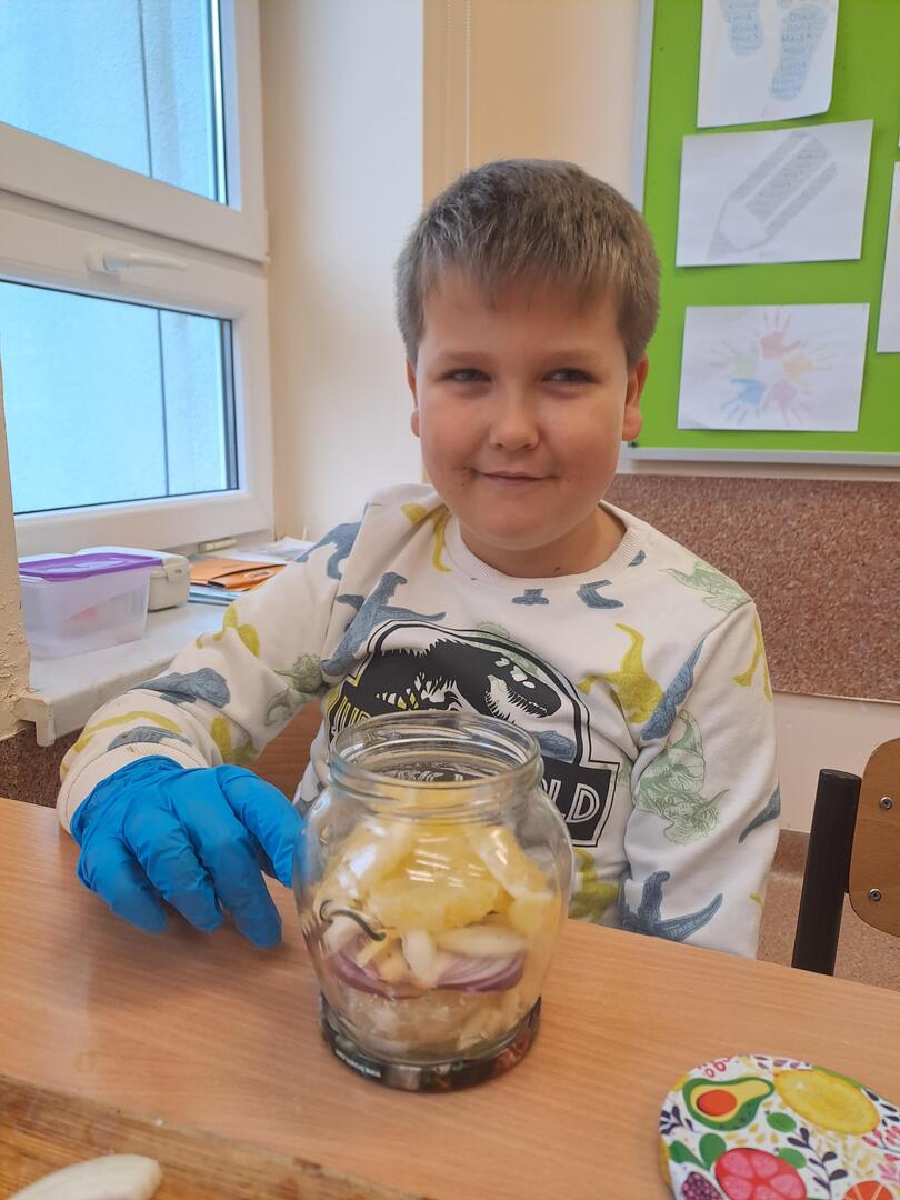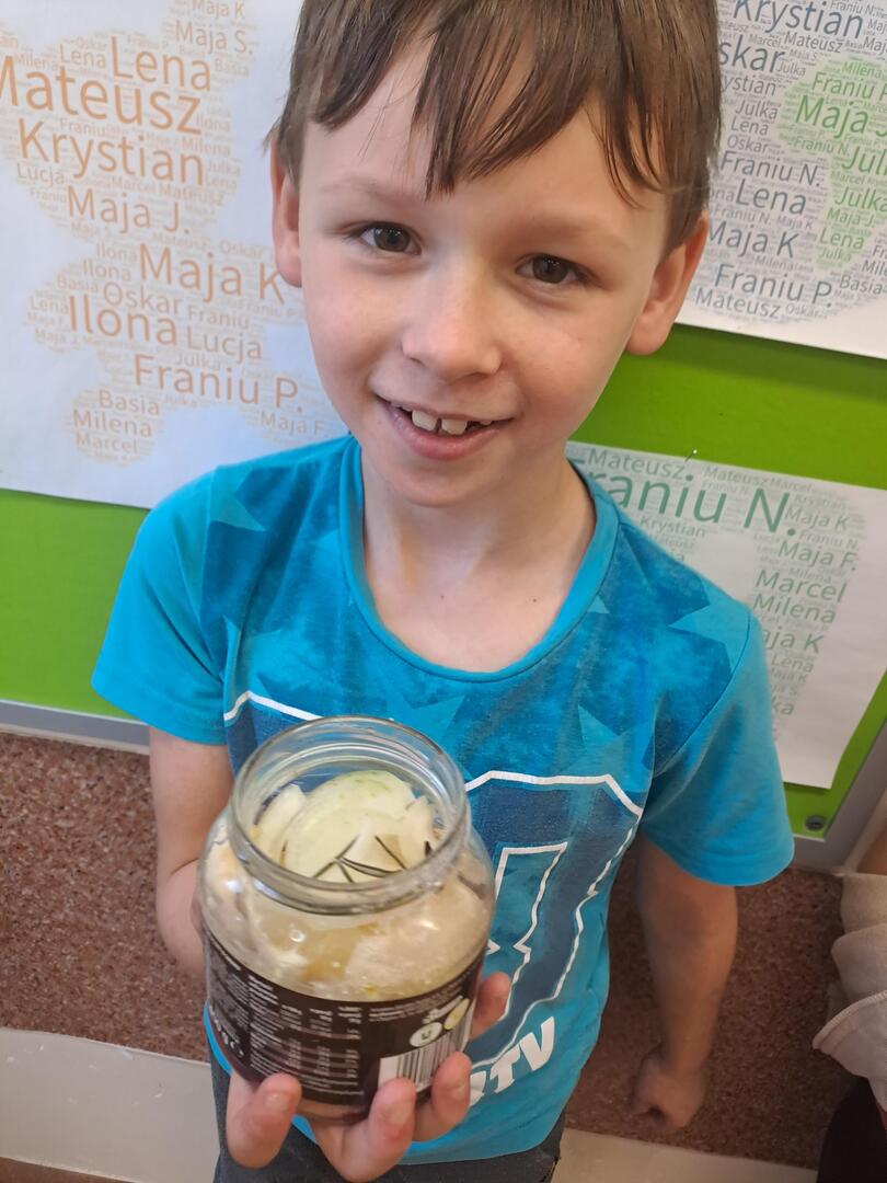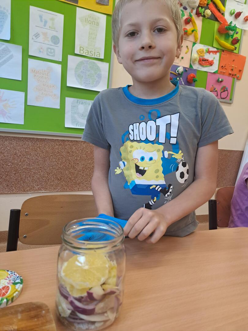 W piątek 17.11 obchodziliśmy w szkole Dzień Zdrowego Żywienia. Celem takiej akcji było propagowanie zdrowych nawyków żywieniowych. W naszej klasie wspólnymi siłami przygotowaliśmy syrop z cebuli- miksturkę na przeziębienie. Przepis pochodzi z blogu mgr farmacji Marcina Korczyka, znanego jako ,,Pan Tabletka". Syrop składa się ze składników, z których każdy ma swoje właściwości antybiotyczne, stymulujące odporność, trawienie i rozgrzewające.