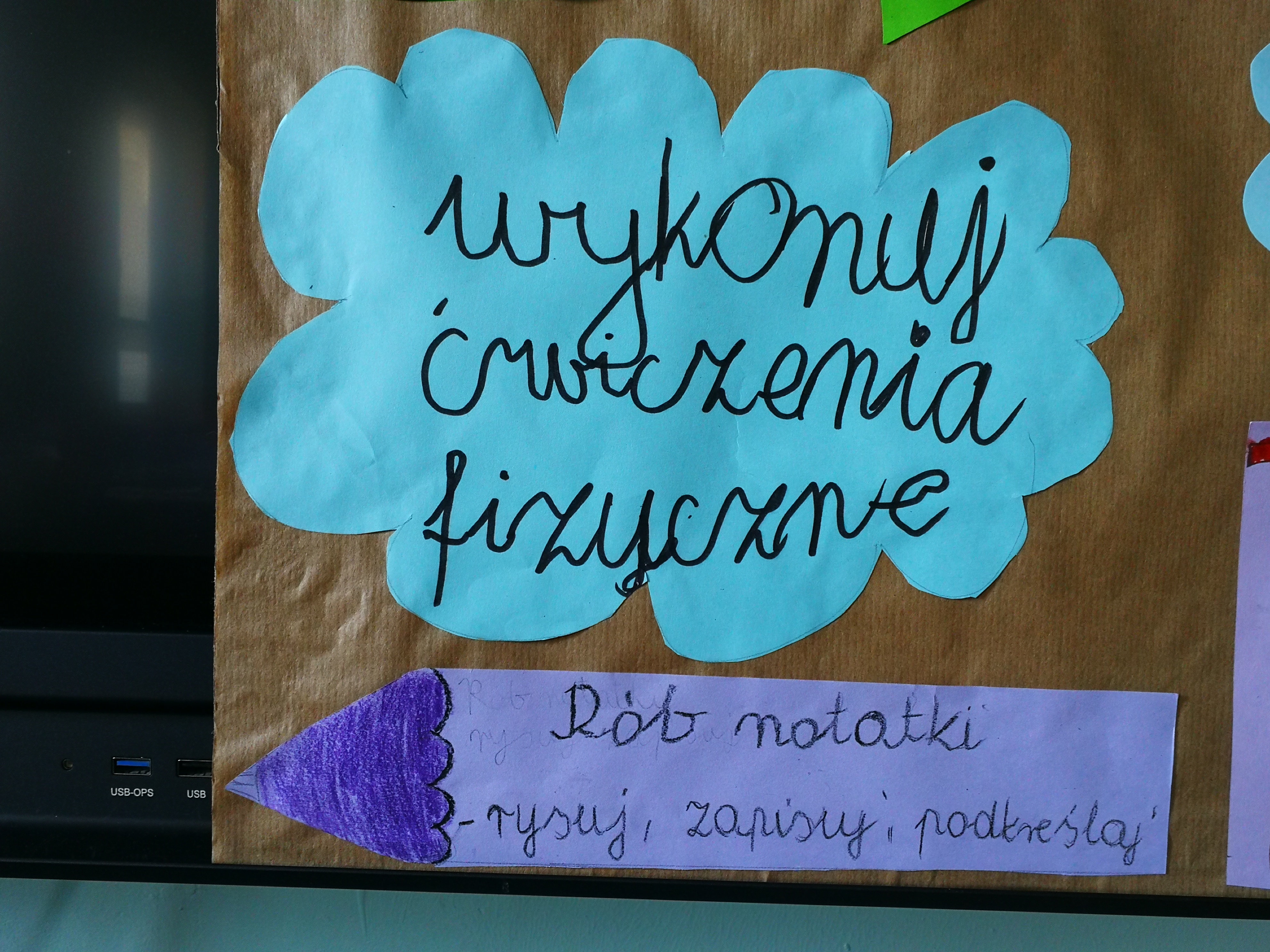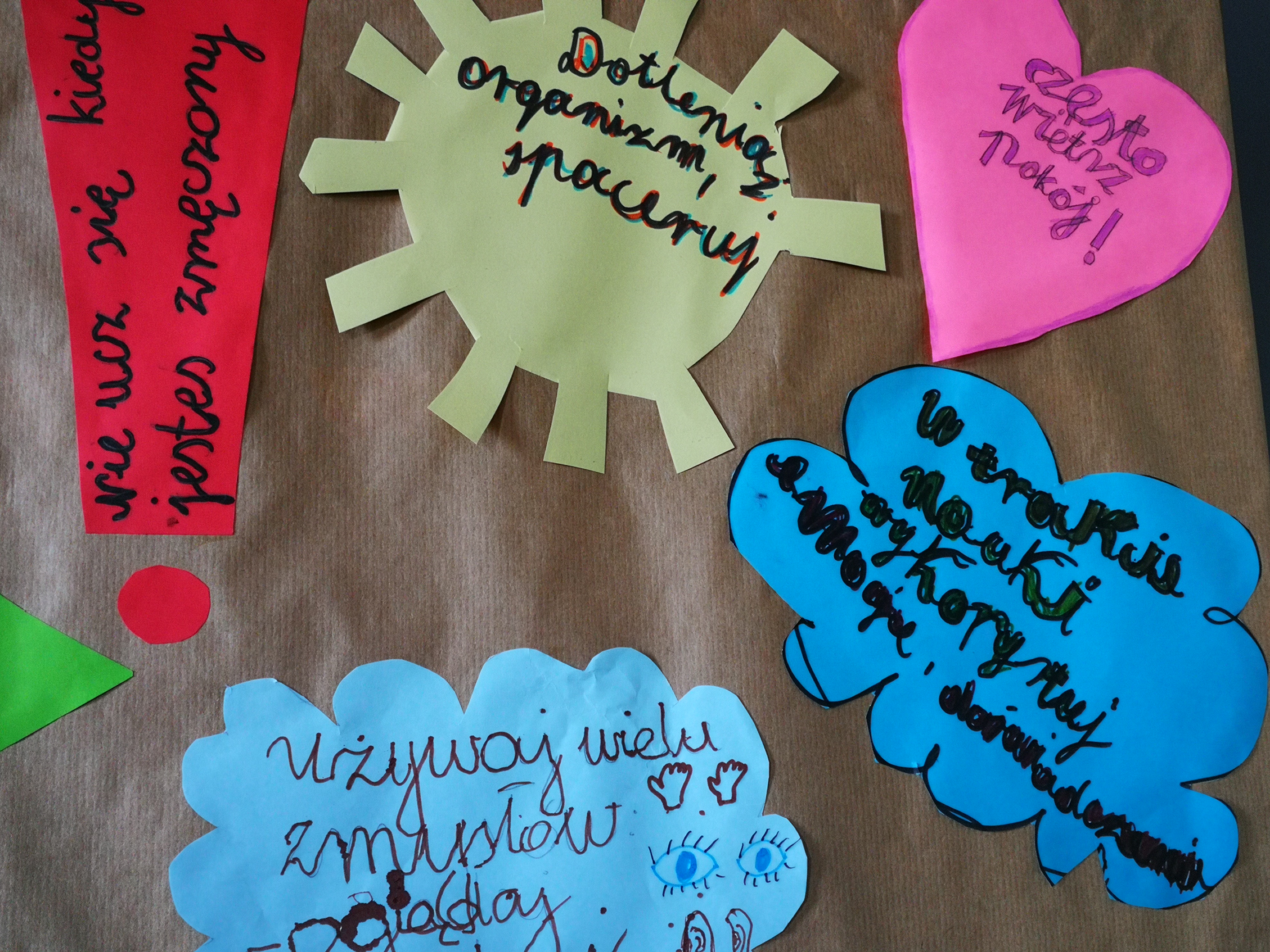 Nad tym pytaniem zastanawialiśmy się cały tydzień i szukaliśmy skutecznych rozwiązań.  Na podsumowanie naszej pracy wykonaliśmy plakat z dobrymi radami. Wykorzystaliśmy także metodę  - mapa myśli- i każdy przygotował własną propozycję na wybrany przez siebie temat.