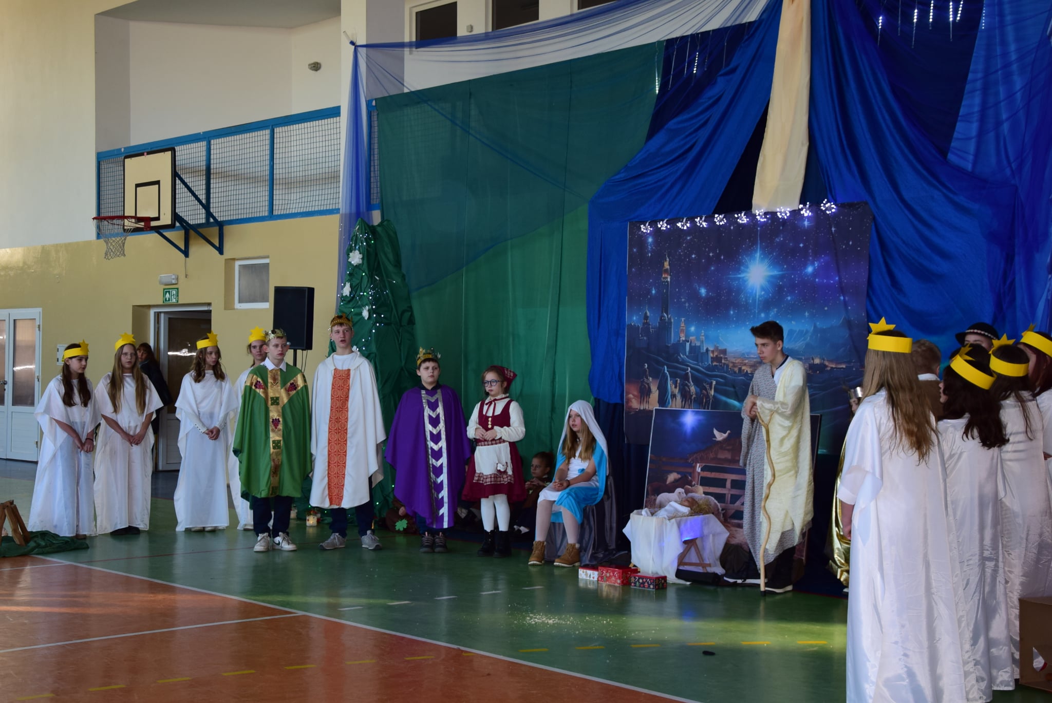19 grudnia 2025 r. w naszej szkole zostały wystawione jasełka, w które zaangażowanych było wielu uczniów z klas 1-8. Widowisko w niezwykły sposób wprowadziło nas w klimat świąt Bożego Narodzenia. Przepiękne wykonania kolęd i pastorałek dostarczyły widzom wzruszeń. Po jasełkach dzieci udały się do klas, gdzie przygotowały wigilie klasowe. To moment, kiedy w swoim gronie i w miłej atmosferze spędziły czas. Bardzo dziękujemy paniom Małgorzacie Banaszczyk, Krystynie Bazal, Jolancie Lech, Karolinie Łużnej za przygotowanie uczniów do występu, a wychowawcom i rodzicom za zorganizowanie wigilii klasowych. Dziękujemy także przybyłym na jasełka gościom: paniom sekretarz gminy Magdalenie Karbownik, inspektor oświaty Beacie Krzemienieckiej, przewodniczącej Rady Rodziców - Marcie Gurzyńskiej, panu przewodniczącemu Rady Gminy Kondratowice - Andrzejowi Grondysowi, księdzu proboszczowi Krzysztofowi Romaniukowi oraz rodzicom.