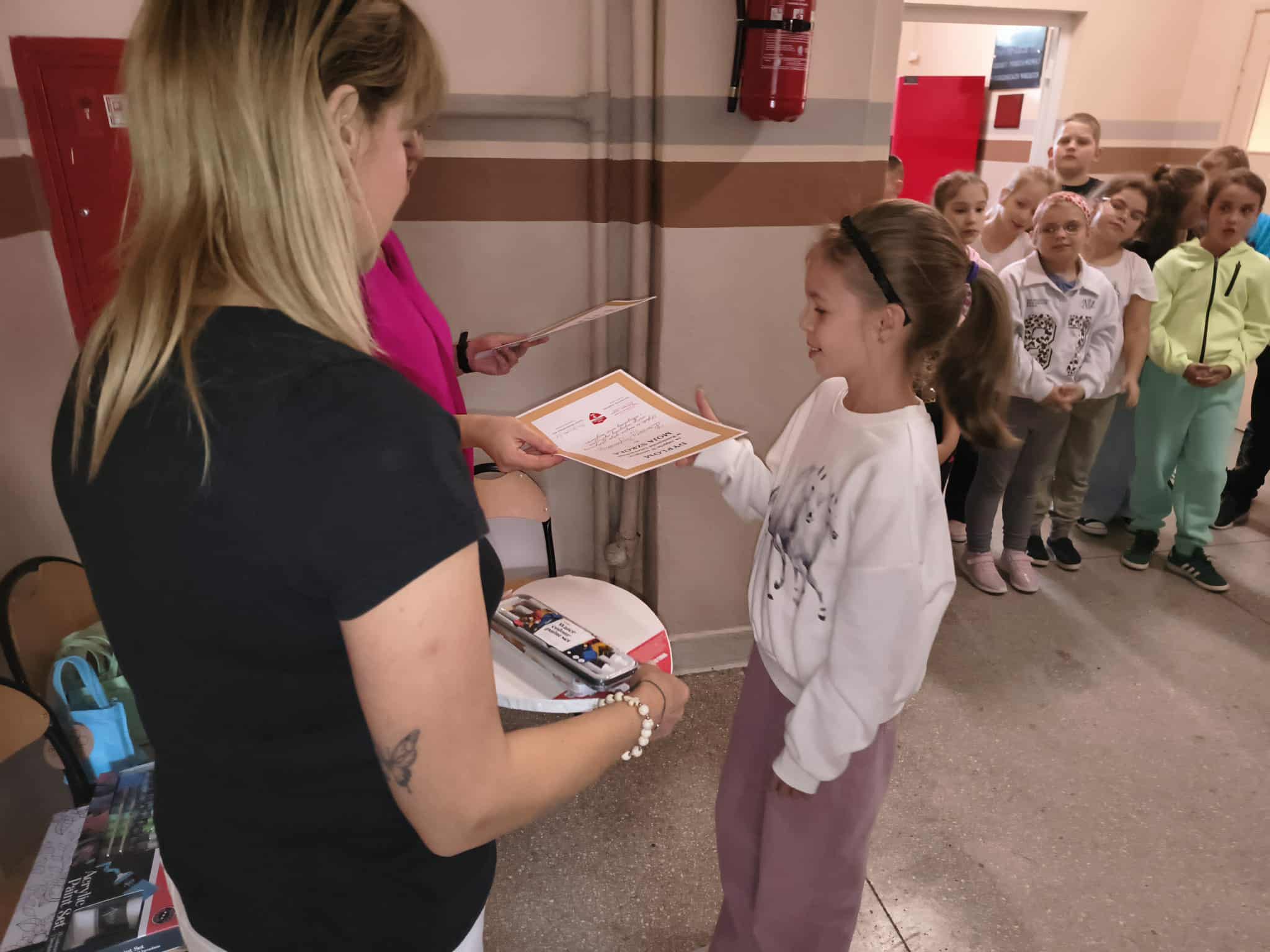 Pani Marzenka Jędrzejewska przeprowadziła konkurs biblioteczny pt. „Czytelnik Roku”, którego celem jest zachęcanie uczniów do systematycznego korzystania z księgozbioru oraz promowanie nawyku czytania książek. Pod uwagę uwzgledniono liczbę przeczytanych książek w ubiegłym roku szkolnym. Najwięcej książek wypożyczyła Aleksandra Zbrońska z klasy 3a, dzięki czemu zdobyła tytuł „Czytelnika Roku” oraz otrzymała nagrodę rzeczową w postaci książki. Gratulujemy!