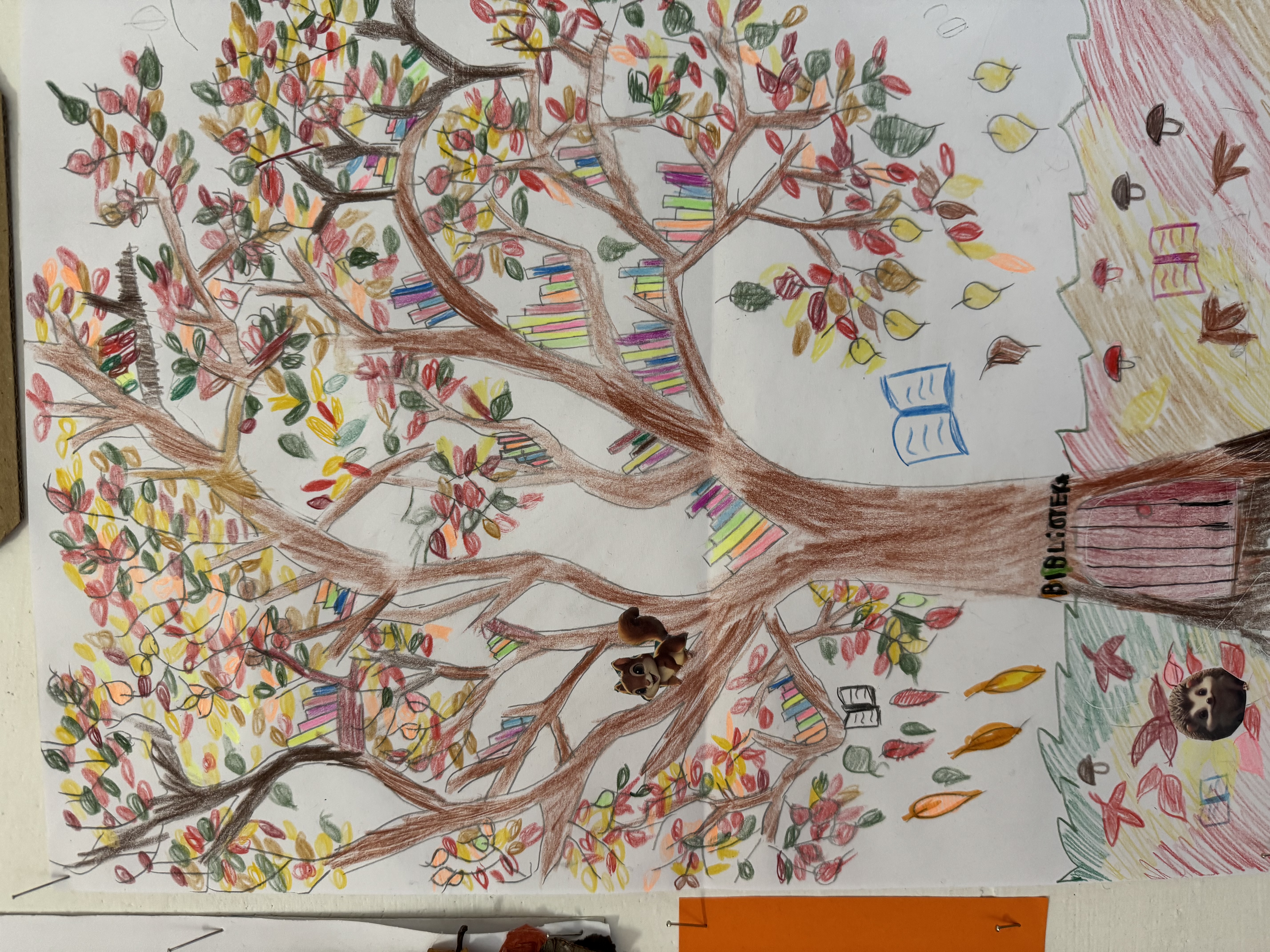 "Jesienne drzewo pełne książek".
