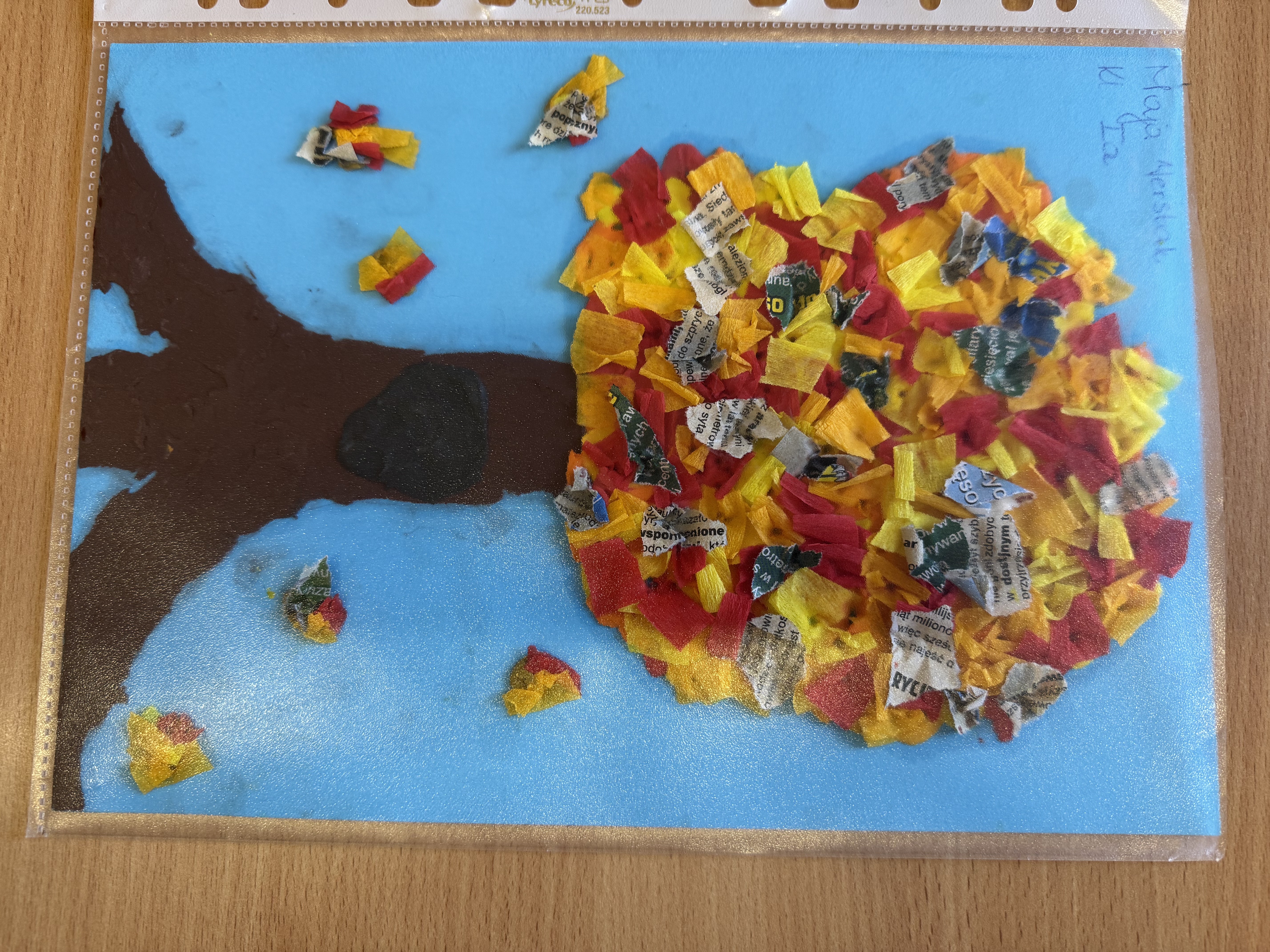 Wśród uczniów klas IV-VIII tylko jedna uczennica dostarczyła swoją pracę do biblioteki. Przepiękne jesienne drzewo w technice 3D wykonała ucz. kl. Vb Magdalena Wielocha.