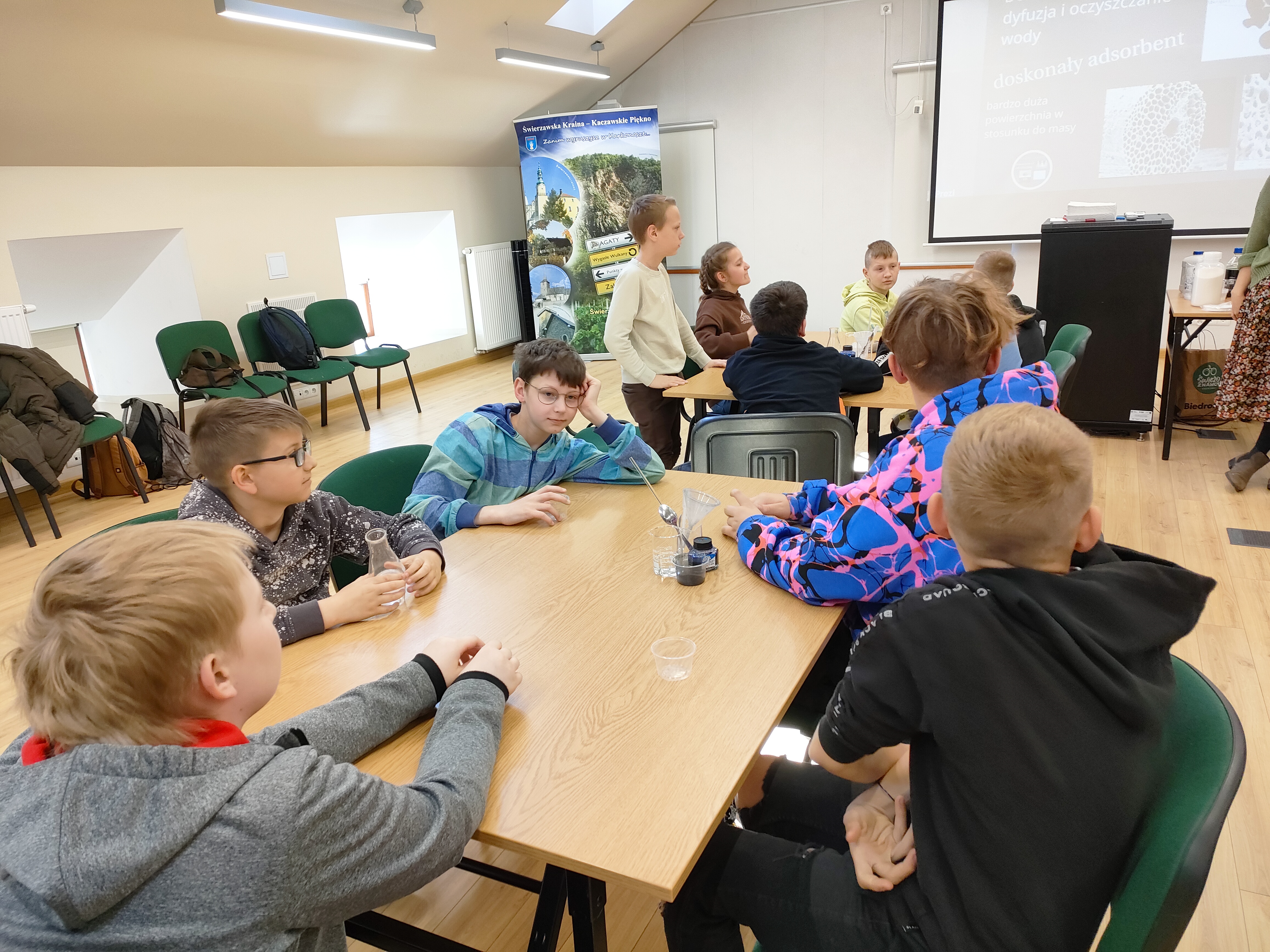 10 maja 2023r.w ramach programu ,,Szkoła Kompetencji Kluczowych w Gminie Kondratowice III” wybraliśmy się do Krainy Wygasłych Wulkanów w Sudeckiej Zagrodzie Edukacyjnej w Dobkowie. Uczniowie dowiedzieli się jak przebiegała ewolucja Sudetów, uczestniczyli w zajęciach laboratoryjnych.