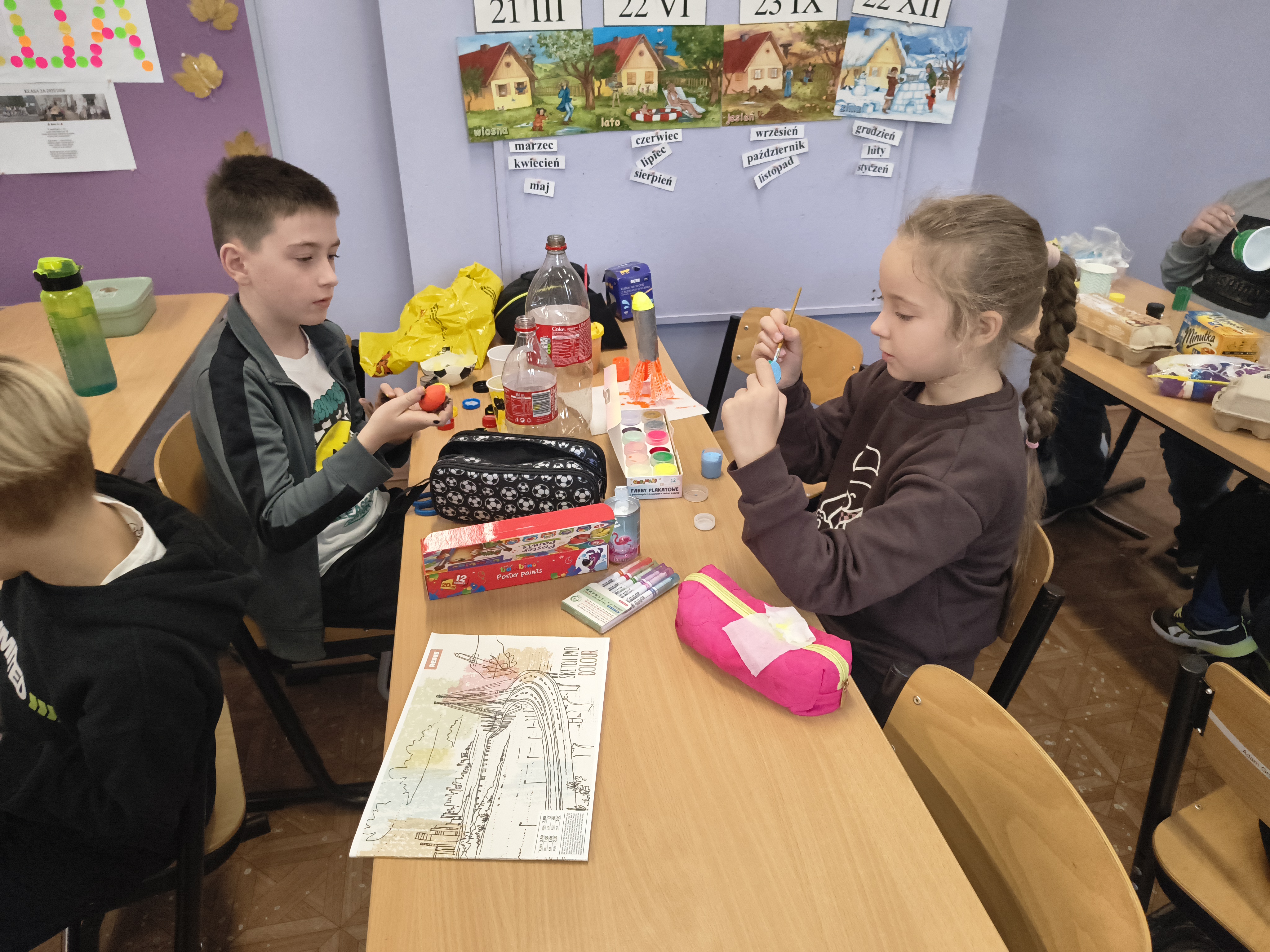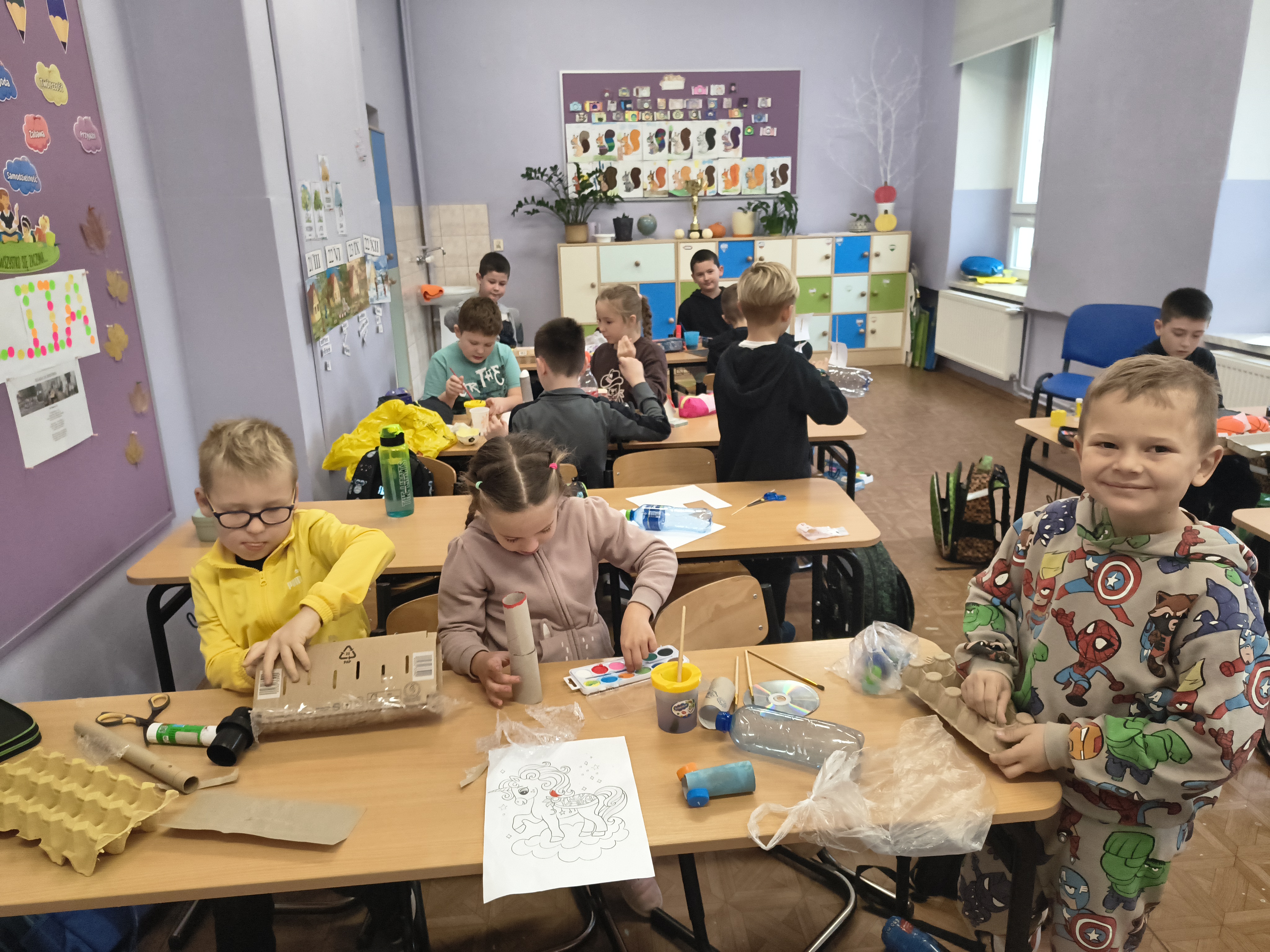 Uczniowie naszej klasy wykonali piękne i pomysłowe prace plastyczne z wykorzystaniem materiałów, które można ponownie przetworzyć. Dzieci z wielkim zaangażowaniem i kreatywnością stworzyły niezwykłe dzieła z papieru, kartonów, butelek oraz innych surowców wtórnych.