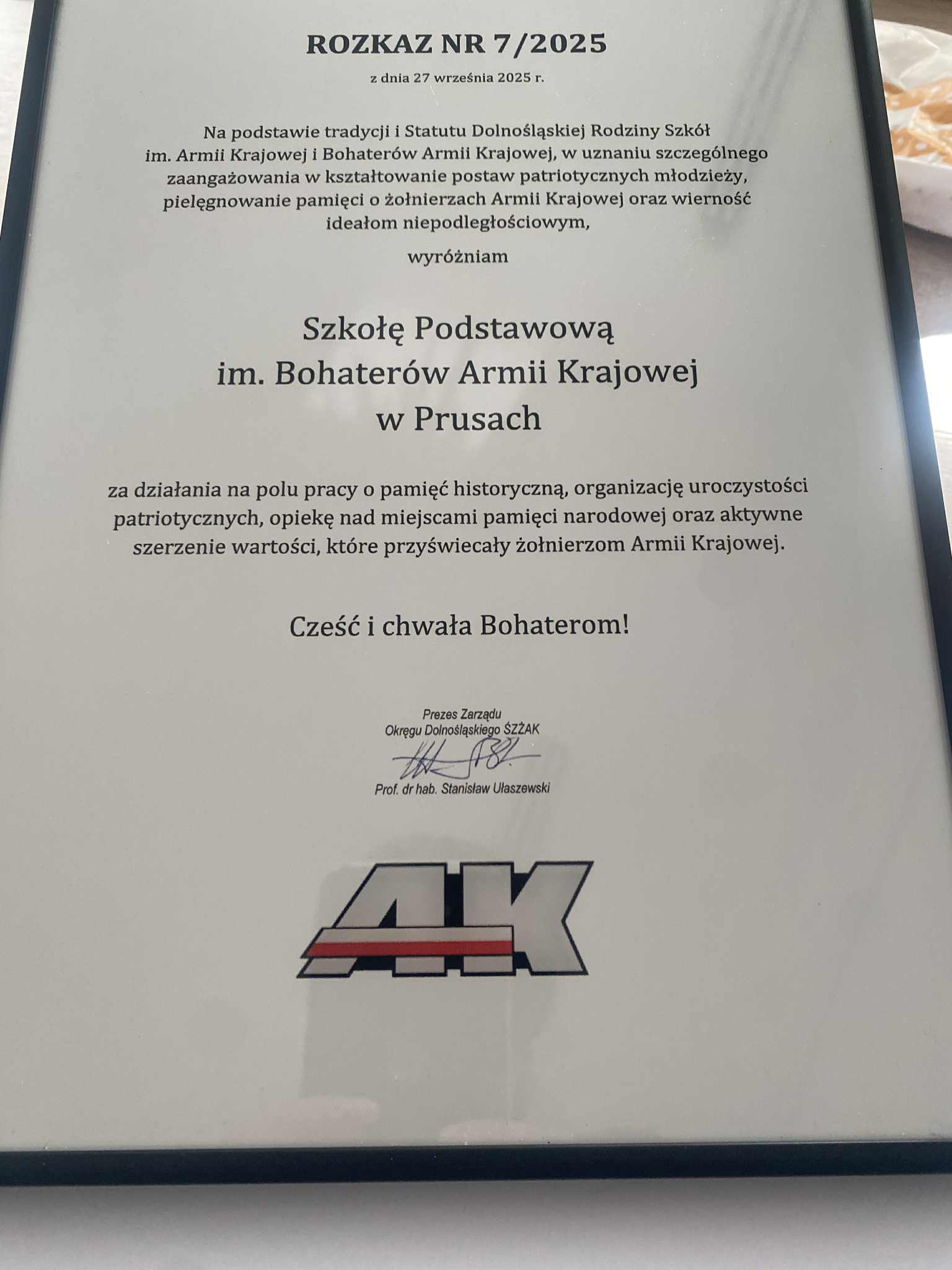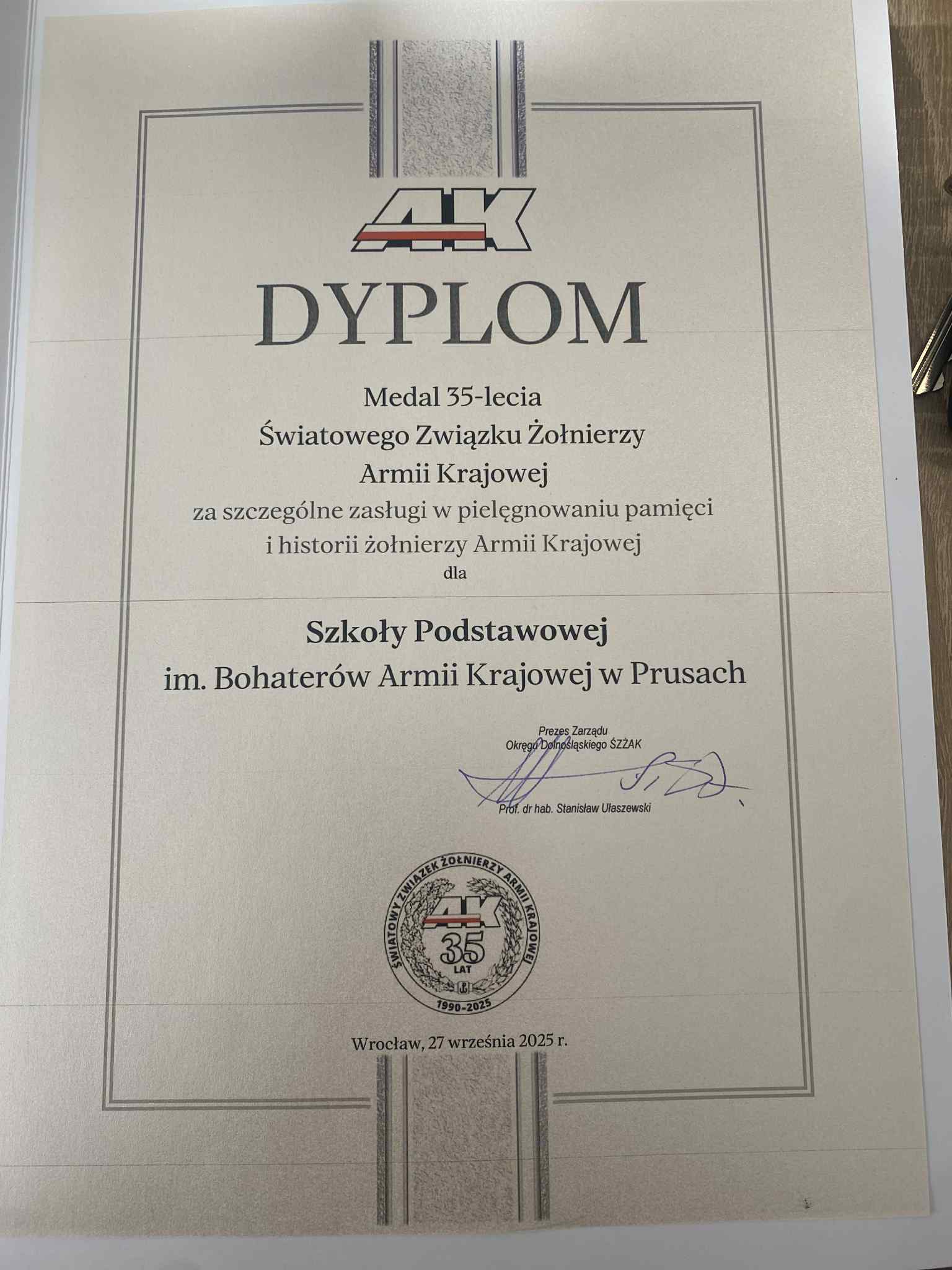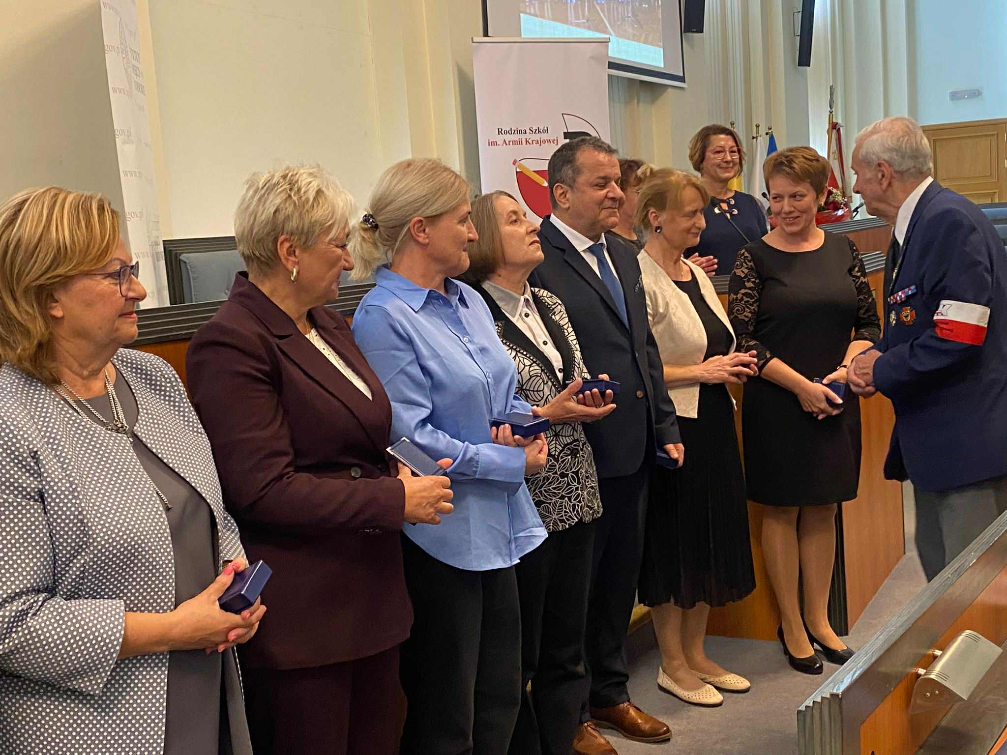 29 września troje nauczycieli naszej szkoły: pani Maria Karakow, pani Katarzyna Olędzka, pan Jacek Matusiewicz (jako były dyrektor szkoły) oraz jedna nauczycielka emerytowana - pani Ewa Majewska (jako była wicedyrektor szkoły) wzięło udział w pięknej uroczystości w Urzędzie Wojewódzkim we Wrocławiu, gdzie podczas konferencji Rodziny Szkół Armii Krajowej i Bohaterów Armii Krajowej odebrali medale za szczególne zasługi w pielęgnowaniu pamięci i historii Armii Krajowej. Medale wręczył prezes Światowego Związku Żołnierzy Armii Krajowej Oddział we Wrocławiu, profesor doktor habilitowany Stanisław Ułaszewski. Medal taki otrzymała także nasza szkoła, a w imieniu całej społeczności szkolnej odebrała go dyrektor Katarzyna Olędzka.