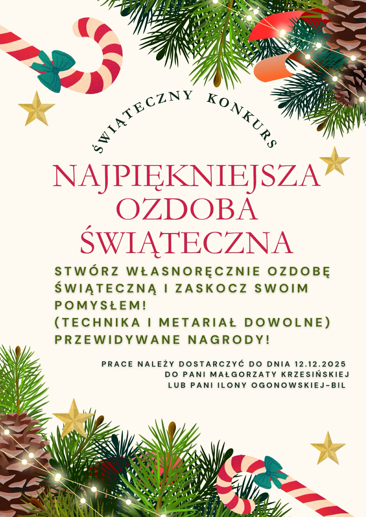 Ogłaszamy konkurs w klasach 1-3 na najpiękniejszą ozdobę świąteczną. ?