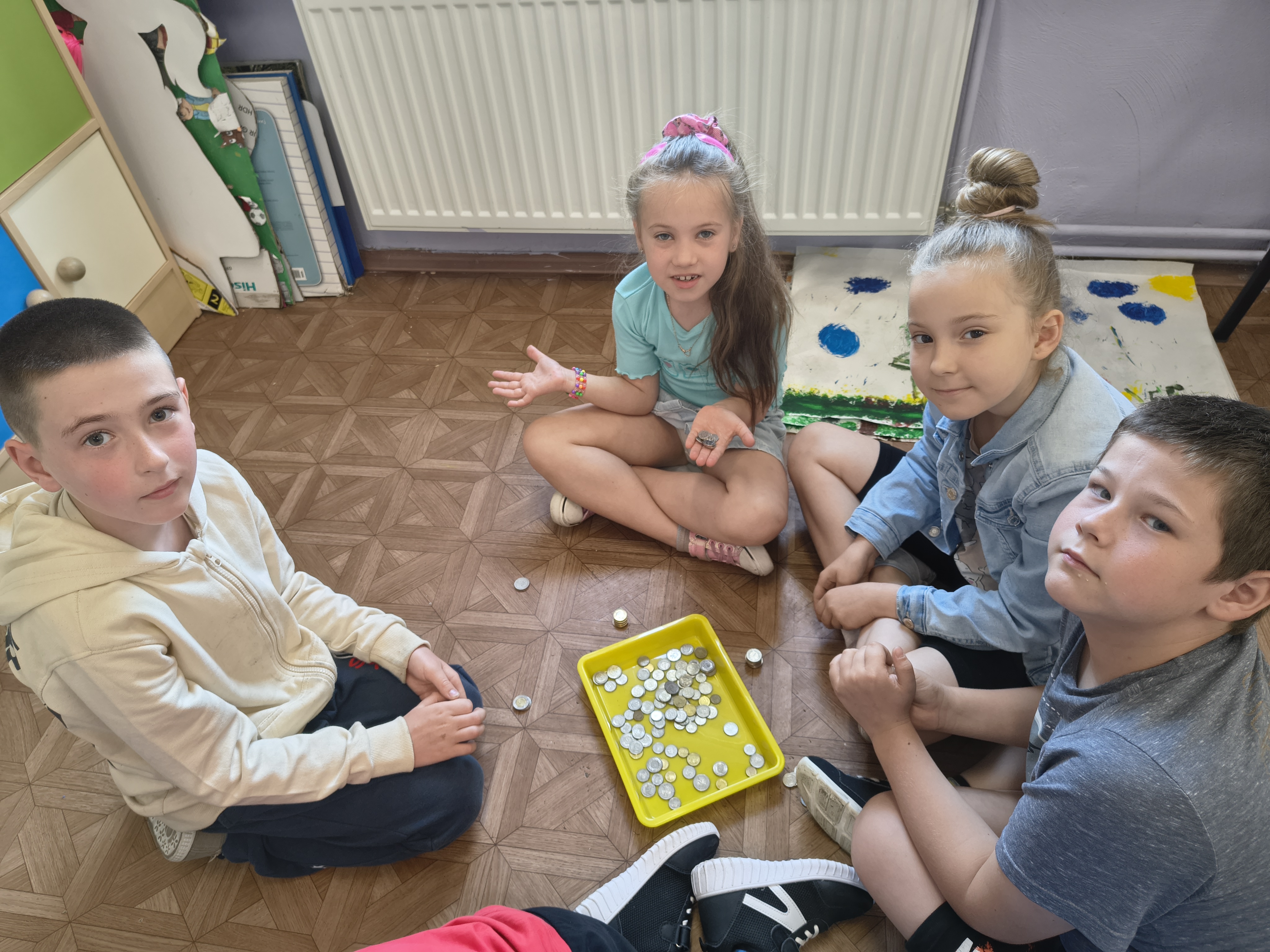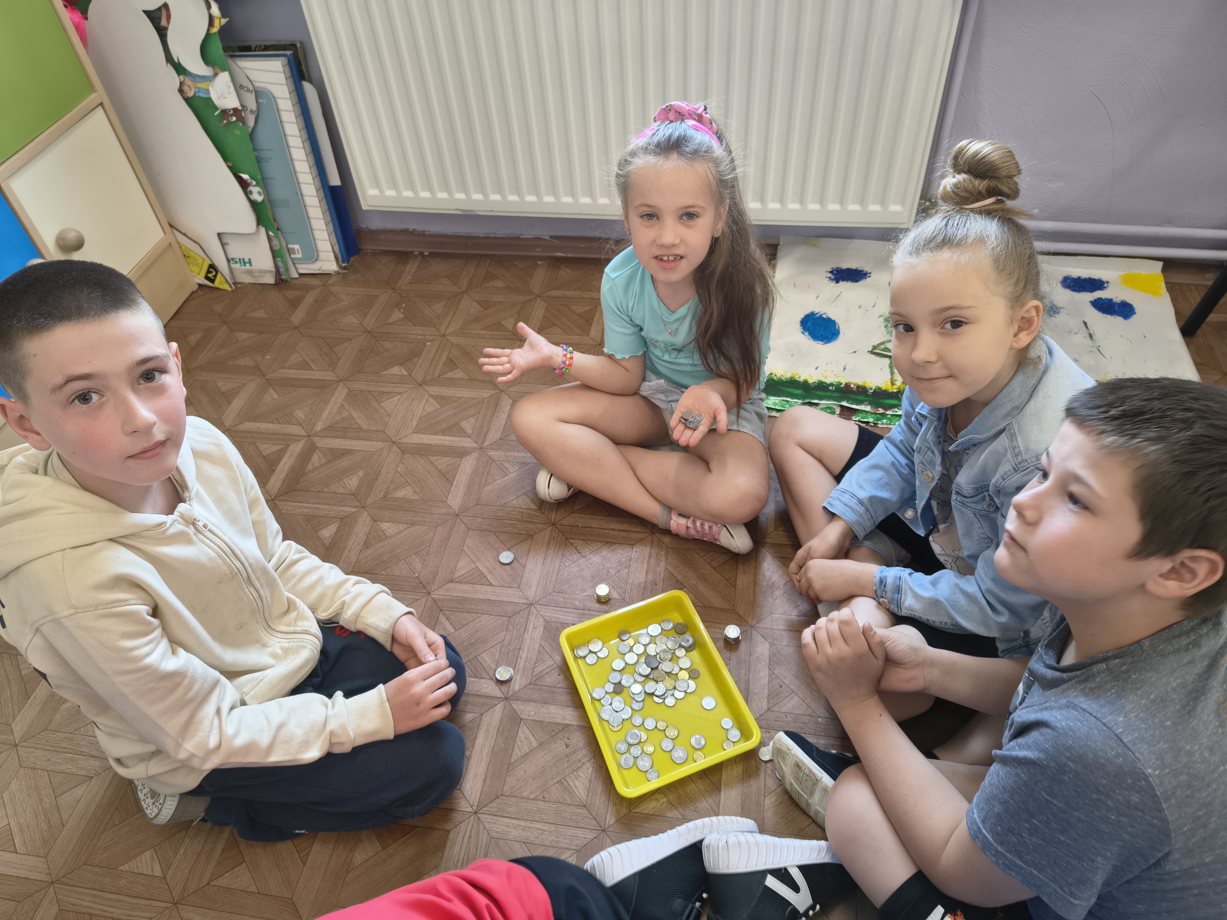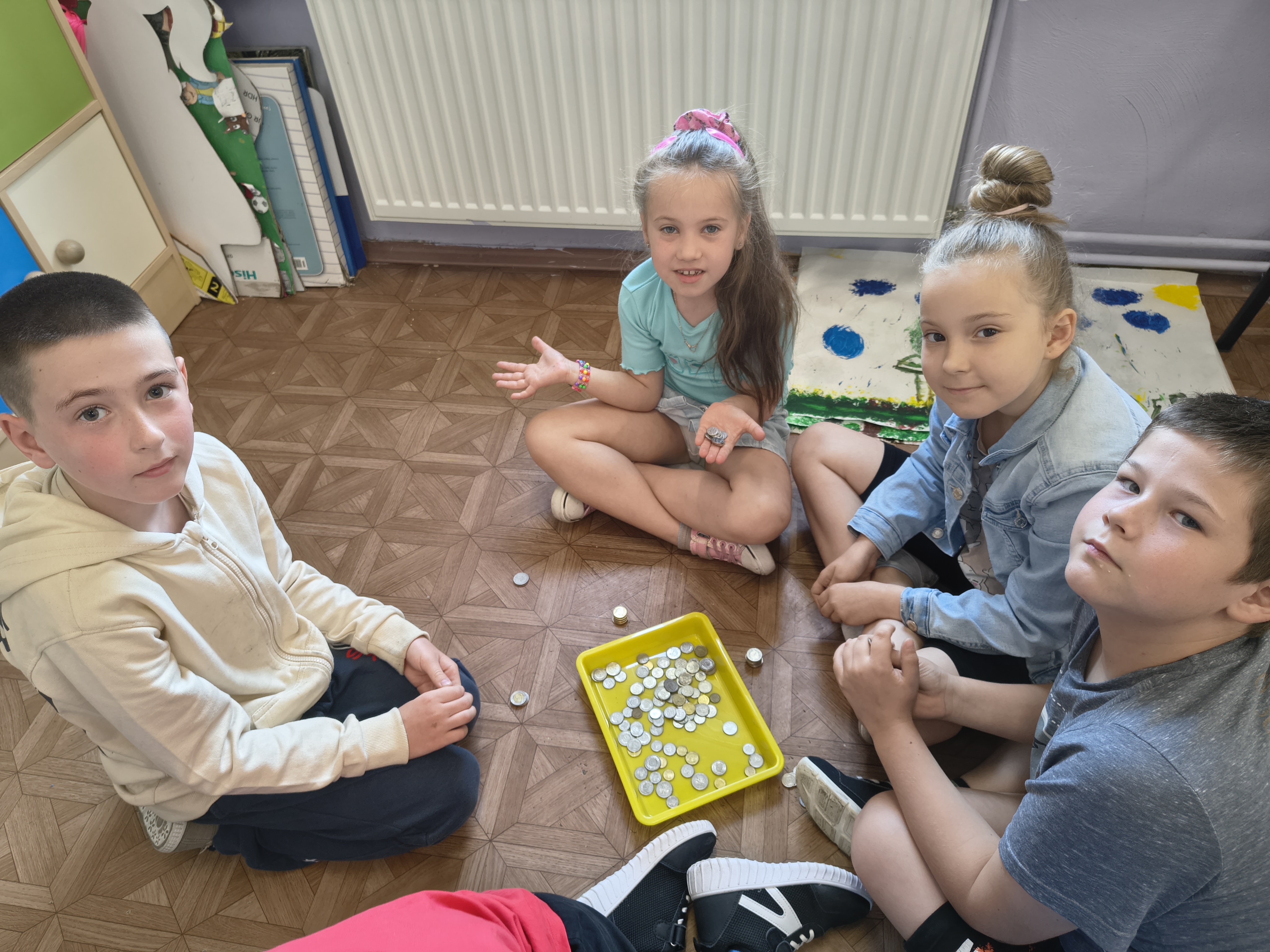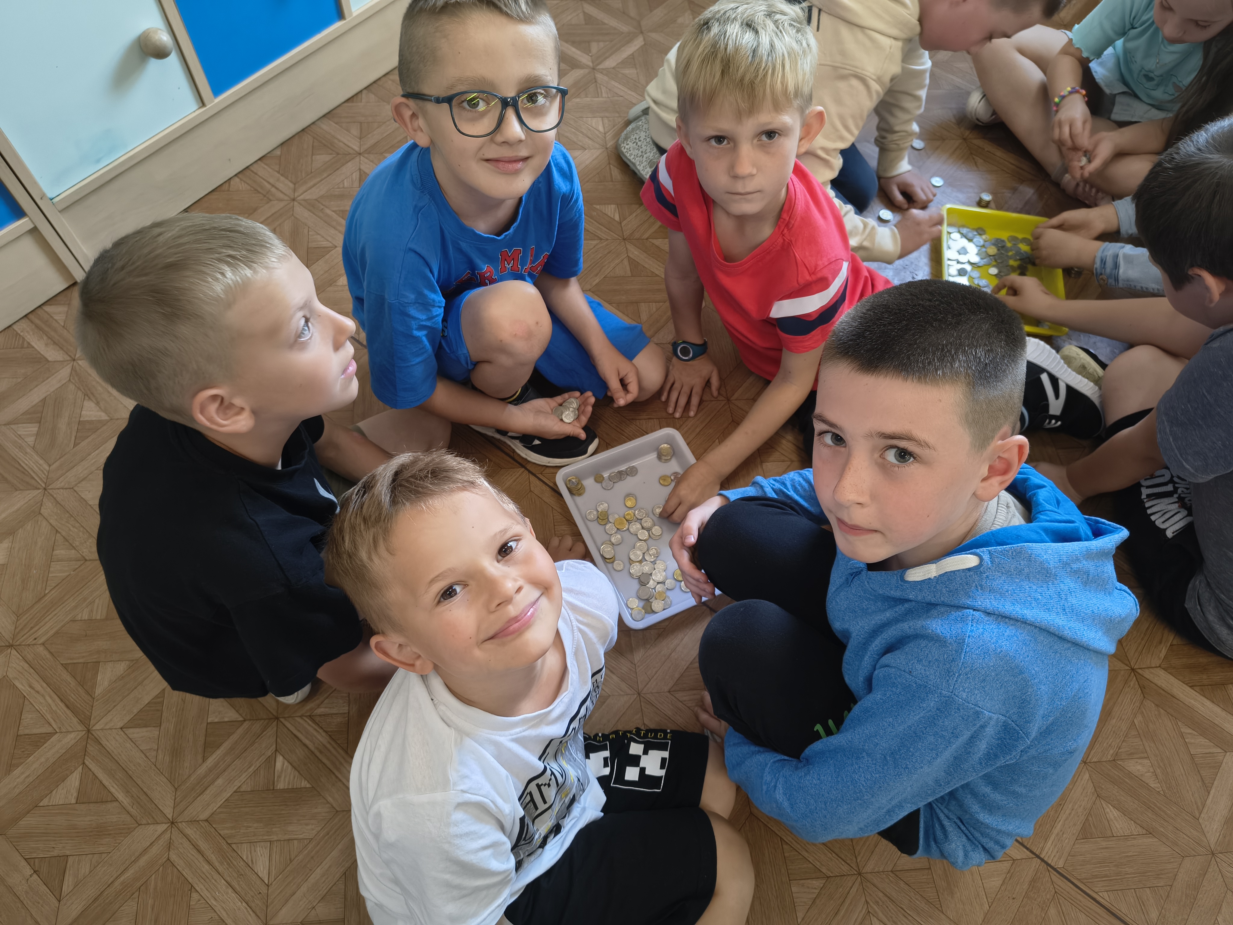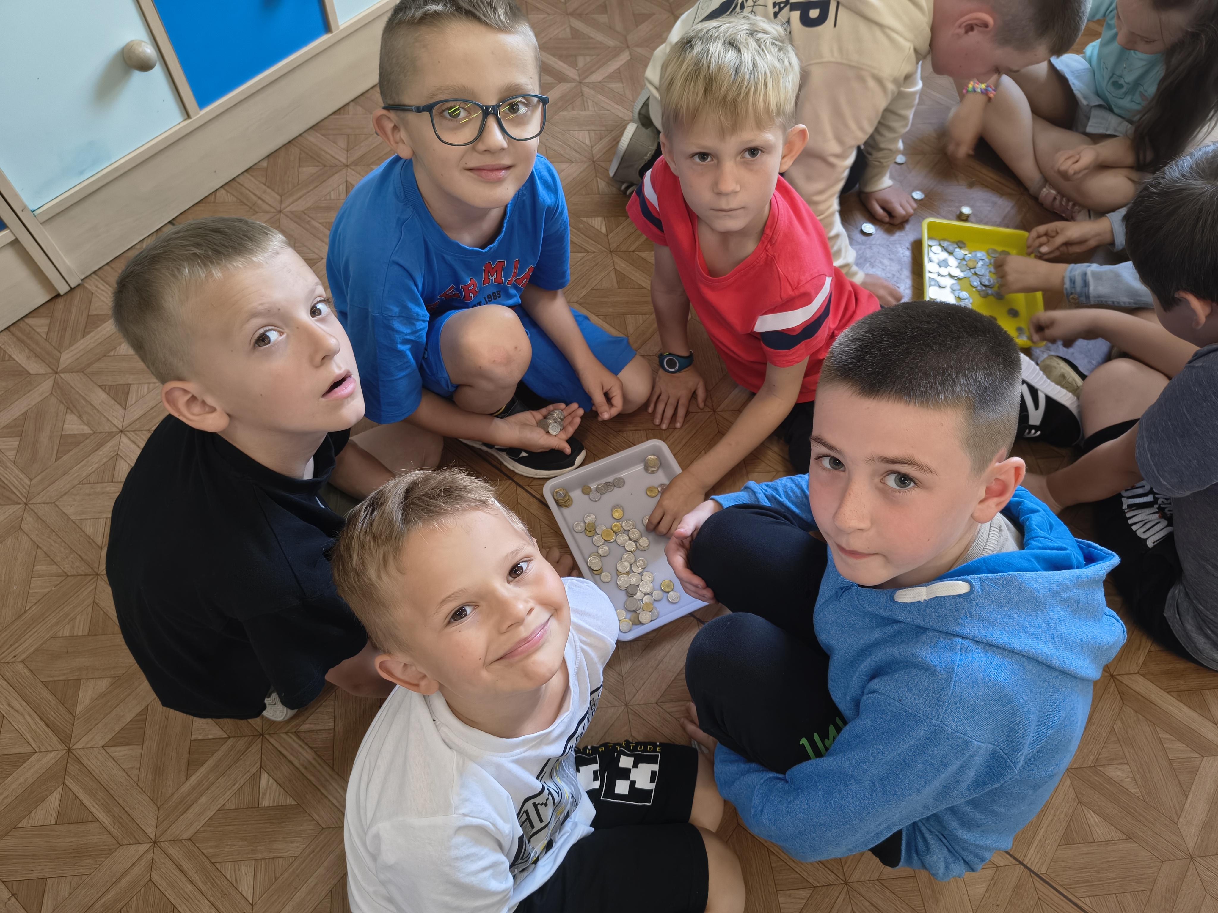 Uczniowie klasy 1a przez cały rok szkolny uczyli się, jak mądrze gospodarować pieniędzmi i jak ważne są codzienne oszczędności. Regularnie odkładali drobne kwoty do klasowej skarbonki, poznając wartość systematyczności i wytrwałości.