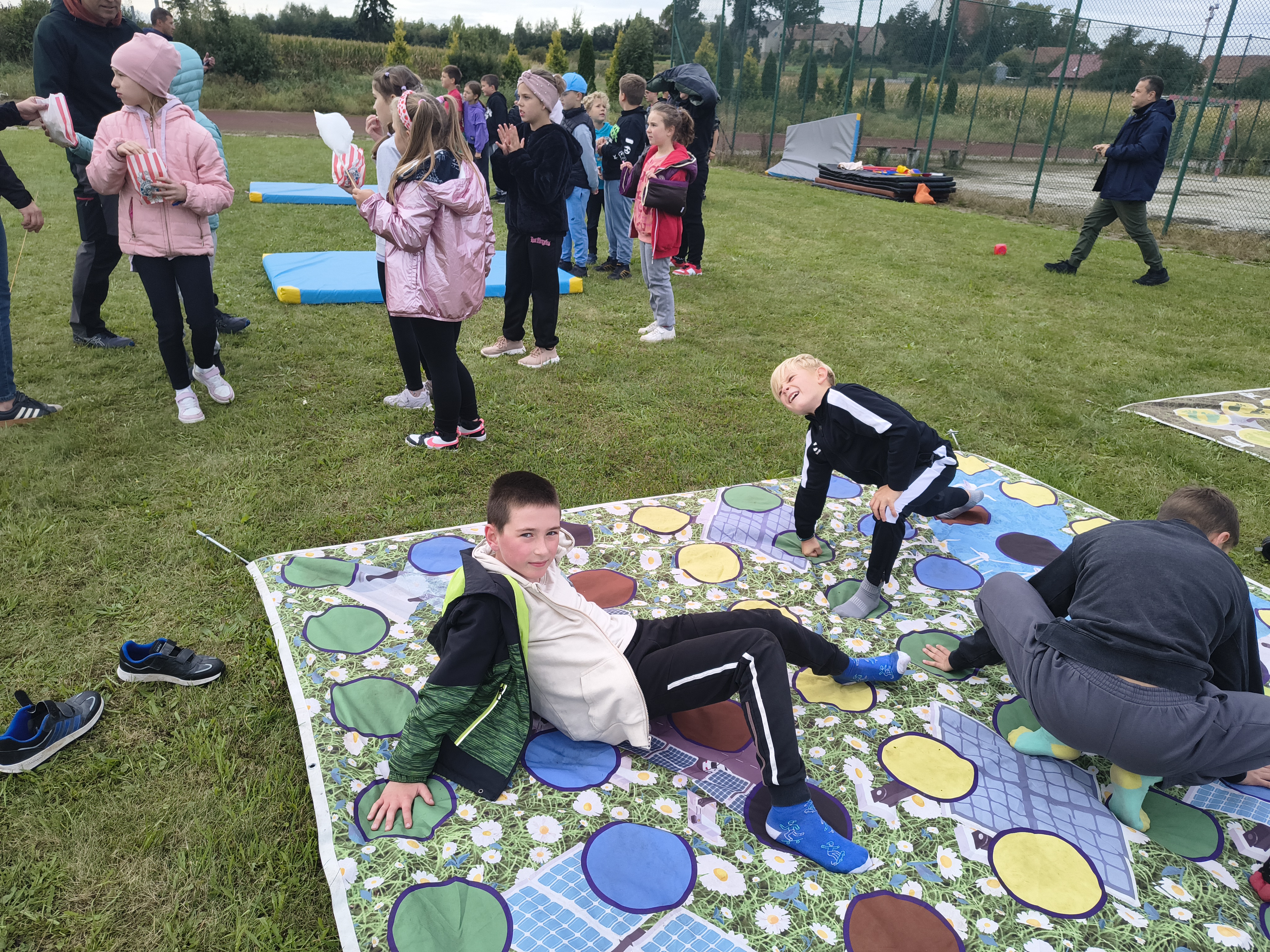Na uczestników czekały również pyszności – tradycyjna grochówka, chrupiący popcorn i słodka wata cukrowa. Rozgrzała nas również gorąca herbatka. Nie zabrakło też wspólnej zabawy – uczniowie tańczyli belgijkę i z entuzjazmem brali udział w zawodach sportowych.