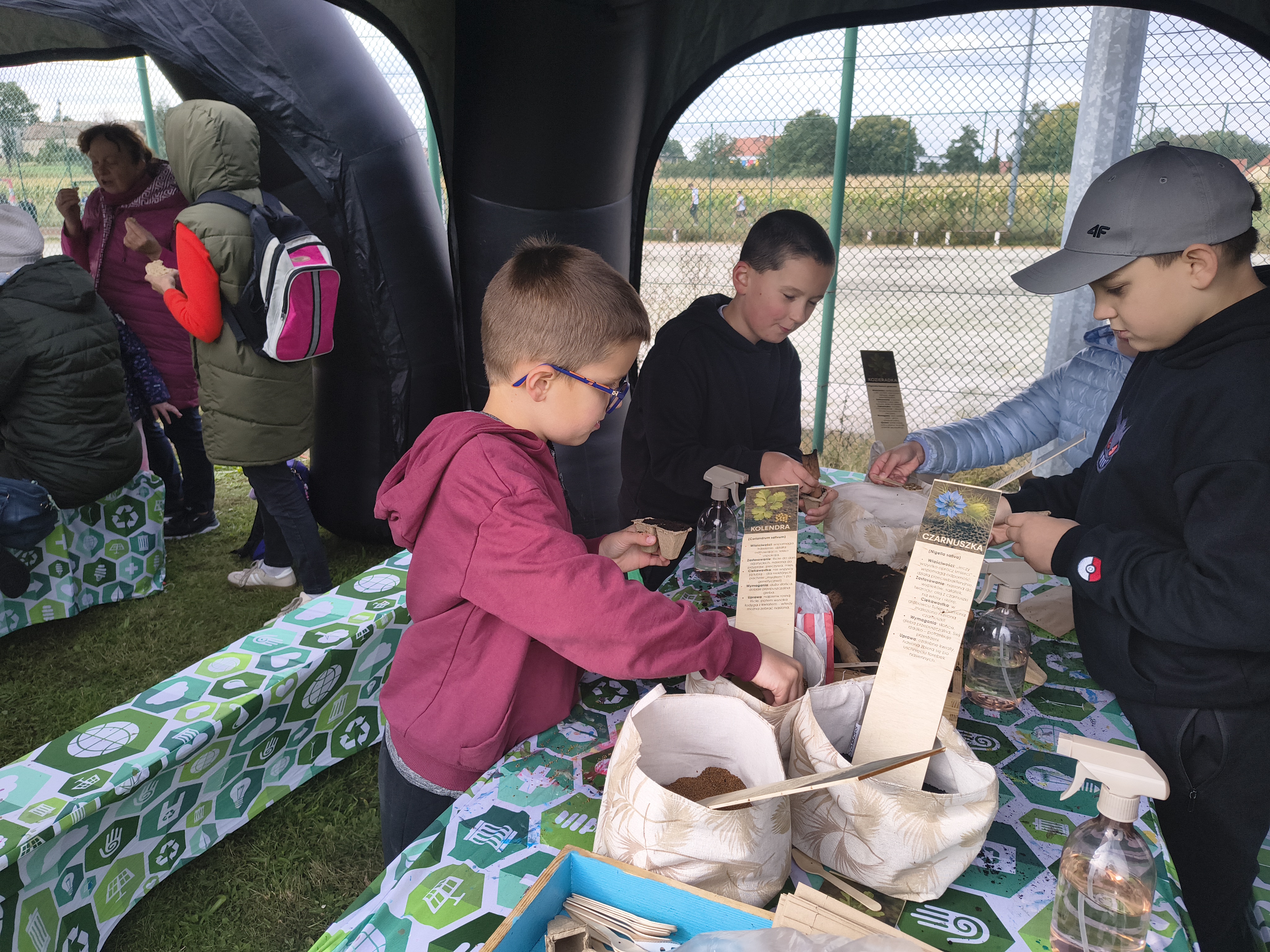 Z okazji 80-lecia naszej szkoły odbył się wyjątkowy piknik ekologiczny, pełen radości, zabawy i niezapomnianych wrażeń. Dzieci miały okazję uczestniczyć w warsztatach ekologicznych – sadziły rośliny, jeżdżąc na rowerach wytwarzały prąd, tworzyły piękne kolorowe ozdoby  oraz malowały własne torby.