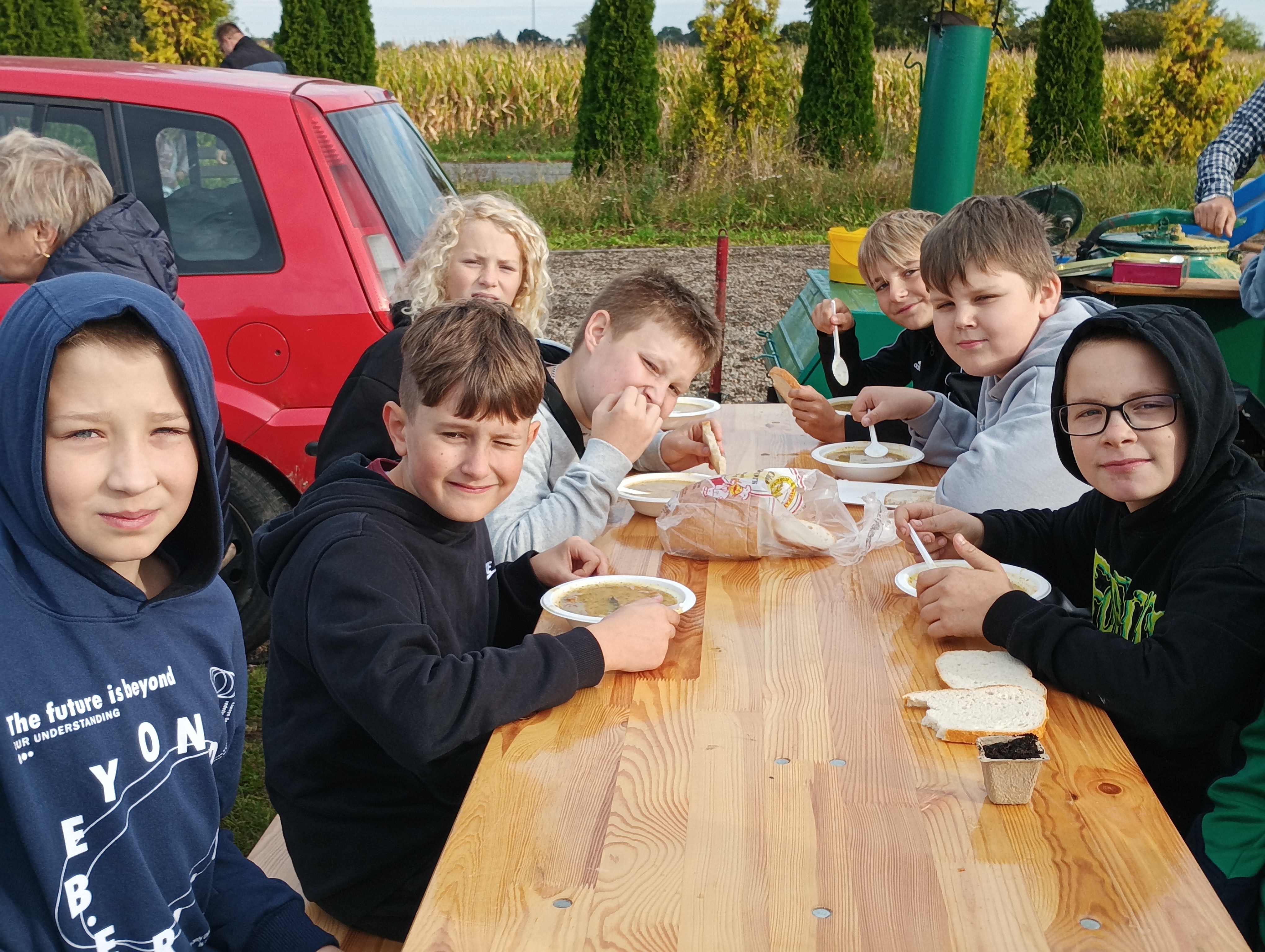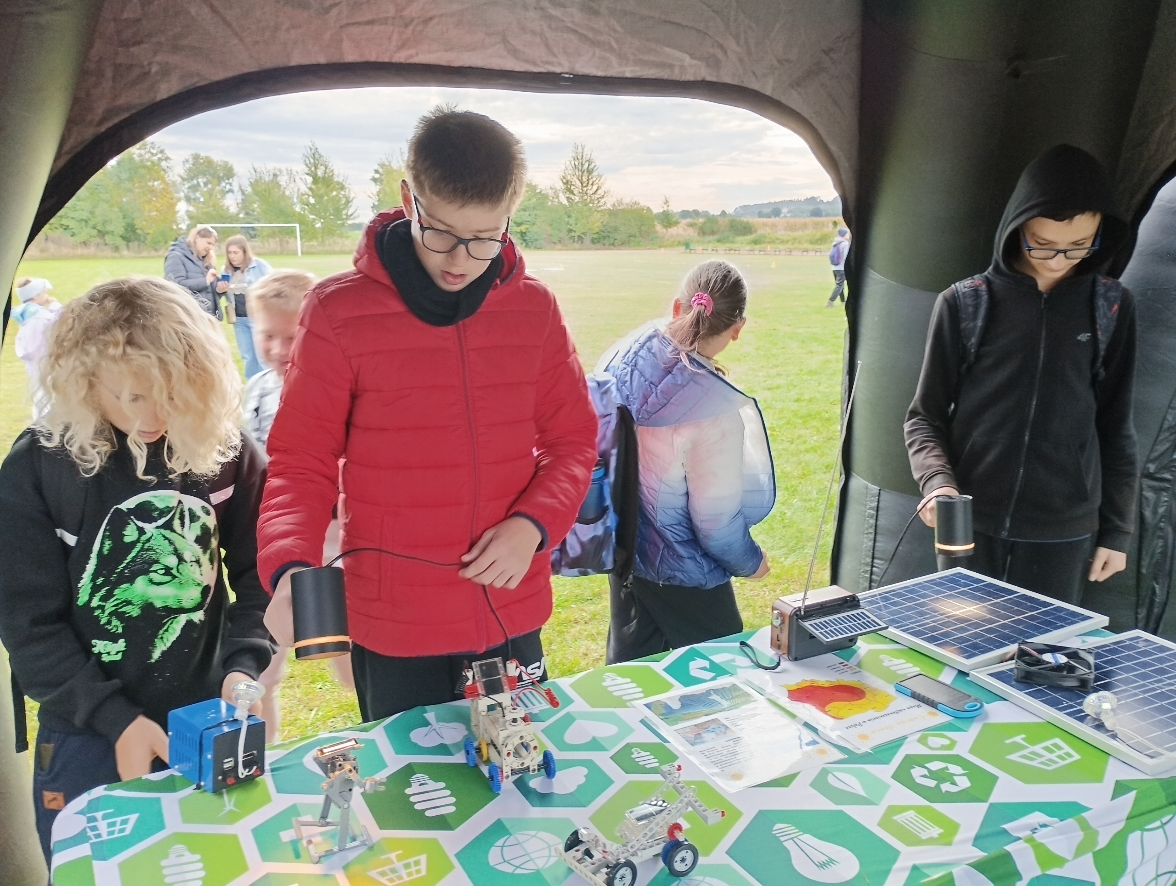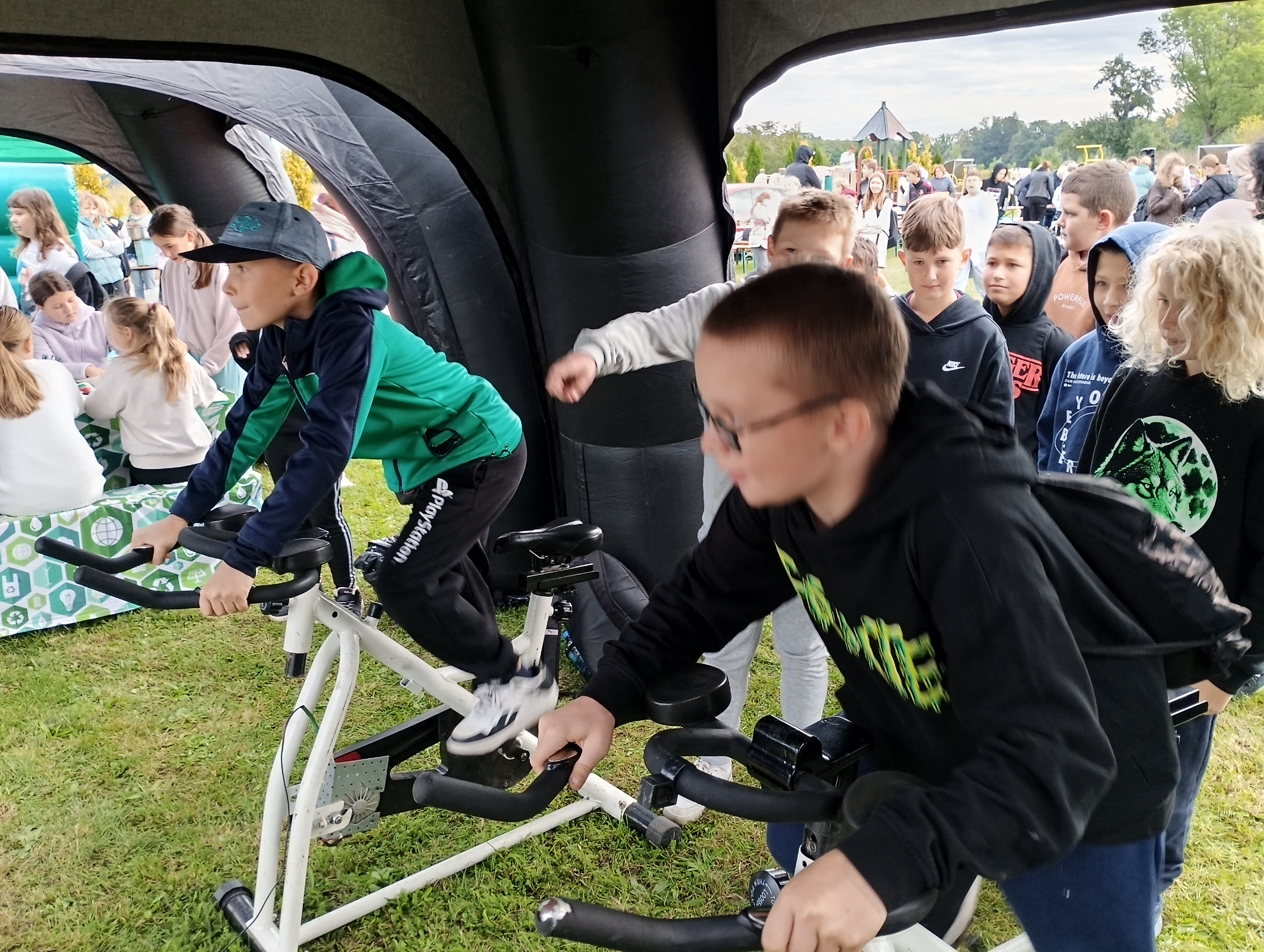 26 września na boisku szkolnym odbył się piknik ekologiczno-sportowy zorganizowany w ramach obchodów 80-lecia naszej szkoły. Wydarzenie obfitowało w liczne atrakcje. Na stoiskach ekologicznych można było własnoręcznie ozdobić torby, posadzić nasiona, spróbować swoich sił w sterowaniu samochodami na panele solarne czy przejechać się na rowerze stacjonarnym. Nauczyciele wychowania fizycznego przygotowali wiele ciekawych konkurencji sportowych, a chętni mogli zatańczyć popularną belgijkę.  Dużym zainteresowaniem cieszył się pokaz taekwondo w wykonaniu naszych uczniów oraz występ taneczny uczennic. Na wszystkich czekały również smakołyki – grochówka, pajda chleba ze smalcem i ogórkiem małosolnym. Niezawodna Rada Rodziców, jak zawsze, stanęła na wysokości zadania, serwując popcorn i watę cukrową. Piknik był okazją do wspólnej zabawy, integracji i aktywnego spędzenia czasu, a także do podkreślenia znaczenia ekologii i sportu w życiu naszej społeczności szkolnej.