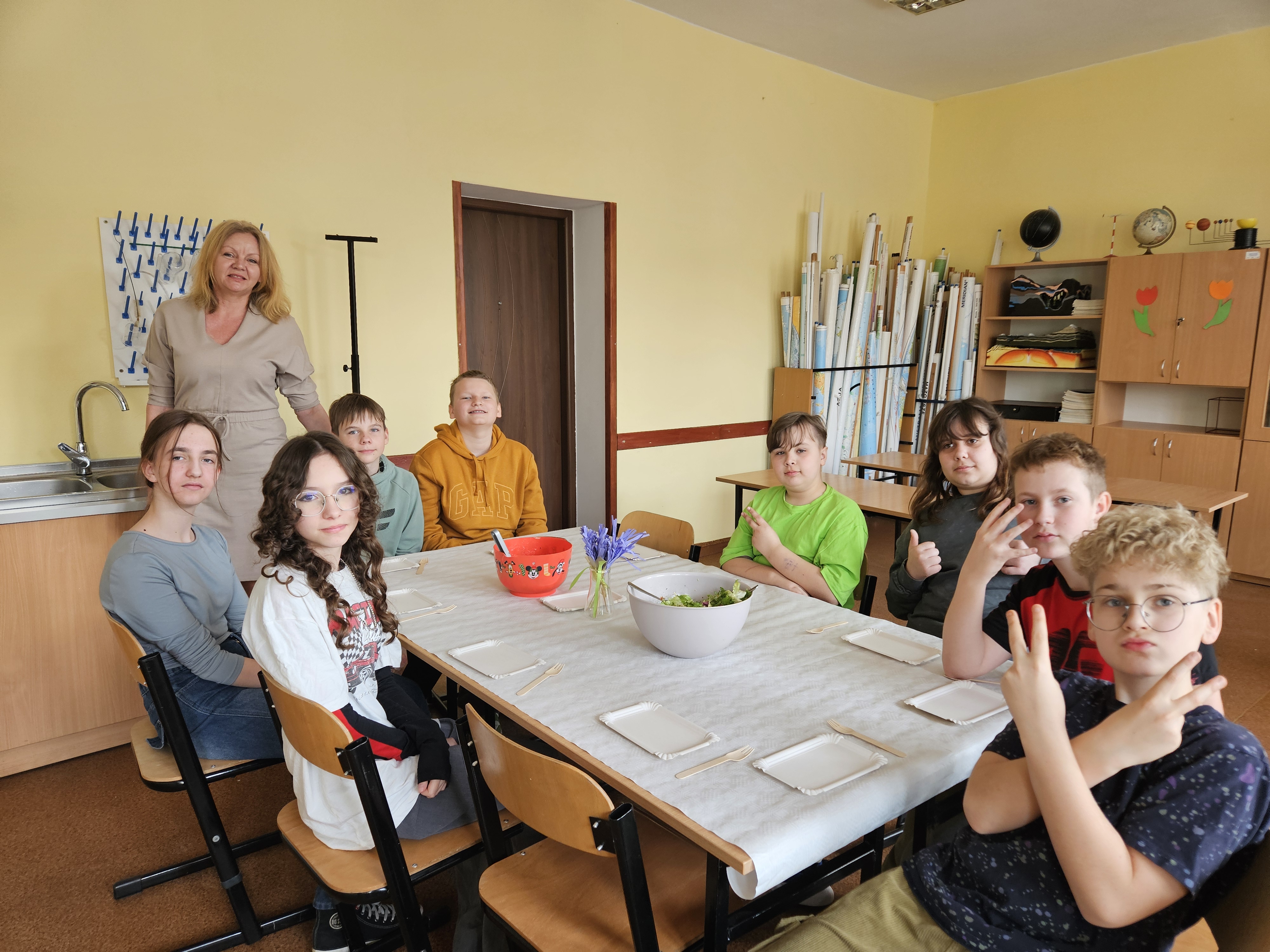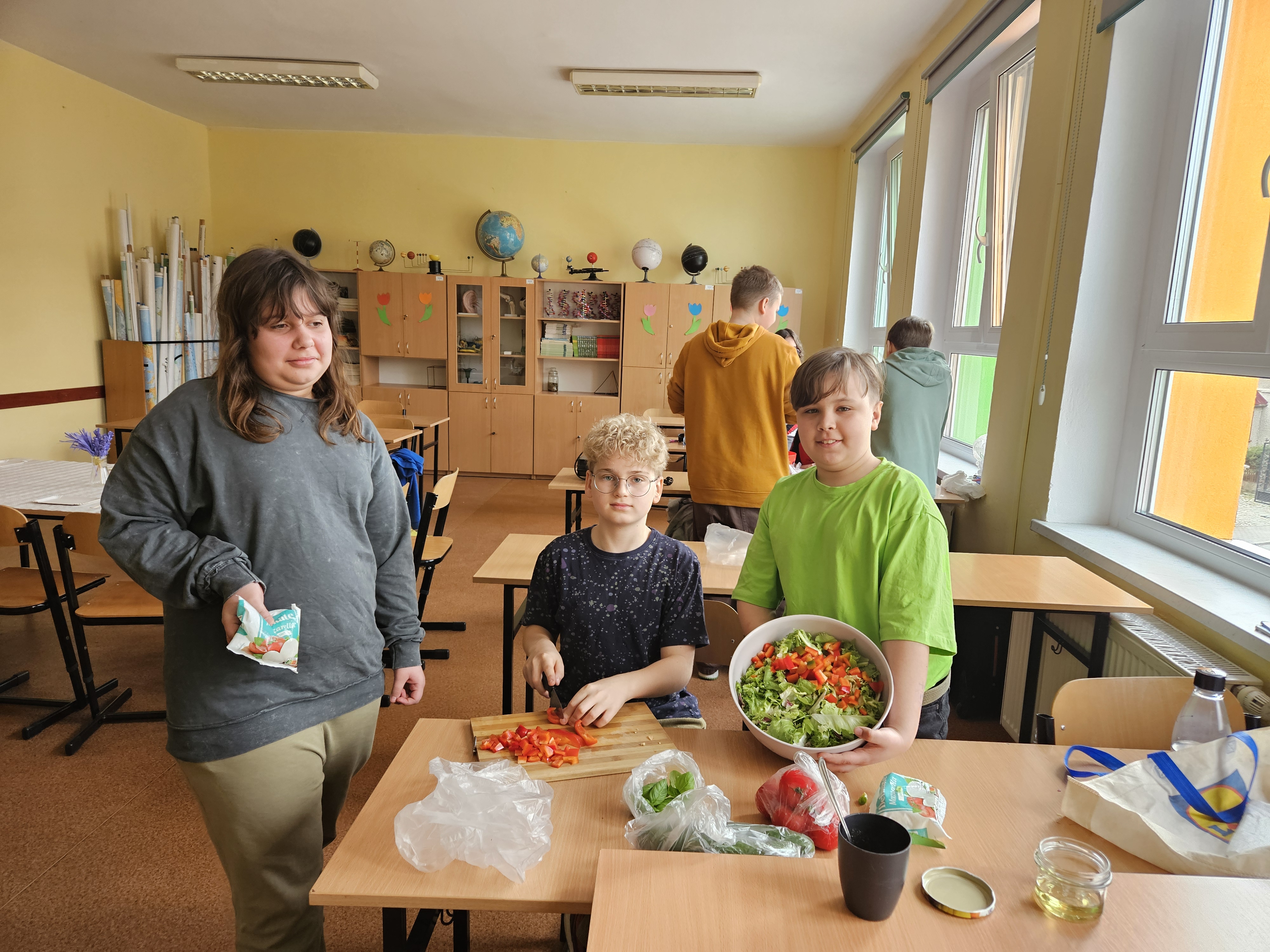 Tego dnia odbyło się mnóstwo konkursów i zabaw. Przygotowaliśmy zdrowe sałatki na drugie śniadanie, które wspólnie zjedliśmy z apetytem. Drugie miejsce w konkursie na najzabawniejszey pojemnik na książki zajął z naszej klasy Szymon, który wykazał się  niebywałą pomysłowością i pracowitością.