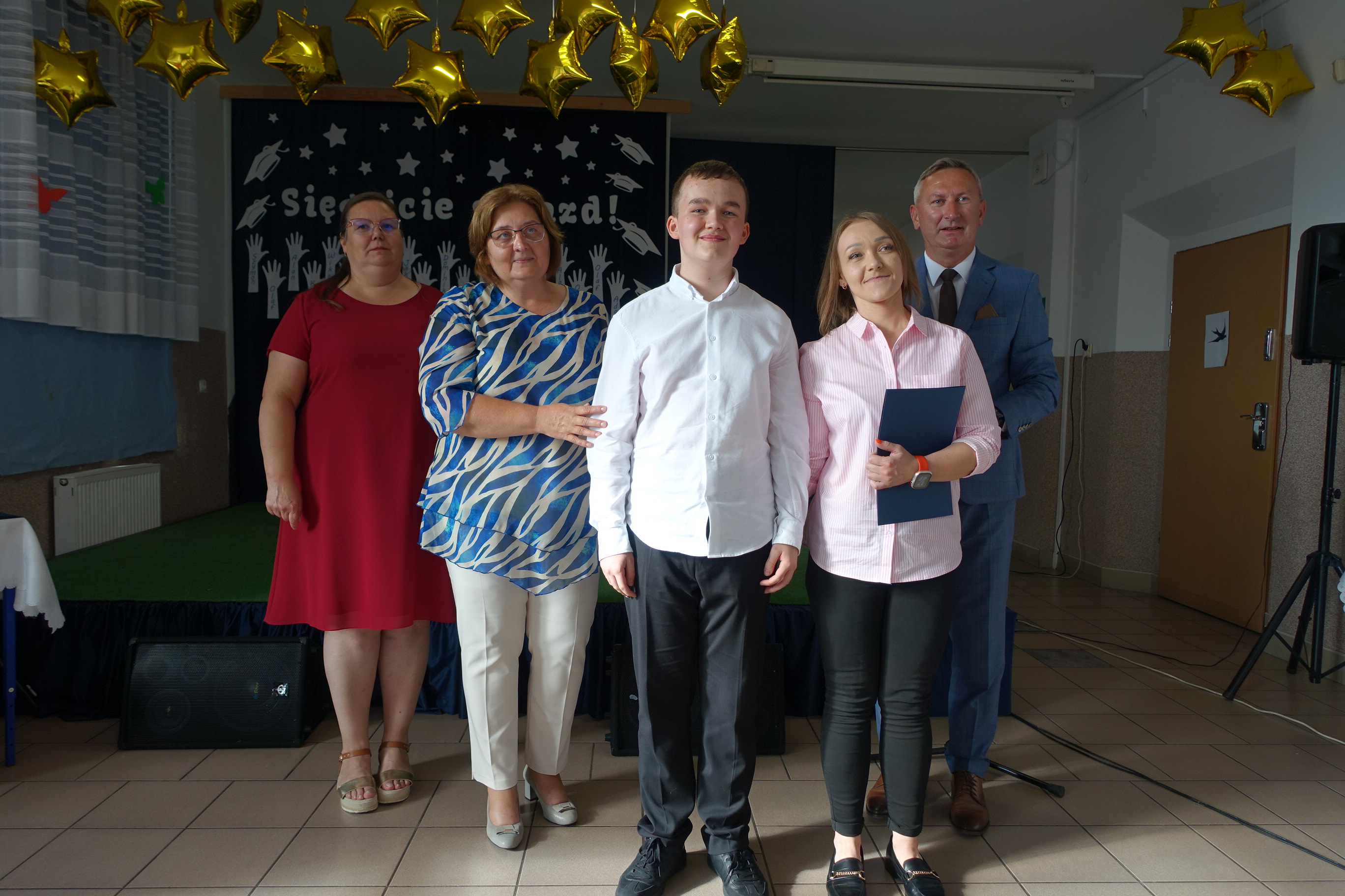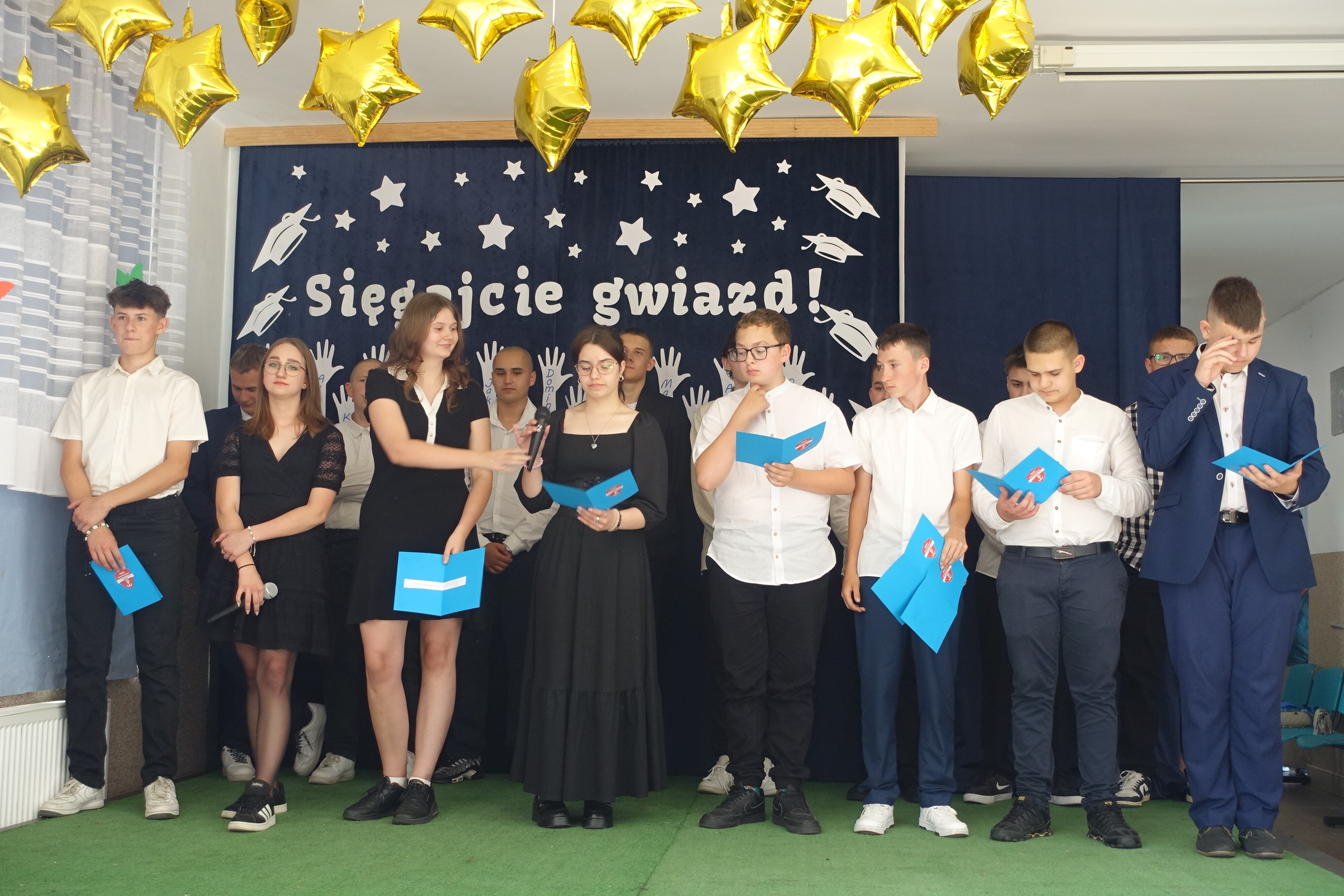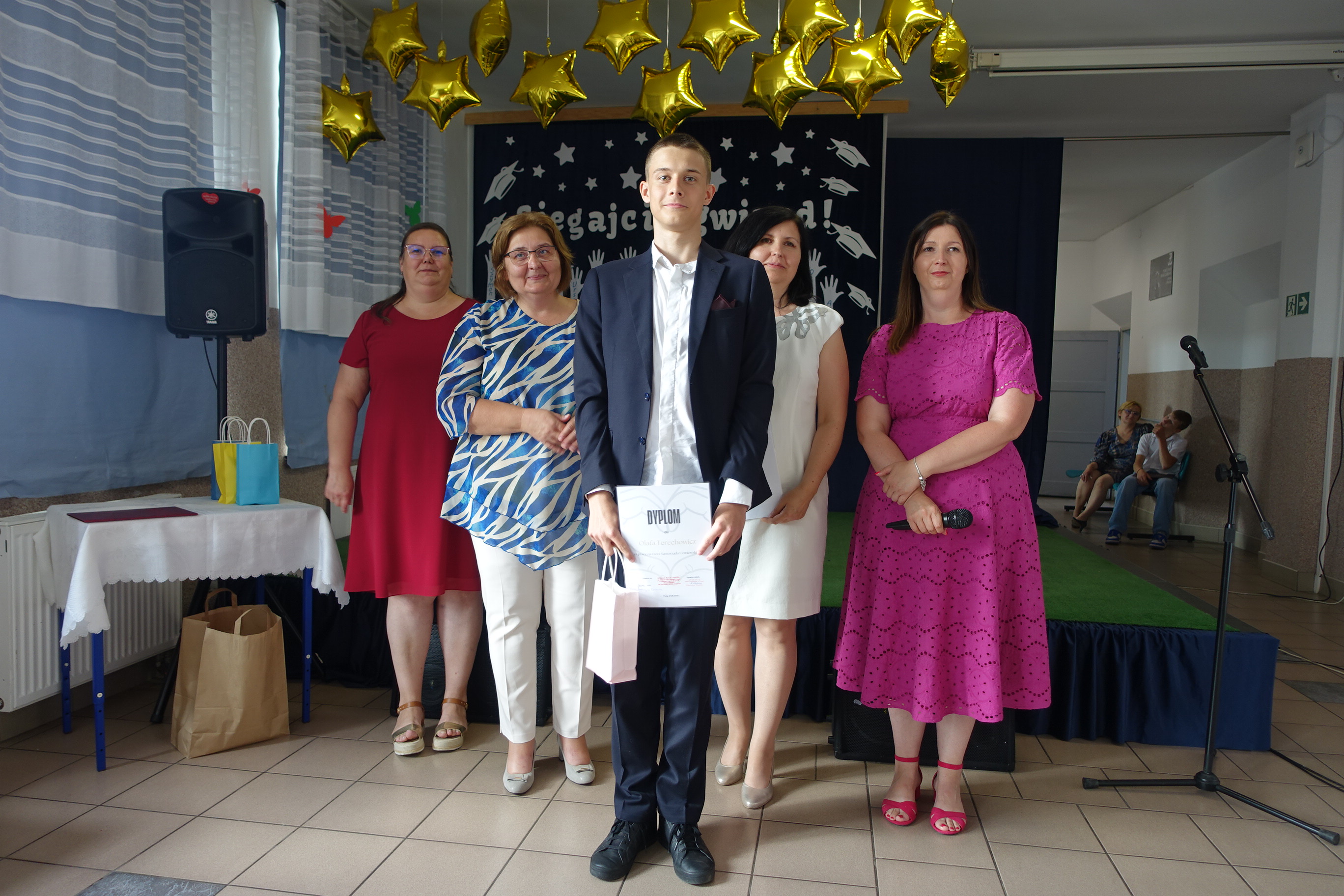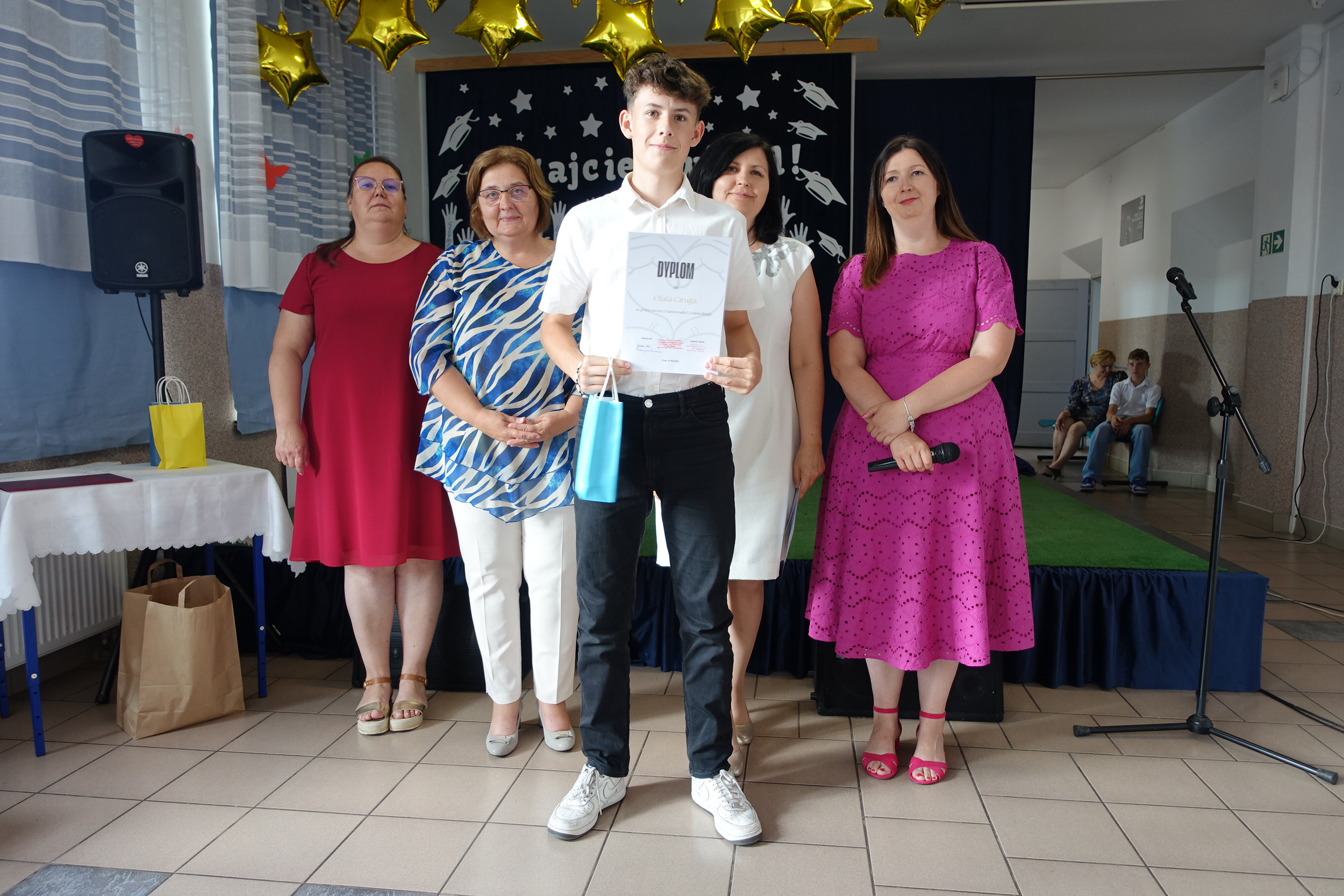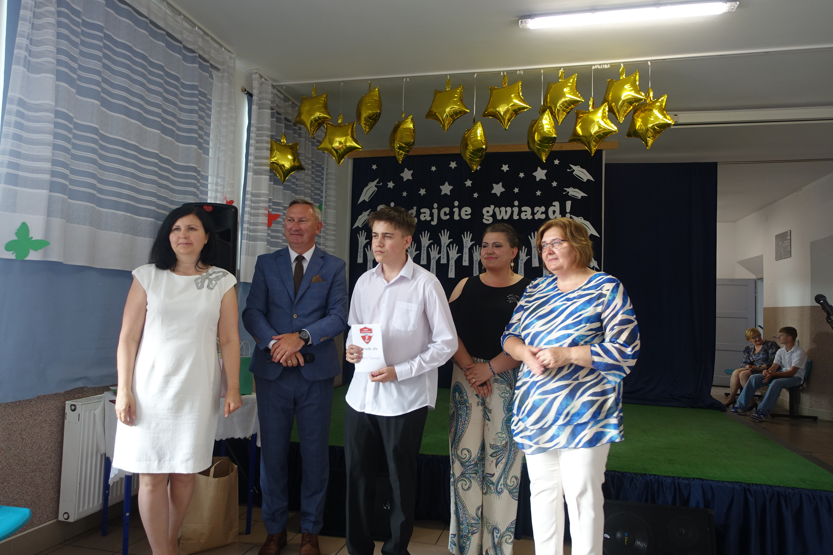 26. czerwca 2025 r. pożegnaliśmy klasę ósmą. Uroczystość była pełna wzruszeń, ale także pozytywnej energii, której jak zwykle dostarczyli nam nasi - już absolwenci. Hasło przwodnie pożegnania brzmiało: Sięgajcie gwiazd i cały przekaz tego wydarzenia skupił się wokól tej idei. Życzenia absolwentom złożyli: Dyrektos Szkoły, Wójt Gminy Kondtratowice, Przewodnicząca Rady Rodziców i wychowawczyni klasy - pani Małgorzata Wójcik. Ściankę VIP przygotowały dla uczniów panie z Rady Rodziców i stąd takie wyjątkowe zdjęcia. Za wyniki w nauce oraz pracę na rzecz szkoły, pracę w wolontariacie, samorządzie uczniowskim, za służbę w poczcie sztandarowym uczniwie otrzymali dyplomy oraz nagrody rzeczowe ufundowane przez Radę Rodziców, samorząd uczniowski, szkołę. Tradycyjnie starszych kolegów pożegnali siómoklasiści. Nie mogło zabraknąć zabawnych wierszyków o każdym absolwencie. Listy gratulacyjne oraz podziękowania za pracę na rzecz szkoły odebrali również rodzice. Do nieba poszybowały także balony z marzeniami naszych ósmoklasistów - oby sie spełniły. Nie zabrakło także słodkiego poczęstunku, za który składamuy serdeczne podziękowania rodzicom.