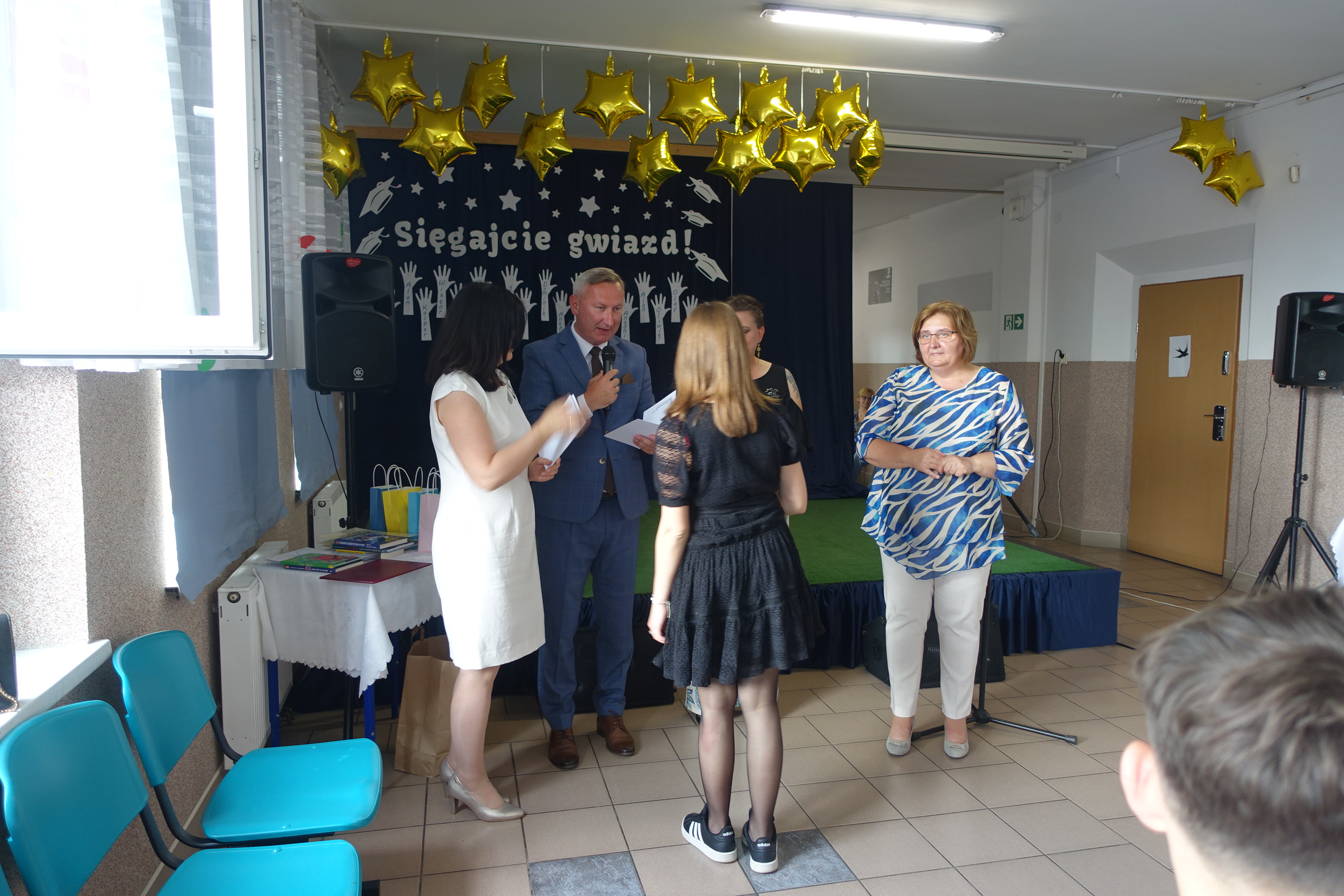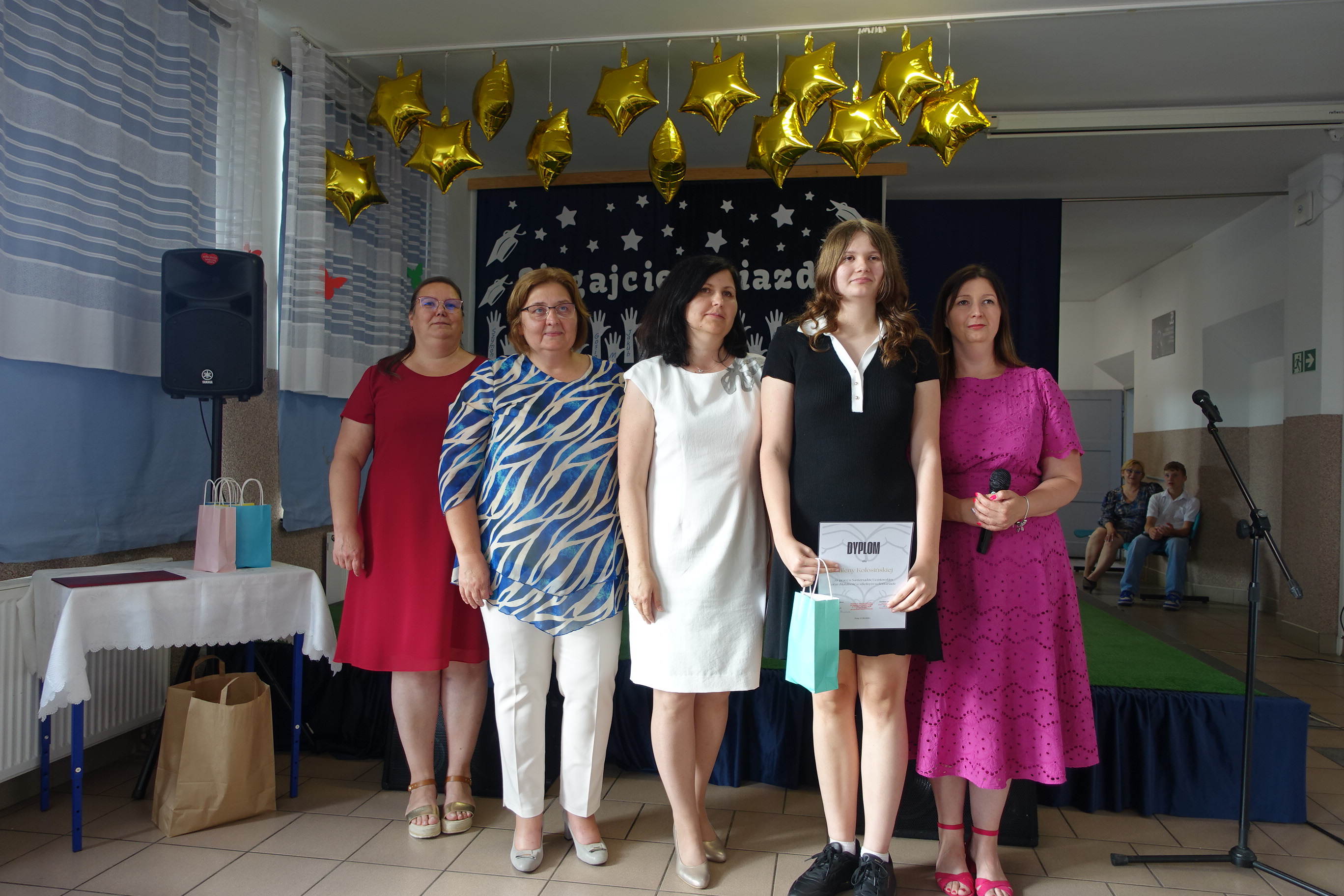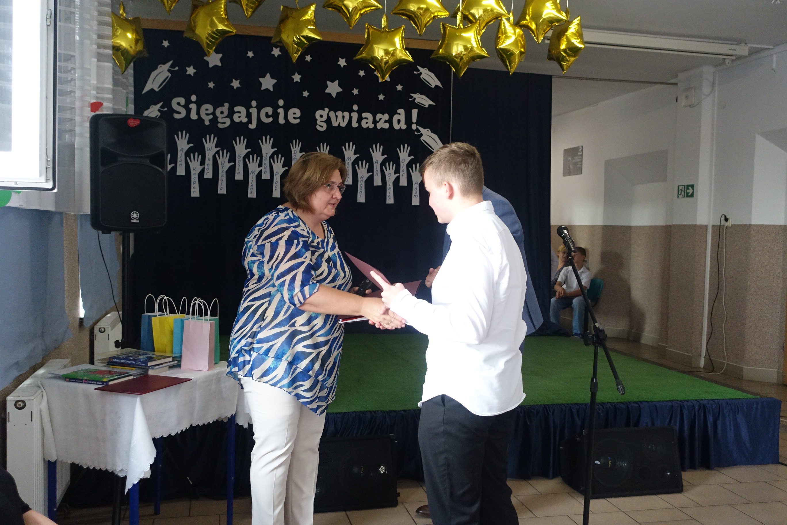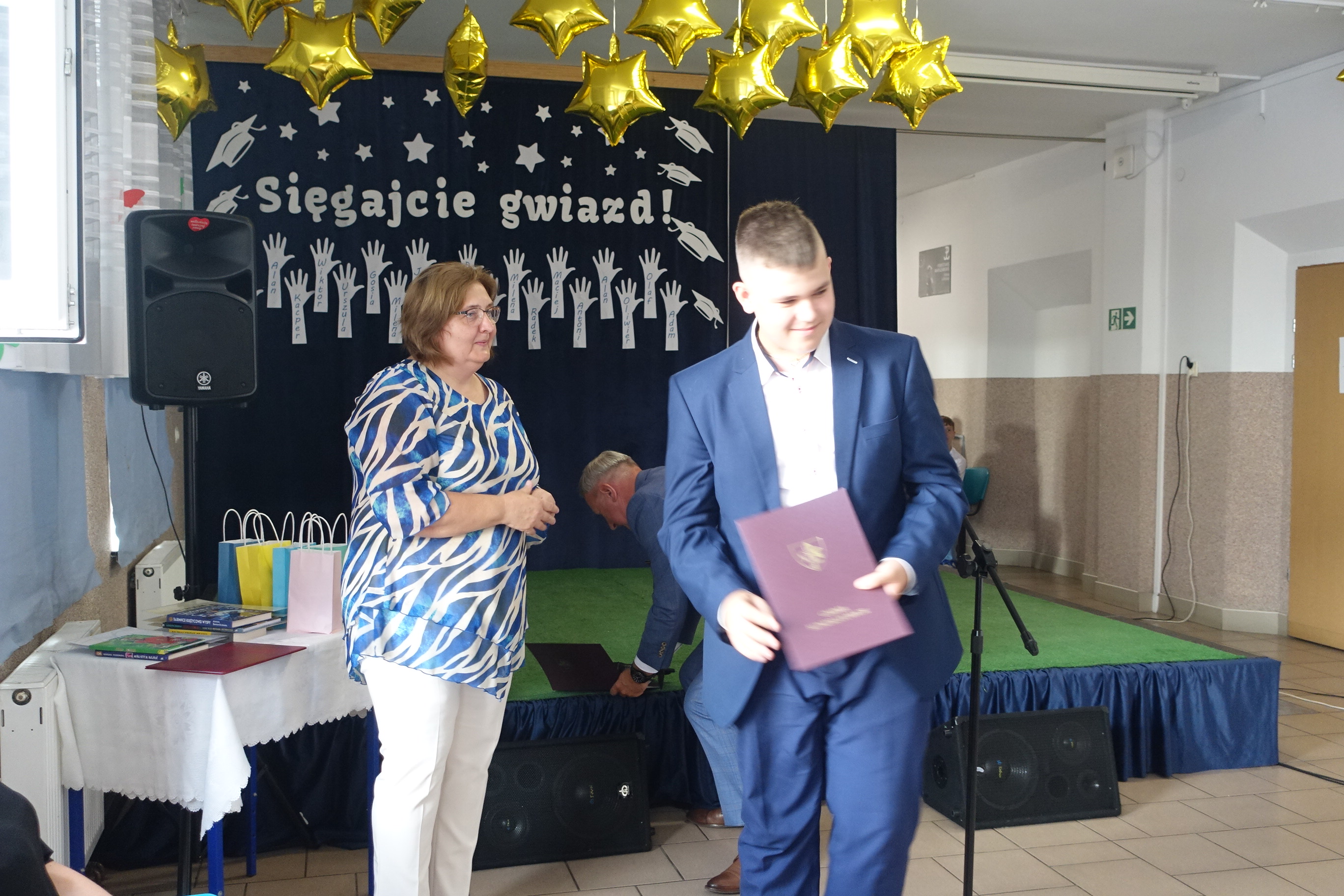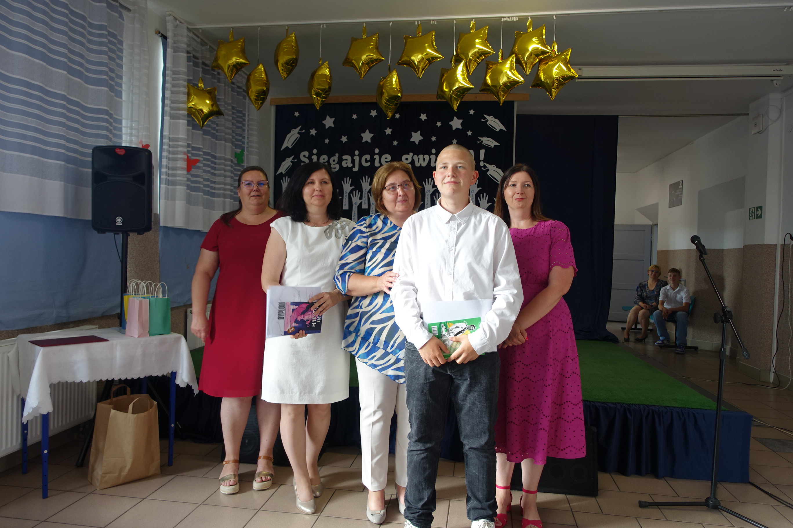 26. czerwca 2025 r. pożegnaliśmy klasę ósmą. Uroczystość była pełna wzruszeń, ale także pozytywnej energii, której jak zwykle dostarczyli nam nasi - już absolwenci. Hasło przwodnie pożegnania brzmiało: Sięgajcie gwiazd i cały przekaz tego wydarzenia skupił się wokól tej idei. Życzenia absolwentom złożyli: Dyrektos Szkoły, Wójt Gminy Kondtratowice, Przewodnicząca Rady Rodziców i wychowawczyni klasy - pani Małgorzata Wójcik. Ściankę VIP przygotowały dla uczniów panie z Rady Rodziców i stąd takie wyjątkowe zdjęcia. Za wyniki w nauce oraz pracę na rzecz szkoły, pracę w wolontariacie, samorządzie uczniowskim, za służbę w poczcie sztandarowym uczniwie otrzymali dyplomy oraz nagrody rzeczowe ufundowane przez Radę Rodziców, samorząd uczniowski, szkołę. Tradycyjnie starszych kolegów pożegnali siómoklasiści. Nie mogło zabraknąć zabawnych wierszyków o każdym absolwencie. Listy gratulacyjne oraz podziękowania za pracę na rzecz szkoły odebrali również rodzice. Do nieba poszybowały także balony z marzeniami naszych ósmoklasistów - oby sie spełniły. Nie zabrakło także słodkiego poczęstunku, za który składamuy serdeczne podziękowania rodzicom.