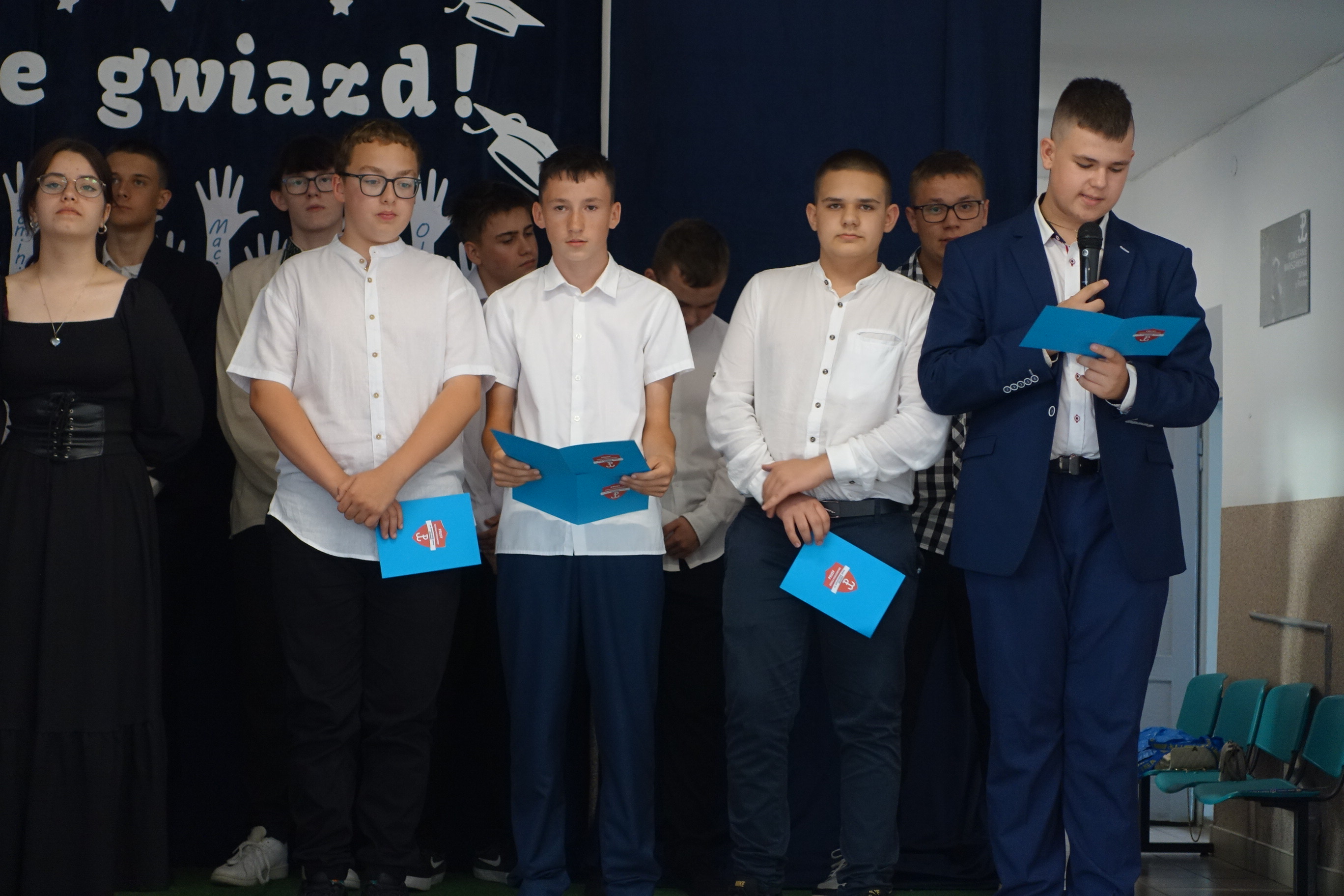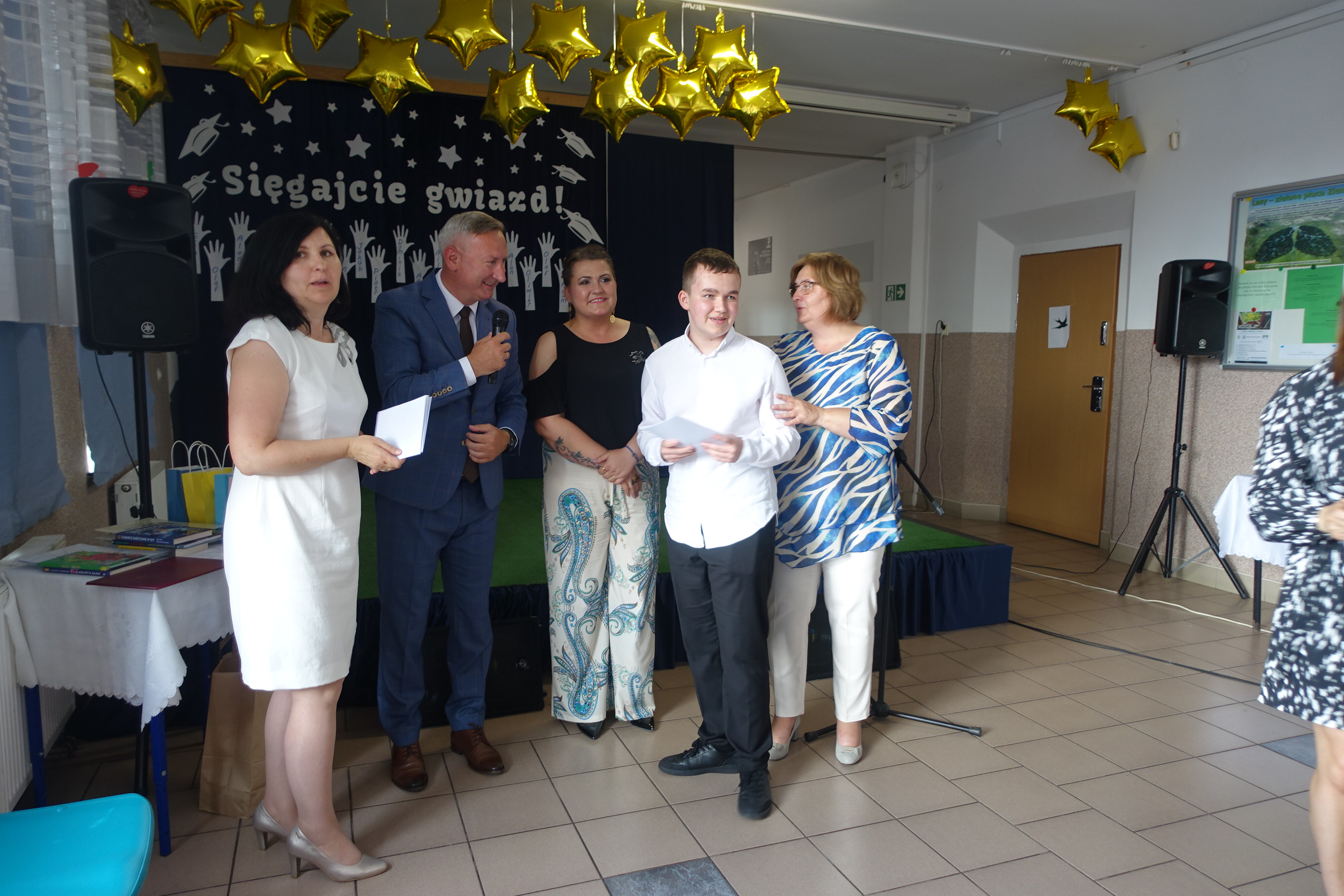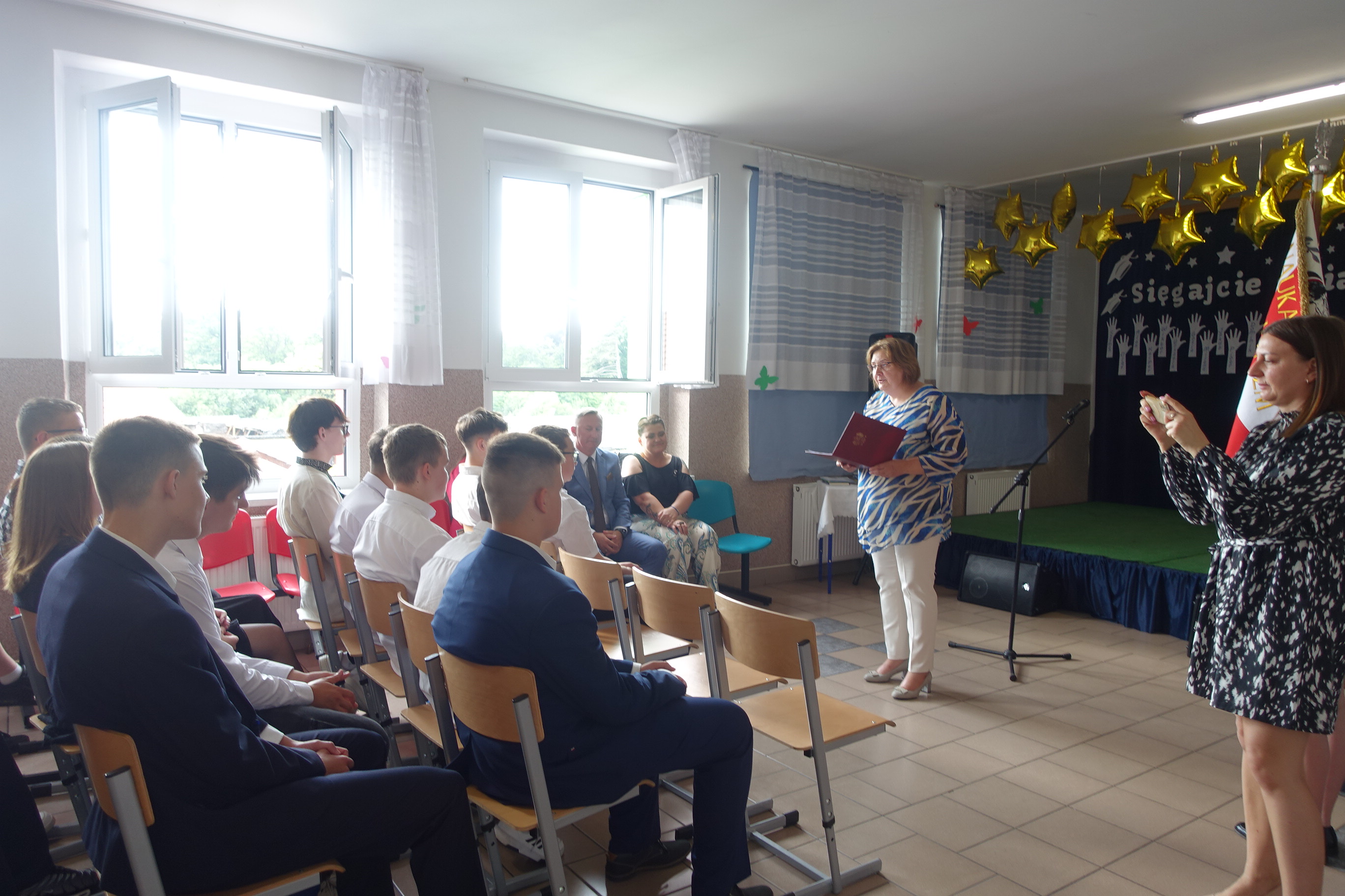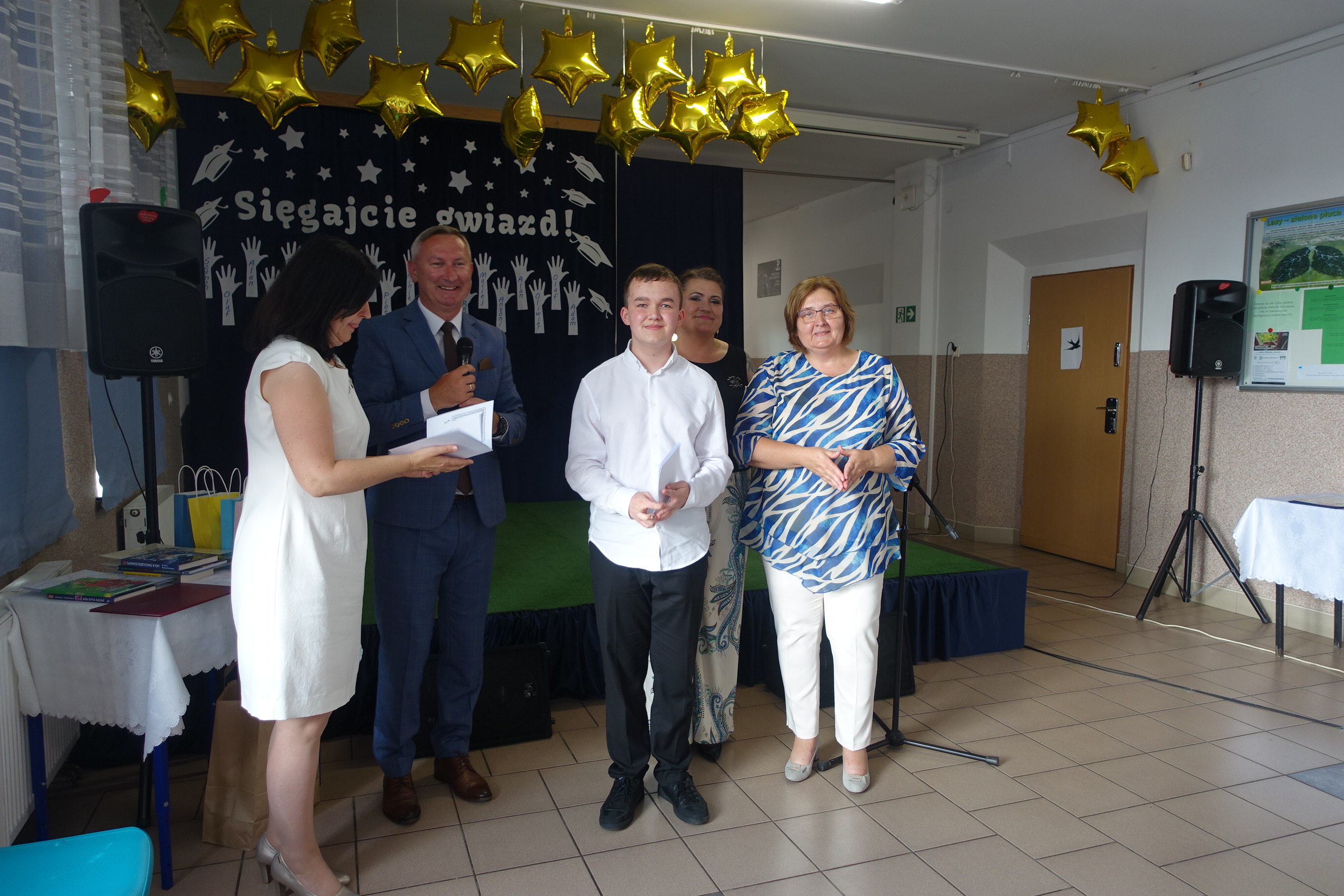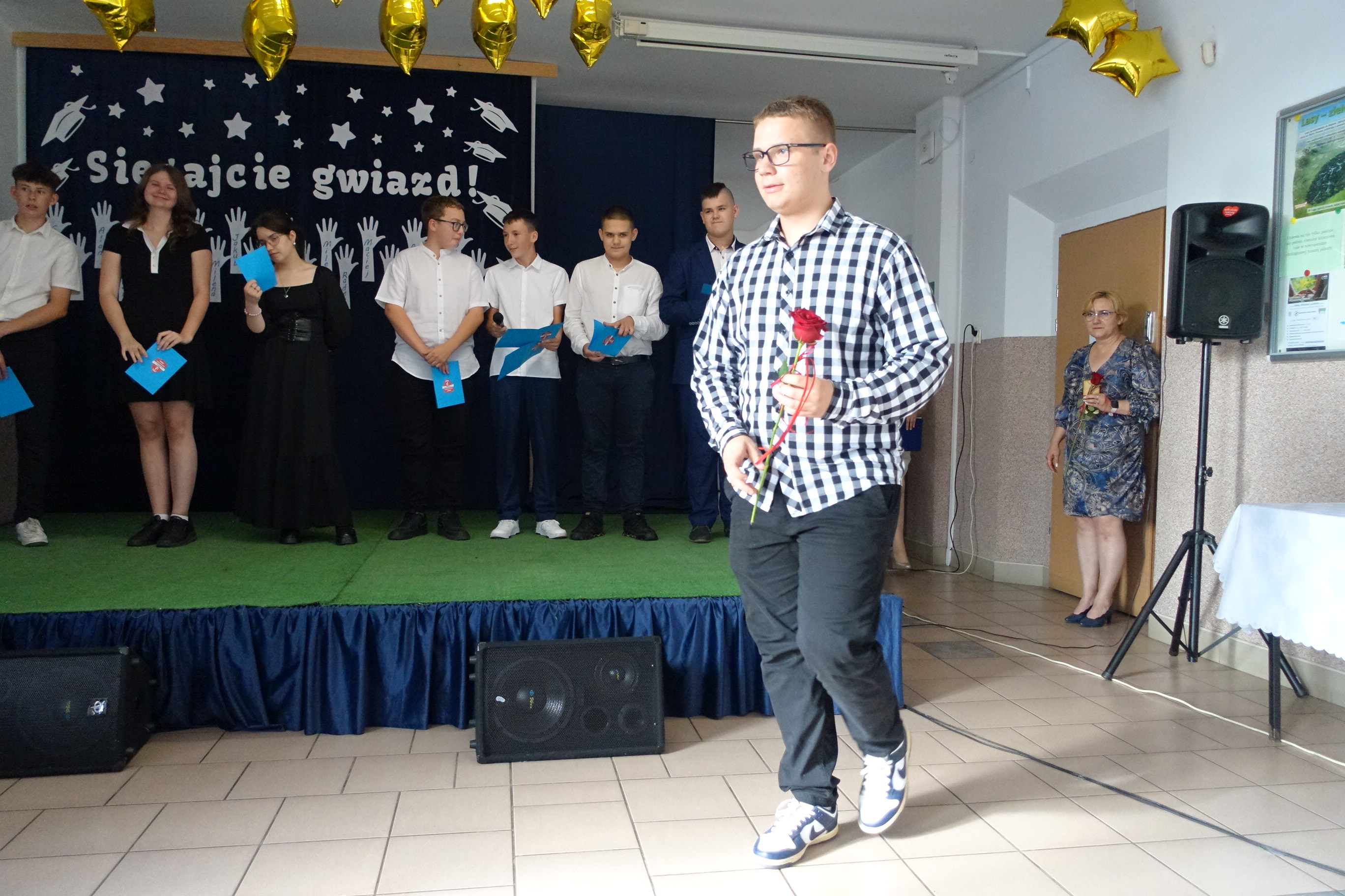 26. czerwca 2025 r. pożegnaliśmy klasę ósmą. Uroczystość była pełna wzruszeń, ale także pozytywnej energii, której jak zwykle dostarczyli nam nasi - już absolwenci. Hasło przwodnie pożegnania brzmiało: Sięgajcie gwiazd i cały przekaz tego wydarzenia skupił się wokól tej idei. Życzenia absolwentom złożyli: Dyrektos Szkoły, Wójt Gminy Kondtratowice, Przewodnicząca Rady Rodziców i wychowawczyni klasy - pani Małgorzata Wójcik. Ściankę VIP przygotowały dla uczniów panie z Rady Rodziców i stąd takie wyjątkowe zdjęcia. Za wyniki w nauce oraz pracę na rzecz szkoły, pracę w wolontariacie, samorządzie uczniowskim, za służbę w poczcie sztandarowym uczniwie otrzymali dyplomy oraz nagrody rzeczowe ufundowane przez Radę Rodziców, samorząd uczniowski, szkołę. Tradycyjnie starszych kolegów pożegnali siómoklasiści. Nie mogło zabraknąć zabawnych wierszyków o każdym absolwencie. Listy gratulacyjne oraz podziękowania za pracę na rzecz szkoły odebrali również rodzice. Do nieba poszybowały także balony z marzeniami naszych ósmoklasistów - oby sie spełniły. Nie zabrakło także słodkiego poczęstunku, za który składamuy serdeczne podziękowania rodzicom.
