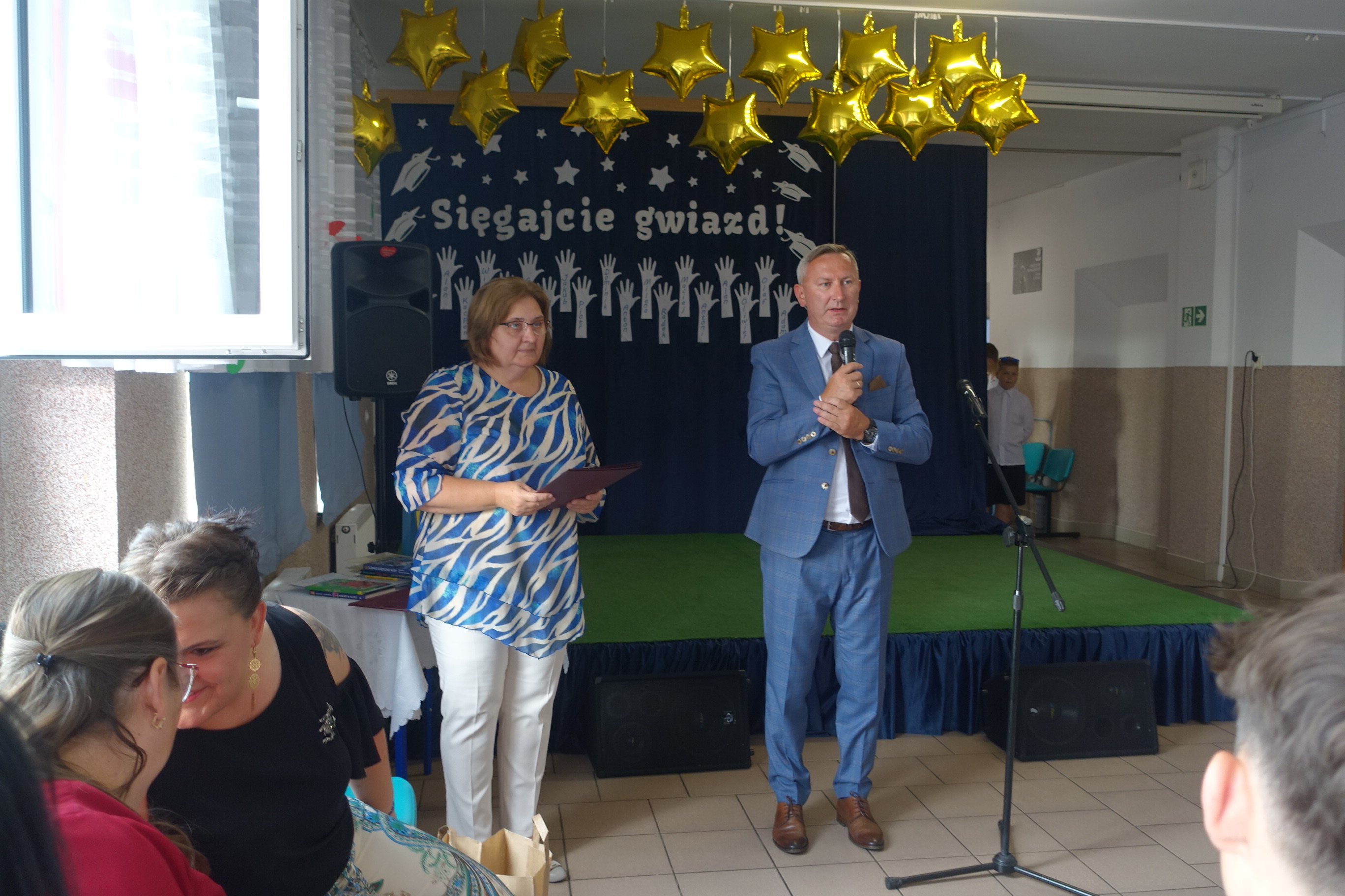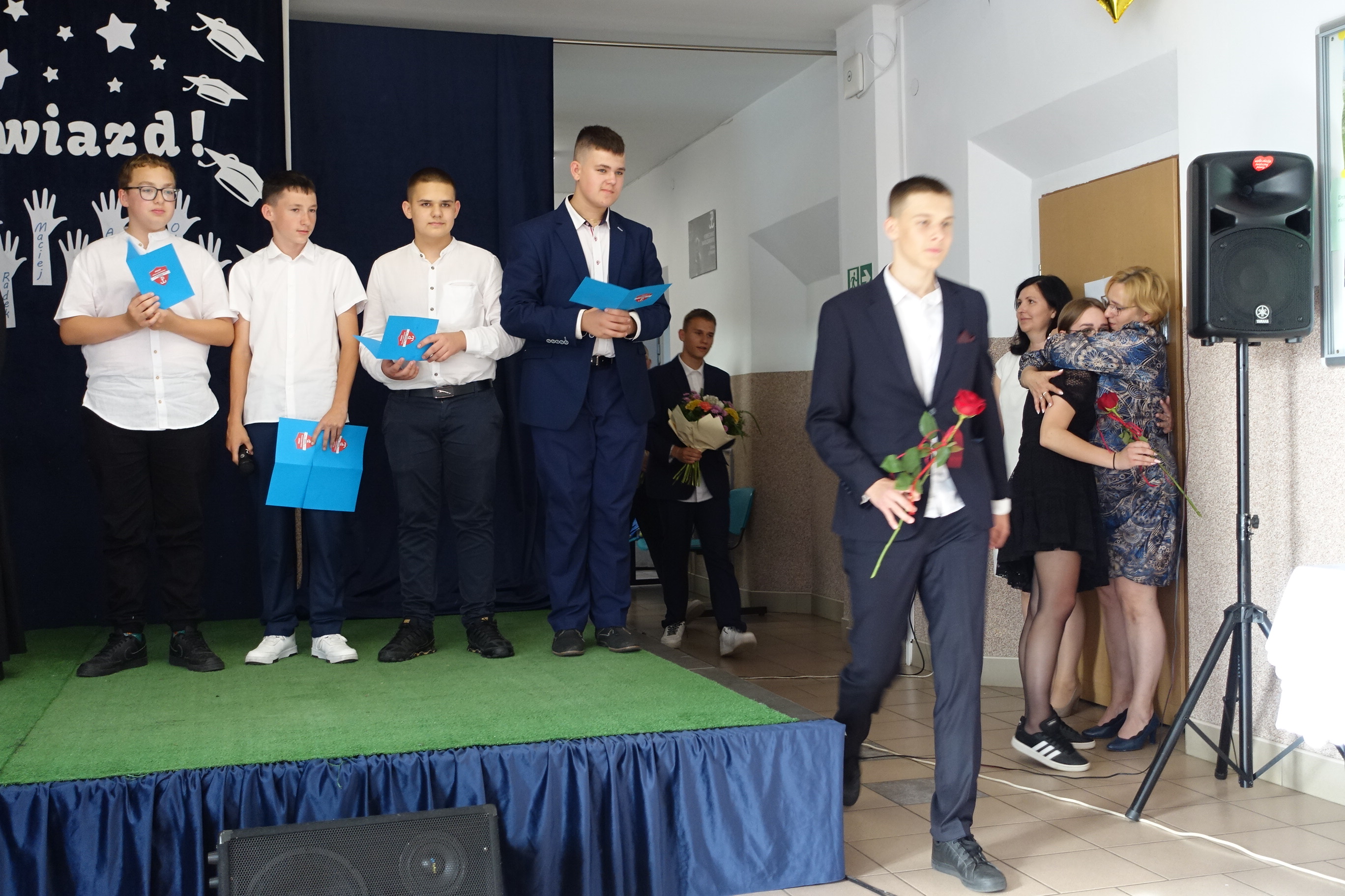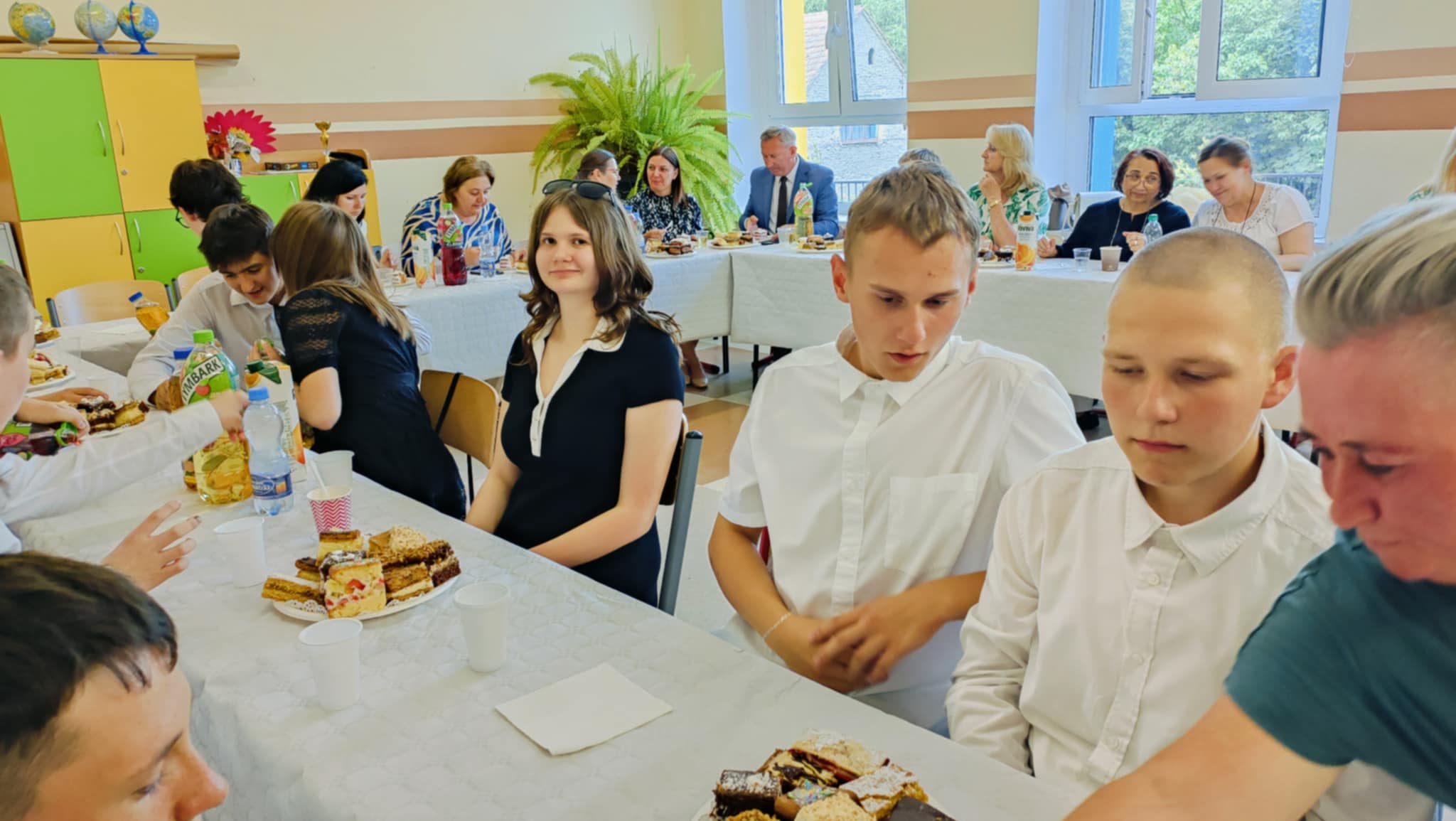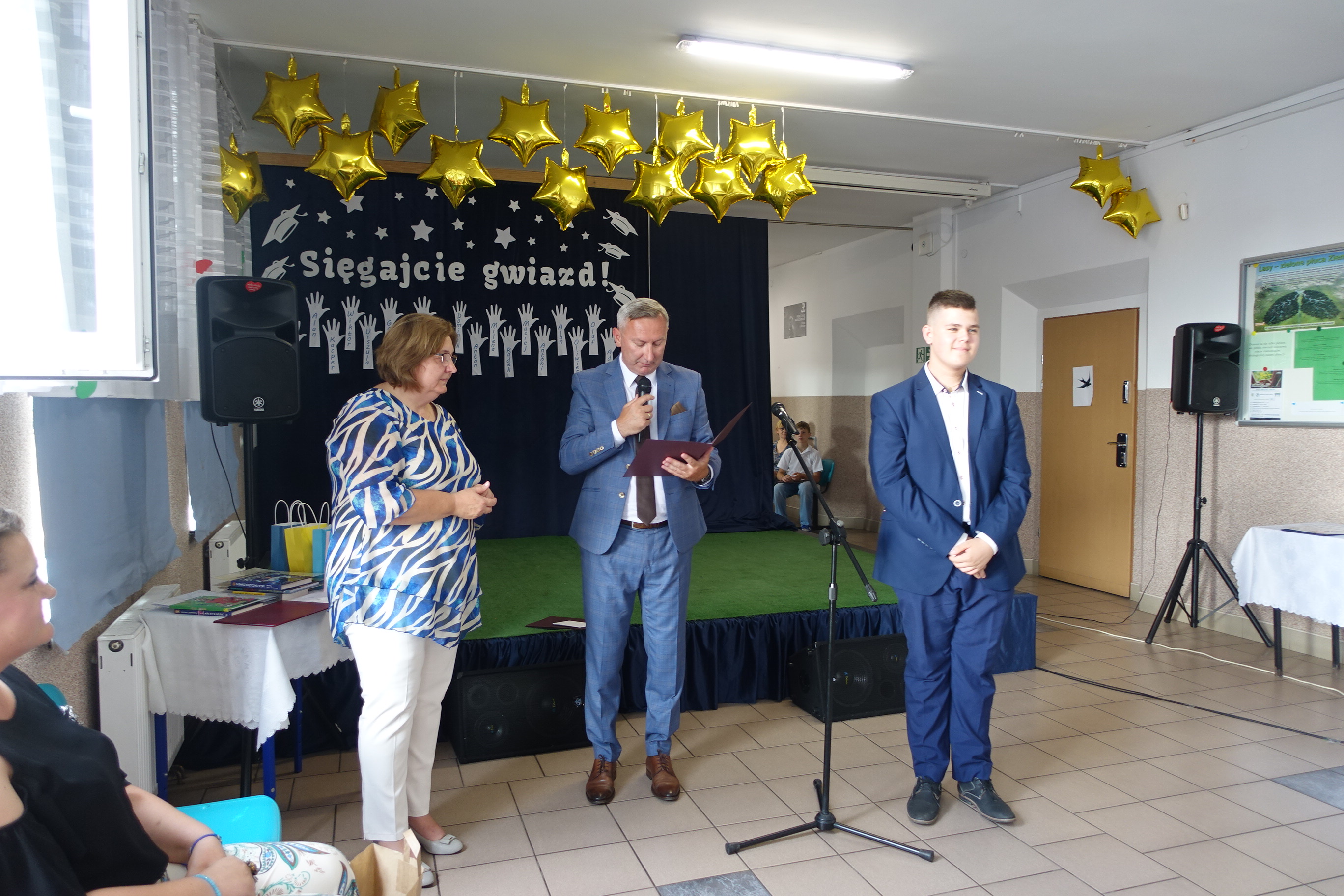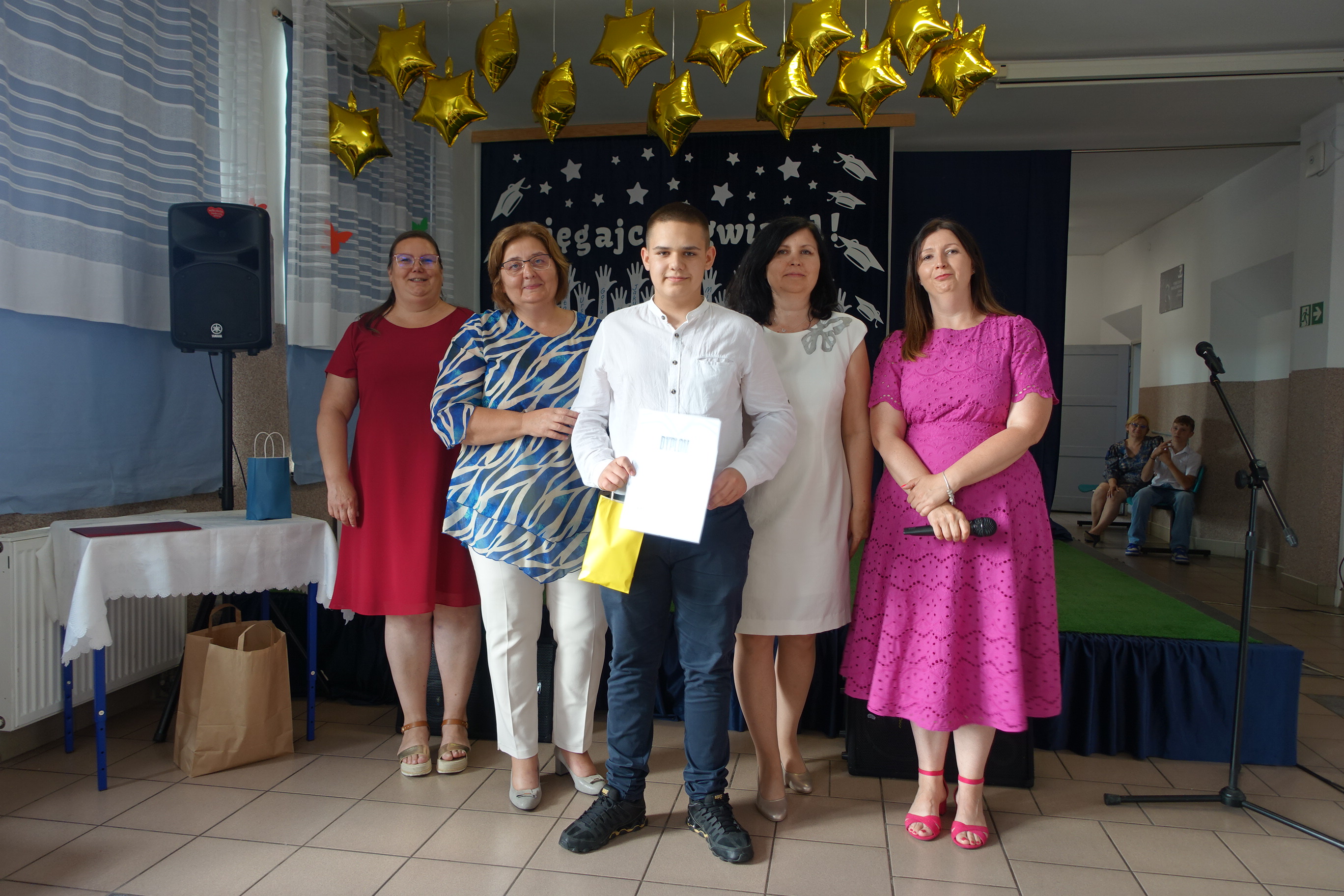 26. czerwca 2025 r. pożegnaliśmy klasę ósmą. Uroczystość była pełna wzruszeń, ale także pozytywnej energii, której jak zwykle dostarczyli nam nasi - już absolwenci. Hasło przwodnie pożegnania brzmiało: Sięgajcie gwiazd i cały przekaz tego wydarzenia skupił się wokól tej idei. Życzenia absolwentom złożyli: Dyrektos Szkoły, Wójt Gminy Kondtratowice, Przewodnicząca Rady Rodziców i wychowawczyni klasy - pani Małgorzata Wójcik. Ściankę VIP przygotowały dla uczniów panie z Rady Rodziców i stąd takie wyjątkowe zdjęcia. Za wyniki w nauce oraz pracę na rzecz szkoły, pracę w wolontariacie, samorządzie uczniowskim, za służbę w poczcie sztandarowym uczniwie otrzymali dyplomy oraz nagrody rzeczowe ufundowane przez Radę Rodziców, samorząd uczniowski, szkołę. Tradycyjnie starszych kolegów pożegnali siómoklasiści. Nie mogło zabraknąć zabawnych wierszyków o każdym absolwencie. Listy gratulacyjne oraz podziękowania za pracę na rzecz szkoły odebrali również rodzice. Do nieba poszybowały także balony z marzeniami naszych ósmoklasistów - oby sie spełniły. Nie zabrakło także słodkiego poczęstunku, za który składamuy serdeczne podziękowania rodzicom.