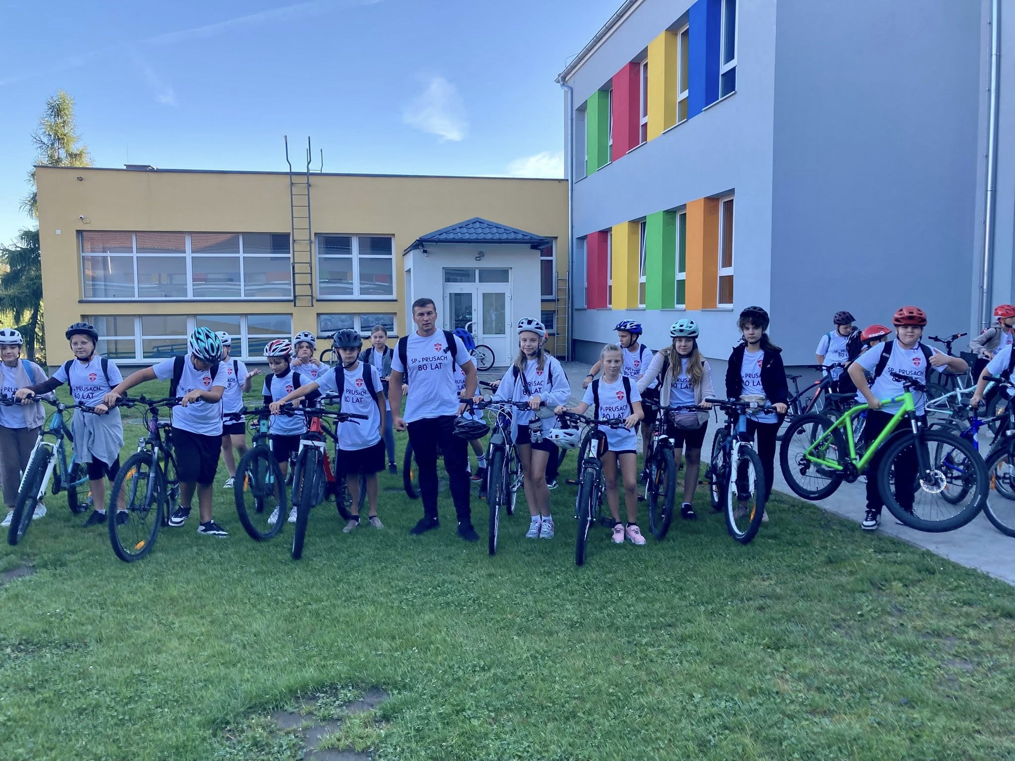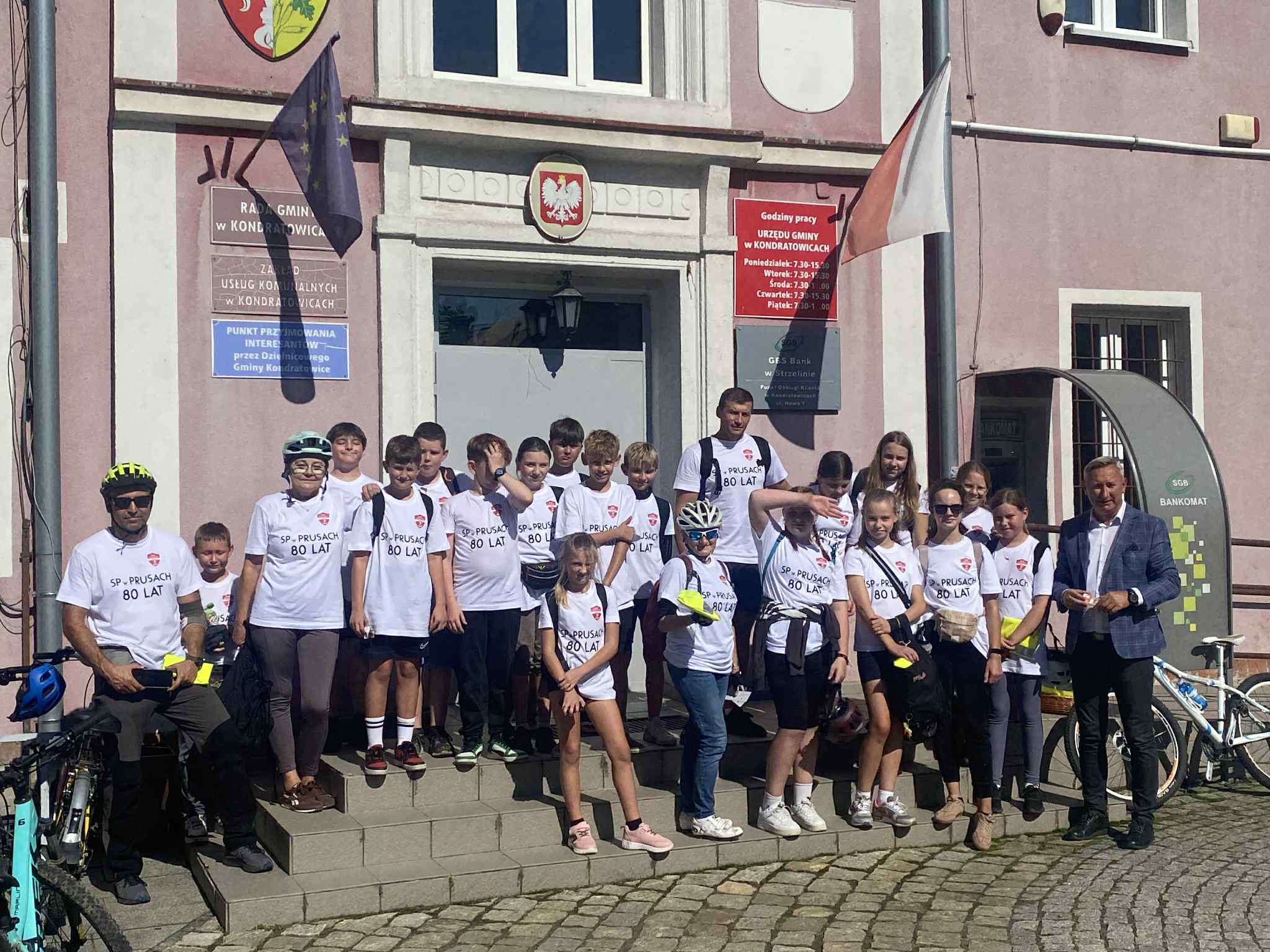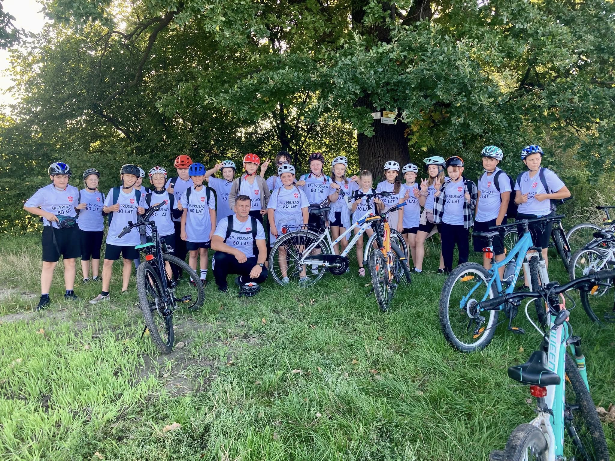 #80lecieSzkoły❤️??Z okazji obchodów 80- lecia naszej szkoły odbyła się wycieczka rowerowa po przepięknych terenach naszej gminy. Mieliśmy okazję podziwiać piękne krajobrazy, zabytki, urokliwe zakątki i aktywnie spędzić czas na świeżym powietrzu. W połowie trasy czekało na nas ognisko,  które stało się formą odpoczynku, okazją do rozmów, integracji i radosnego świętowania jubileuszu. Bardzo dziękujemy za jego przygotowanie pani Marcie Famulskiej oraz rodzicom klasy 5b. Podczas wyprawy odwiedziliśmy Urząd Gminy, gdzie zostaliśmy serdecznie przyjęci przez pracowników oraz pana Wójta, który pogratulował szkole wspaniałego jubileuszu i podkreślił jej ważną rolę w życiu lokalnej społeczności. Upominki też były. ? Wycieczka miała także wymiar symboliczny - była okazją do wspólnego kultywowania tradycji i historii naszej szkoły??❤️