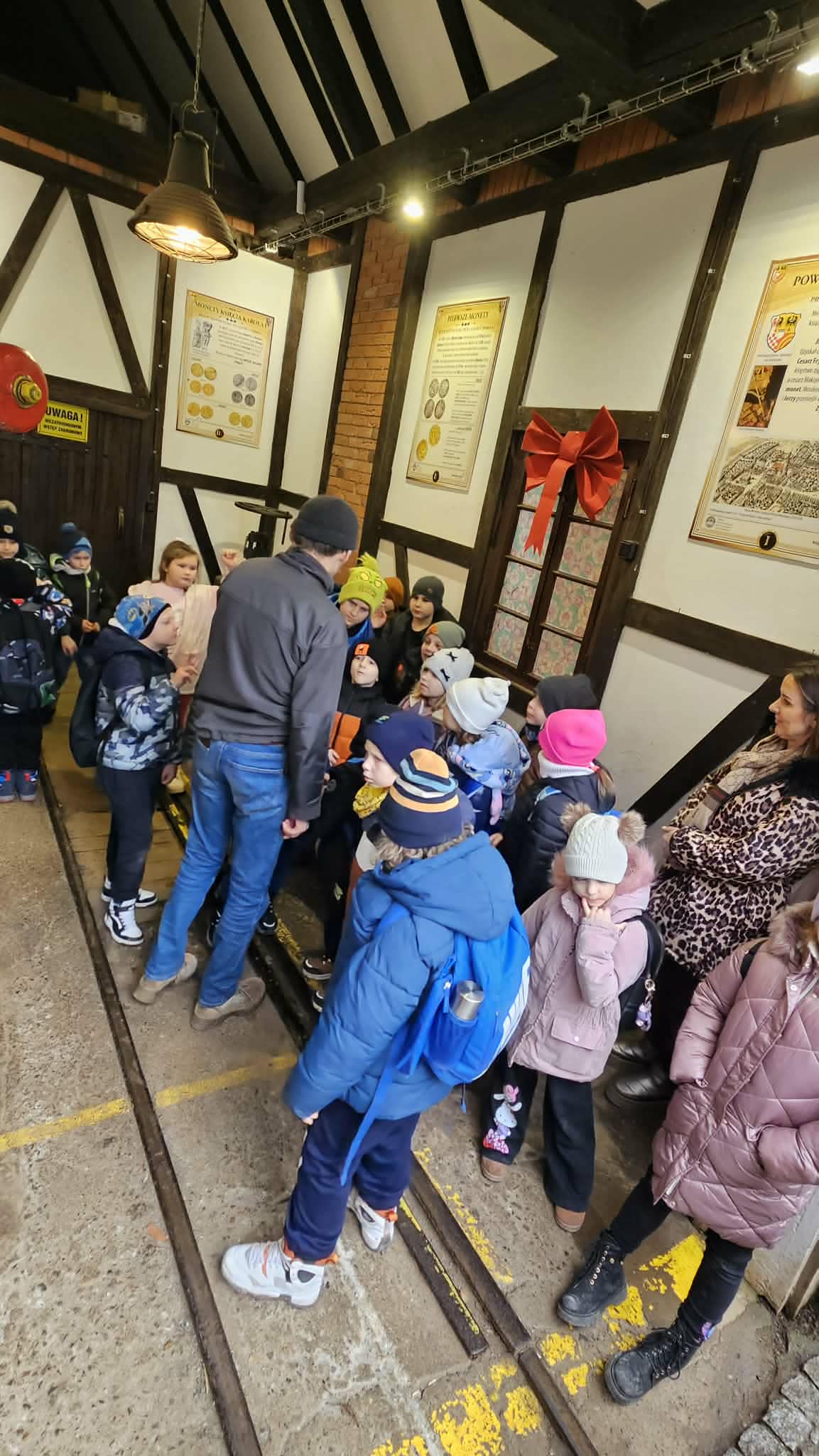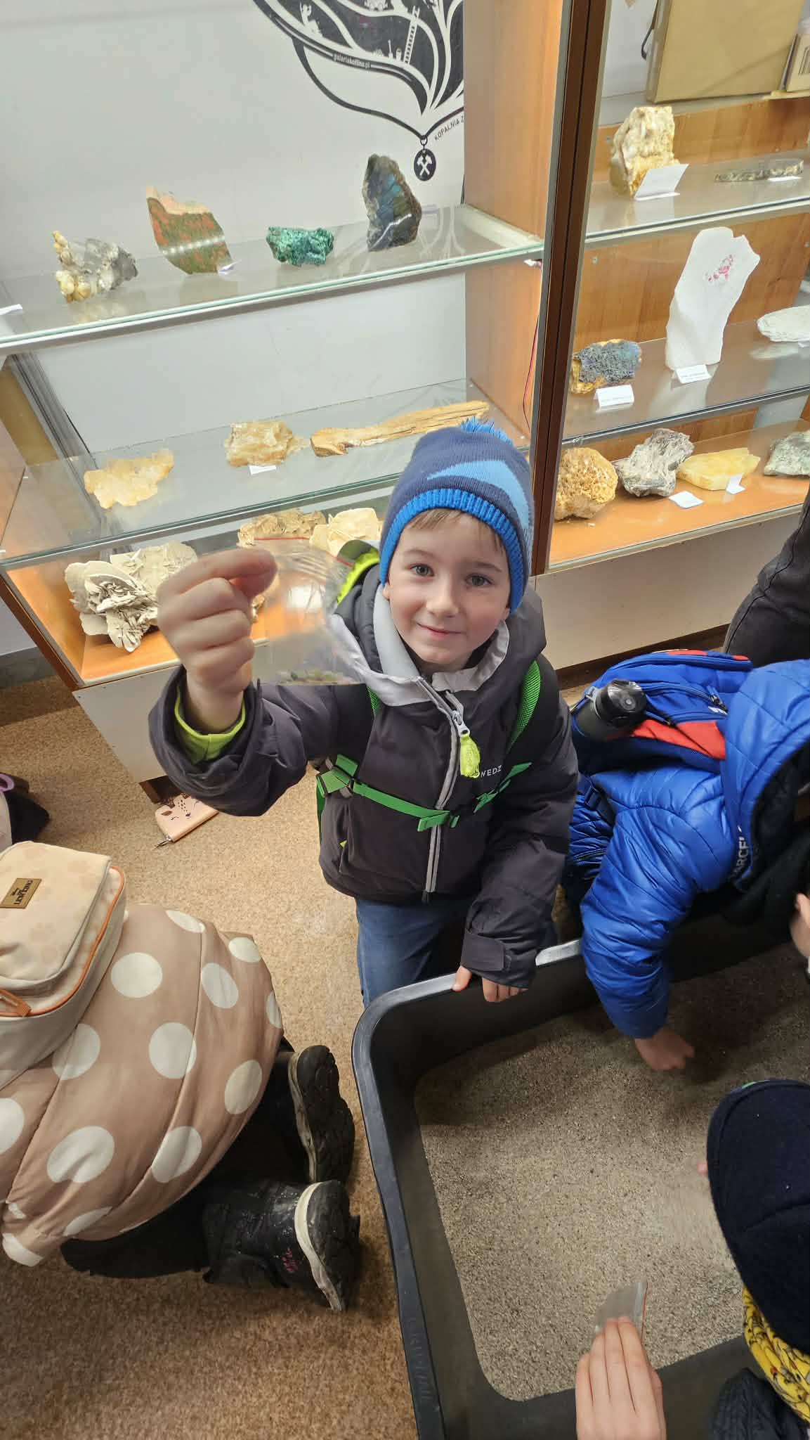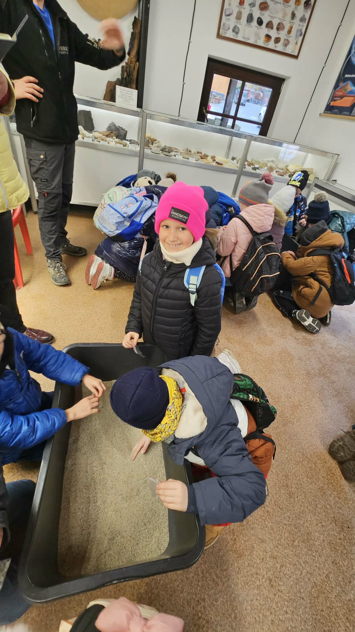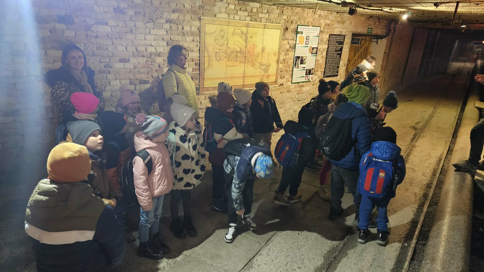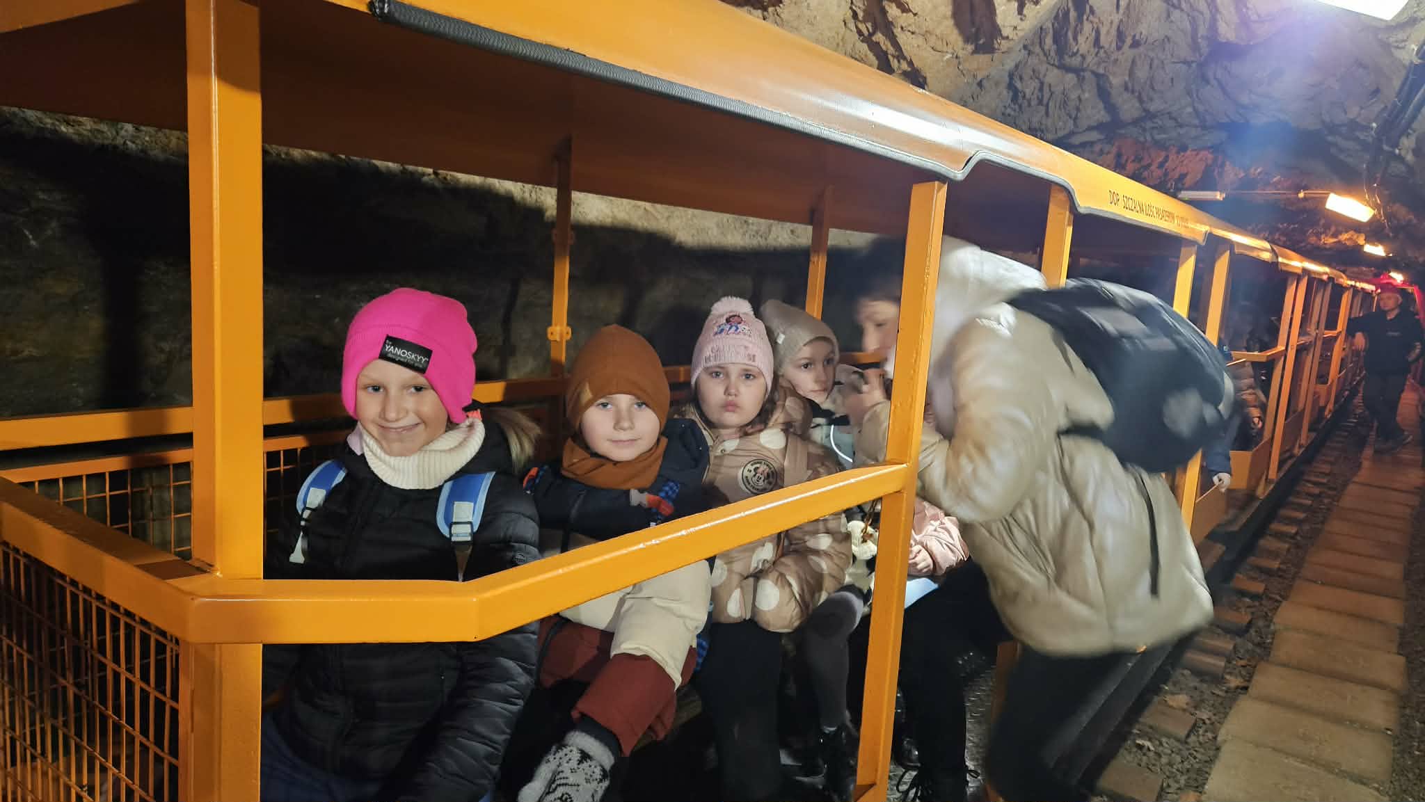 9 grudnia 2025r. wybraliśmy się z klasą 2b na spotkanie z Mikołajem do kopalni złota w Złotym Stoku. Na miejscu oczekiwał na nas bardzo sympatyczny Elf- przewodnik. Zwiedzanie rozpoczęliśmy od Muzeum Minerałów, gdzie dowiedzieliśmy się czym jeździ św.Mikołaj ( narty, sanie) oraz w jakich butach chodzi. Następnie poszłiśmy do kopalni. Było ciemno i wilgotno. Elf opowiadał nam historie związane z kopalnią. Zaskoczyło nas spotkanie z tajemniczą kobietą szukającą swojego męża. Dowiedzieliśmy się jak ciężka jest kostka złota, jak wytwarzano monety ze złotego kruszcu, co robiono z arszeniku i zobaczyliśmy podziemny wodospad. Z kopalni wyjechaliśmy pomarańczową kolejką. Każdy z nas miał okazję poszukać skarbu w skrzyniach z piaskiem. Na koniec poczęstowano nas przepyszną , rozgrzewającą herbatką oraz słodziutkim ciasteczkiem. Pełni wrażeń oraz pamiątek wróciliśmy szczęsliwie do szkoły.