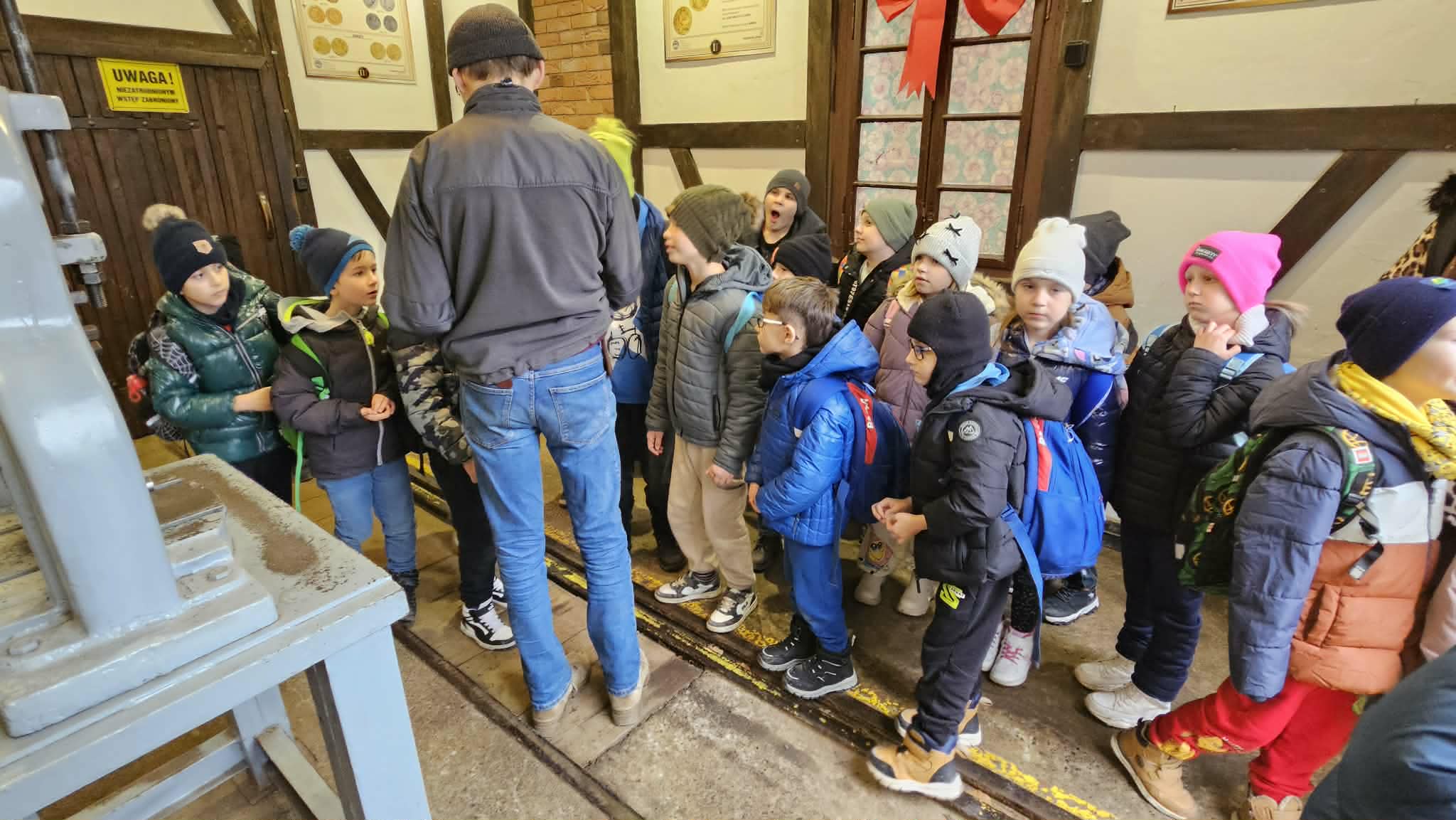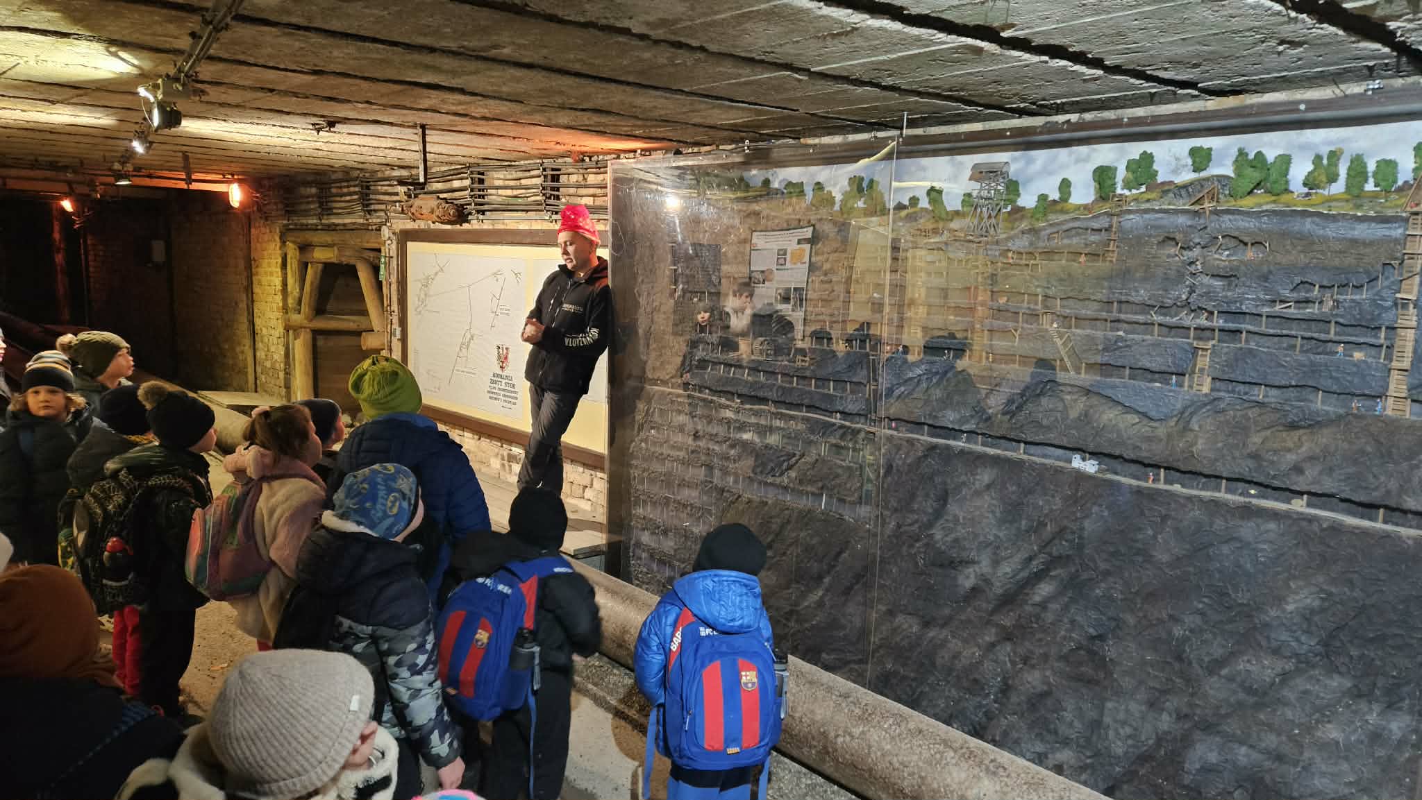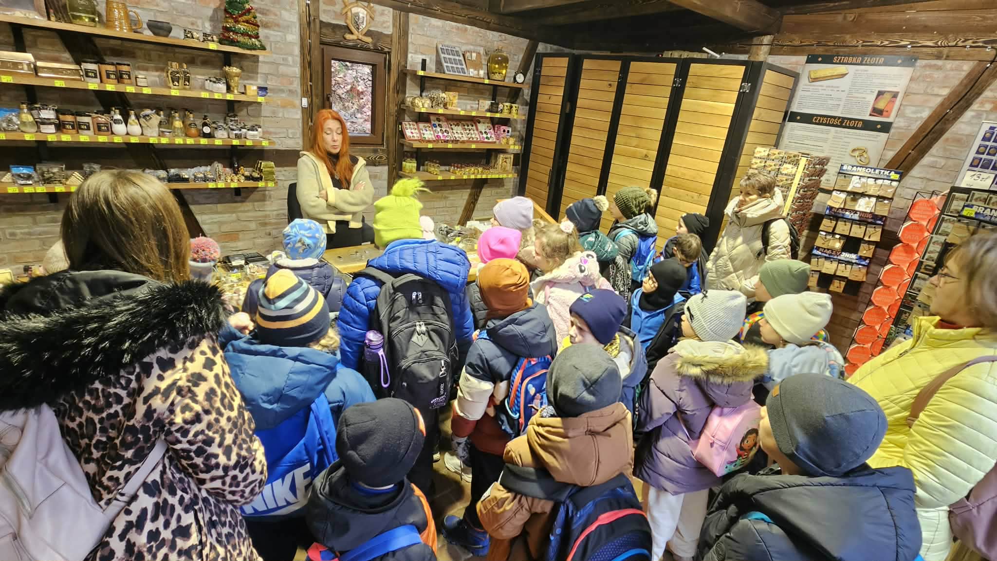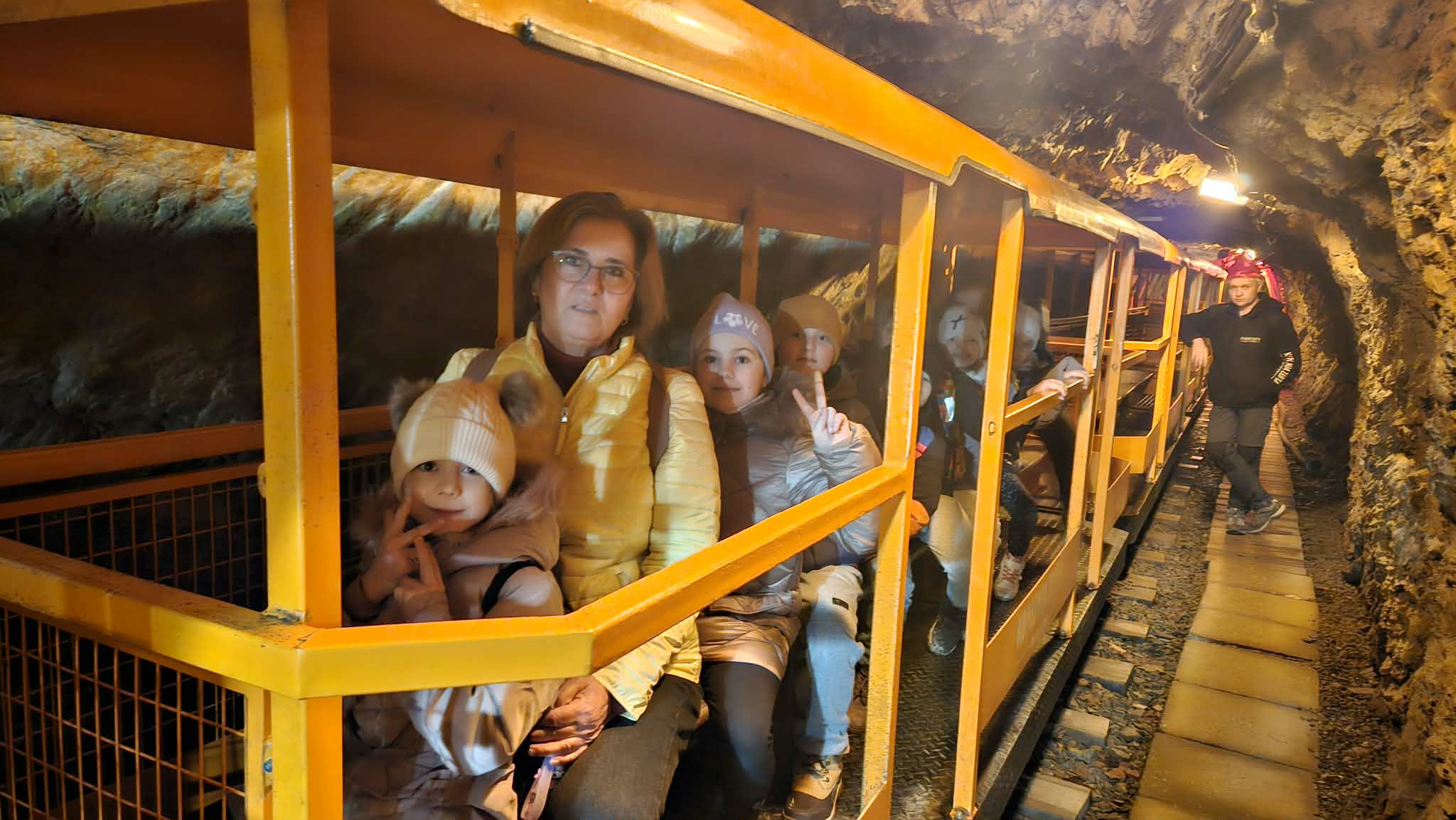 9 grudnia 2025r. wybraliśmy się z klasą 2b na spotkanie z Mikołajem do kopalni złota w Złotym Stoku. Na miejscu oczekiwał na nas bardzo sympatyczny Elf- przewodnik. Zwiedzanie rozpoczęliśmy od Muzeum Minerałów, gdzie dowiedzieliśmy się czym jeździ św.Mikołaj ( narty, sanie) oraz w jakich butach chodzi. Następnie poszłiśmy do kopalni. Było ciemno i wilgotno. Elf opowiadał nam historie związane z kopalnią. Zaskoczyło nas spotkanie z tajemniczą kobietą szukającą swojego męża. Dowiedzieliśmy się jak ciężka jest kostka złota, jak wytwarzano monety ze złotego kruszcu, co robiono z arszeniku i zobaczyliśmy podziemny wodospad. Z kopalni wyjechaliśmy pomarańczową kolejką. Każdy z nas miał okazję poszukać skarbu w skrzyniach z piaskiem. Na koniec poczęstowano nas przepyszną , rozgrzewającą herbatką oraz słodziutkim ciasteczkiem. Pełni wrażeń oraz pamiątek wróciliśmy szczęsliwie do szkoły.