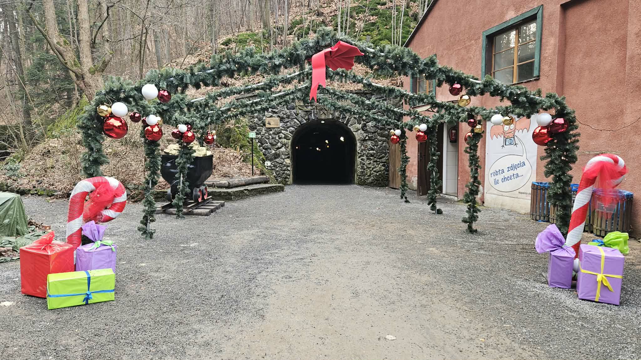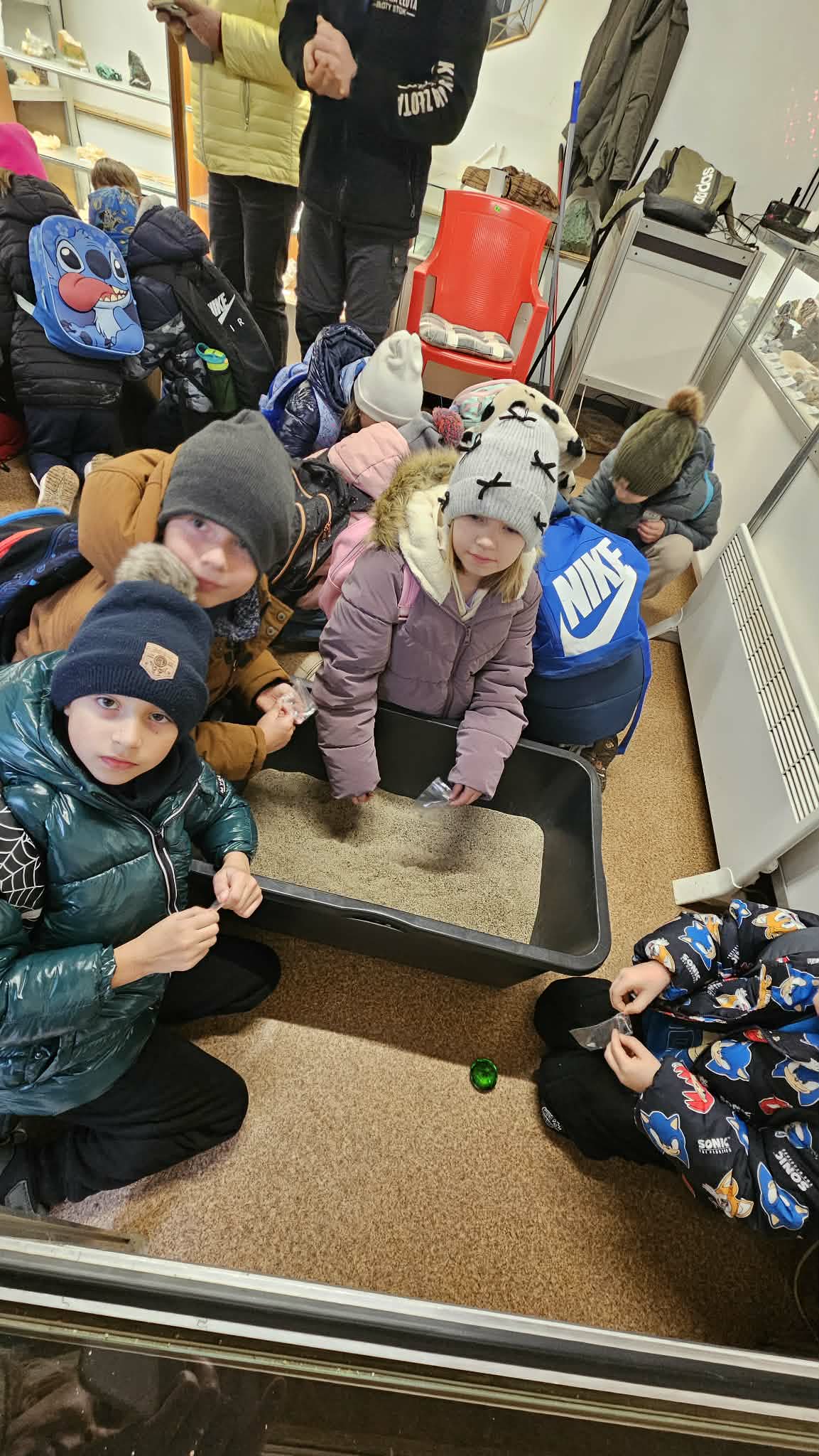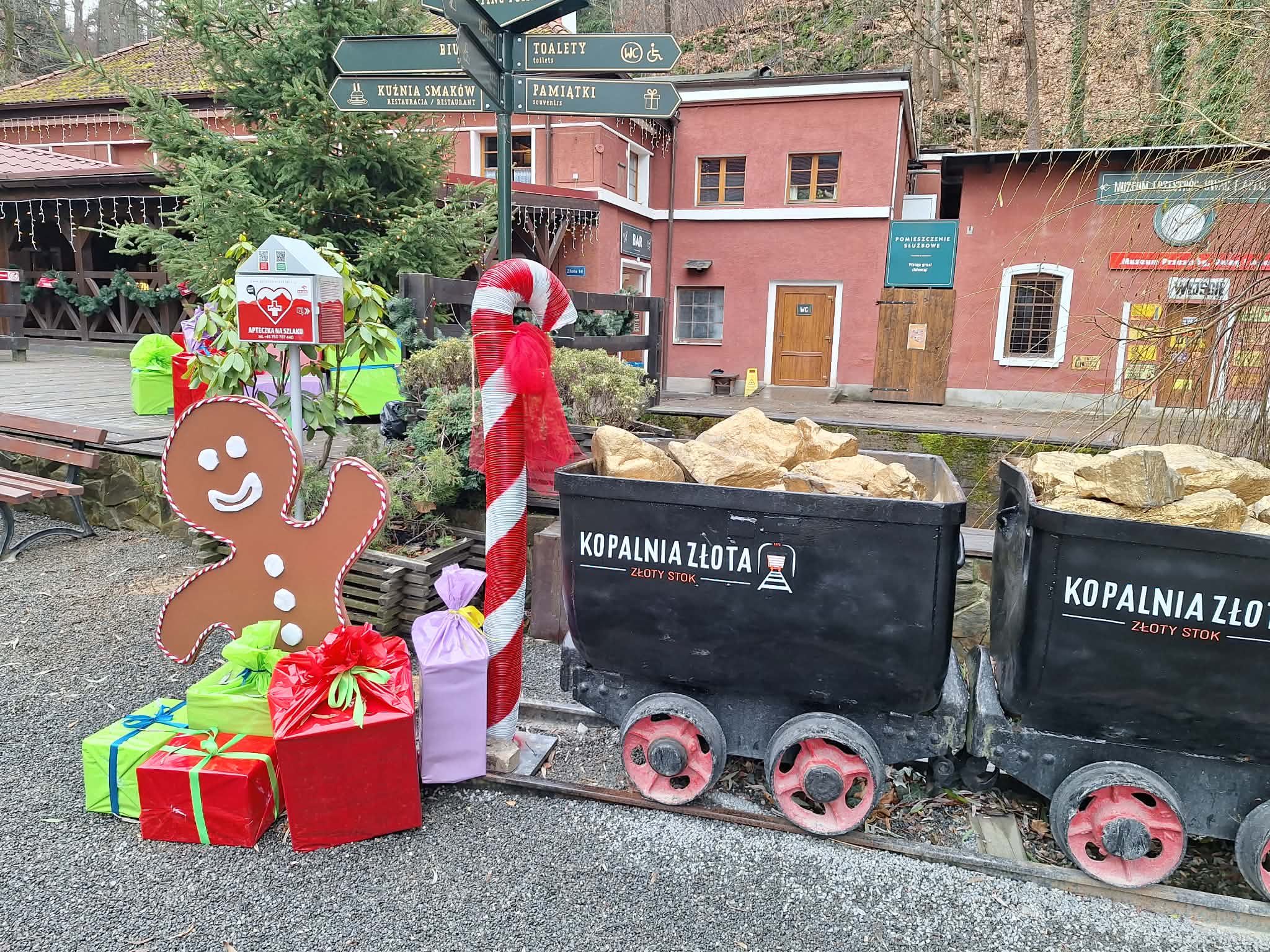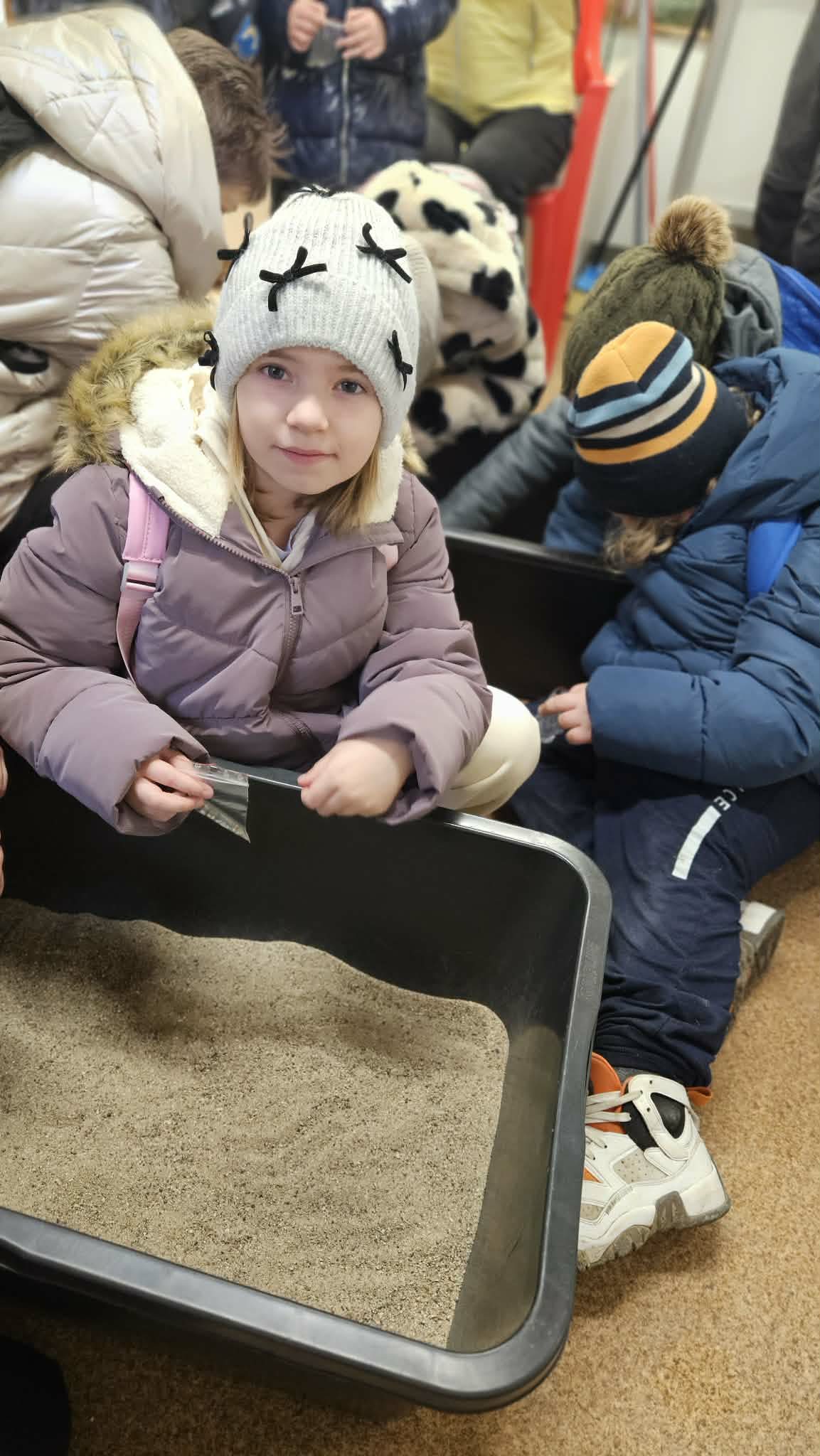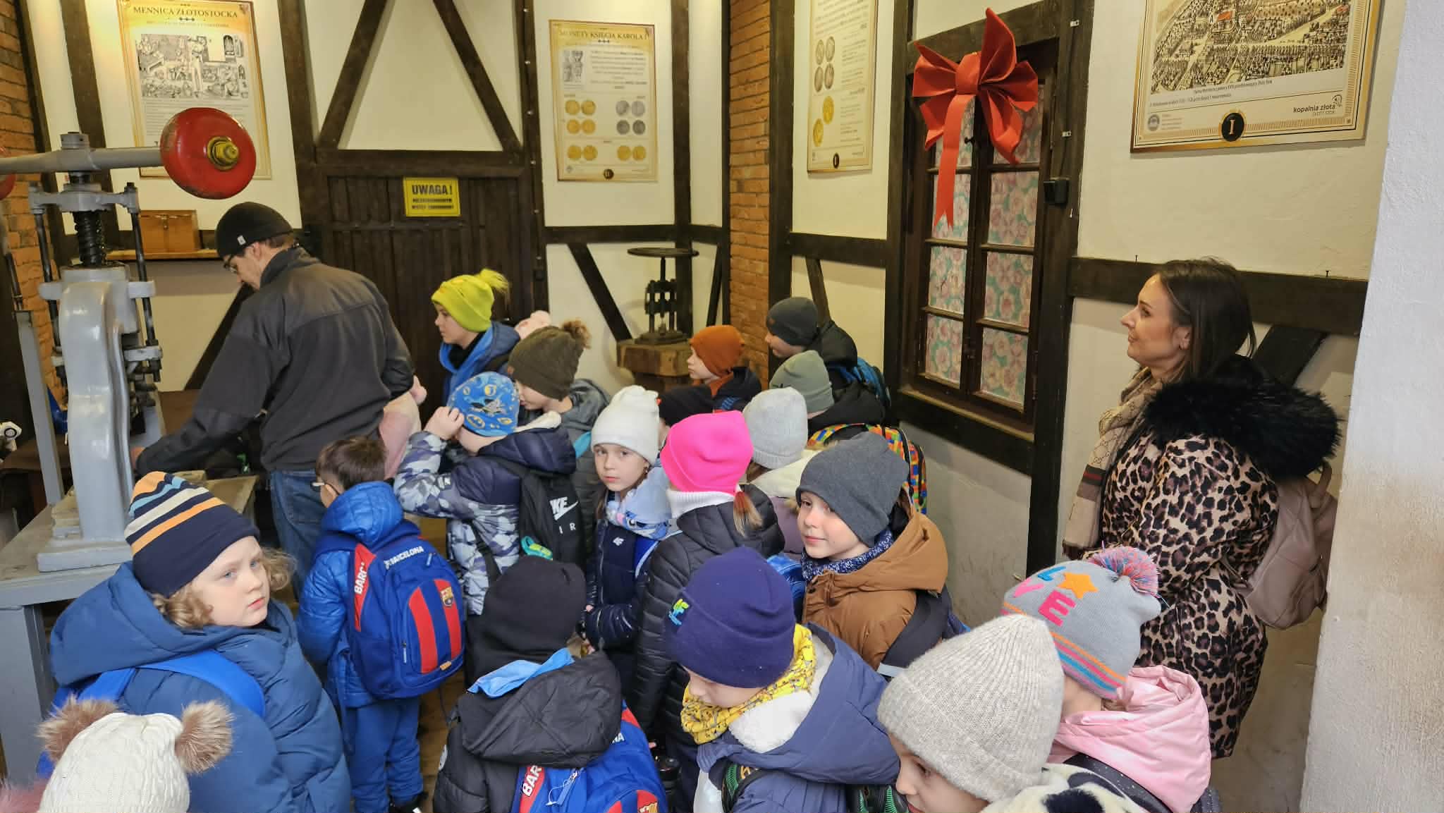 9 grudnia 2025r. wybraliśmy się z klasą 2b na spotkanie z Mikołajem do kopalni złota w Złotym Stoku. Na miejscu oczekiwał na nas bardzo sympatyczny Elf- przewodnik. Zwiedzanie rozpoczęliśmy od Muzeum Minerałów, gdzie dowiedzieliśmy się czym jeździ św.Mikołaj ( narty, sanie) oraz w jakich butach chodzi. Następnie poszłiśmy do kopalni. Było ciemno i wilgotno. Elf opowiadał nam historie związane z kopalnią. Zaskoczyło nas spotkanie z tajemniczą kobietą szukającą swojego męża. Dowiedzieliśmy się jak ciężka jest kostka złota, jak wytwarzano monety ze złotego kruszcu, co robiono z arszeniku i zobaczyliśmy podziemny wodospad. Z kopalni wyjechaliśmy pomarańczową kolejką. Każdy z nas miał okazję poszukać skarbu w skrzyniach z piaskiem. Na koniec poczęstowano nas przepyszną , rozgrzewającą herbatką oraz słodziutkim ciasteczkiem. Pełni wrażeń oraz pamiątek wróciliśmy szczęsliwie do szkoły.