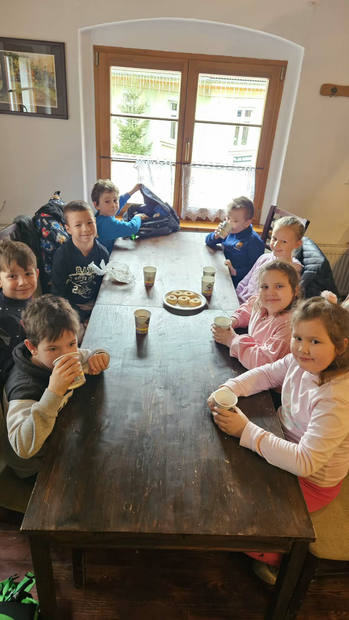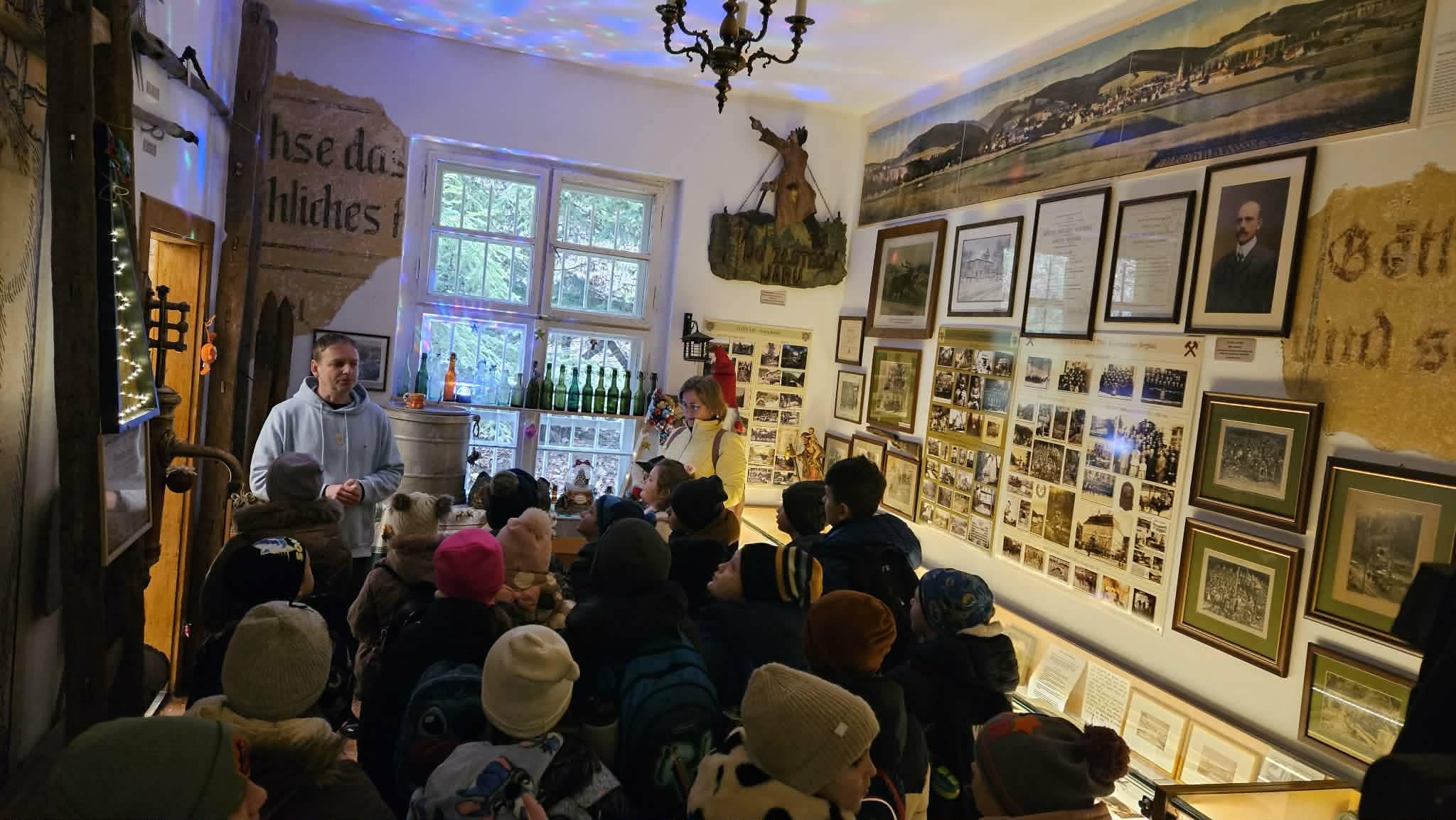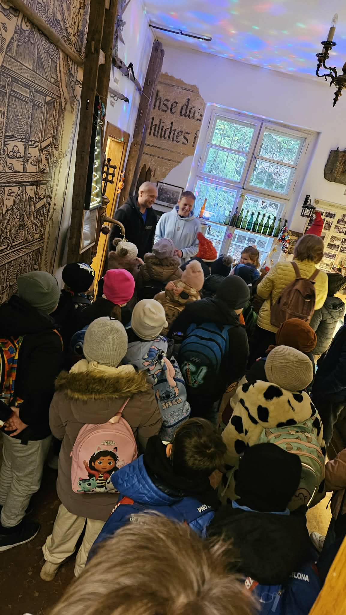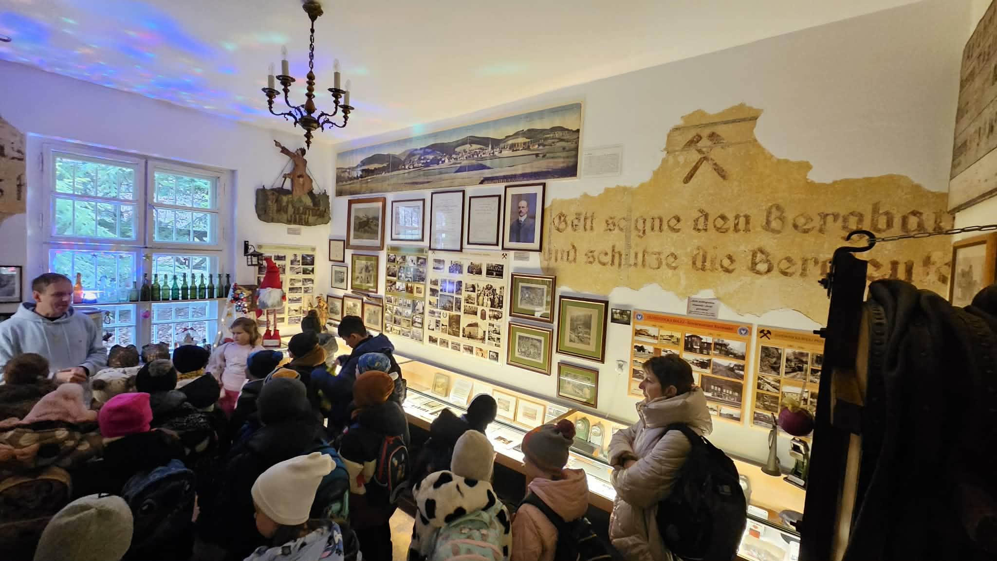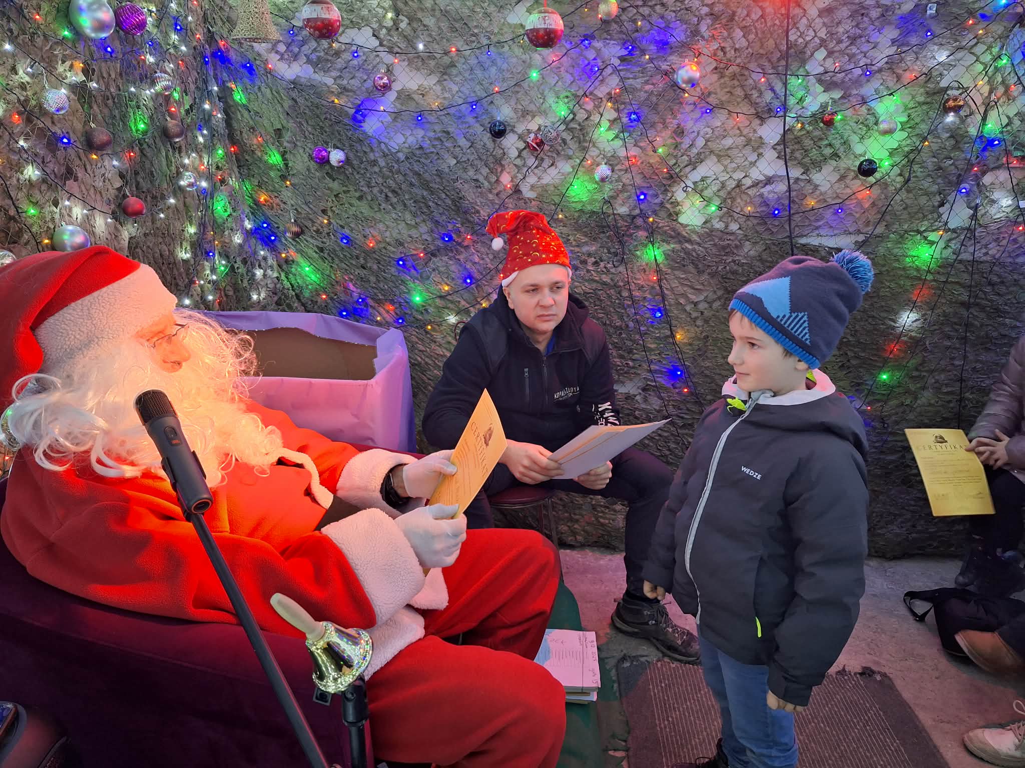9 grudnia 2025r. wybraliśmy się z klasą 2b na spotkanie z Mikołajem do kopalni złota w Złotym Stoku. Na miejscu oczekiwał na nas bardzo sympatyczny Elf- przewodnik. Zwiedzanie rozpoczęliśmy od Muzeum Minerałów, gdzie dowiedzieliśmy się czym jeździ św.Mikołaj ( narty, sanie) oraz w jakich butach chodzi. Następnie poszłiśmy do kopalni. Było ciemno i wilgotno. Elf opowiadał nam historie związane z kopalnią. Zaskoczyło nas spotkanie z tajemniczą kobietą szukającą swojego męża. Dowiedzieliśmy się jak ciężka jest kostka złota, jak wytwarzano monety ze złotego kruszcu, co robiono z arszeniku i zobaczyliśmy podziemny wodospad. Z kopalni wyjechaliśmy pomarańczową kolejką. Każdy z nas miał okazję poszukać skarbu w skrzyniach z piaskiem. Na koniec poczęstowano nas przepyszną , rozgrzewającą herbatką oraz słodziutkim ciasteczkiem. Pełni wrażeń oraz pamiątek wróciliśmy szczęsliwie do szkoły.