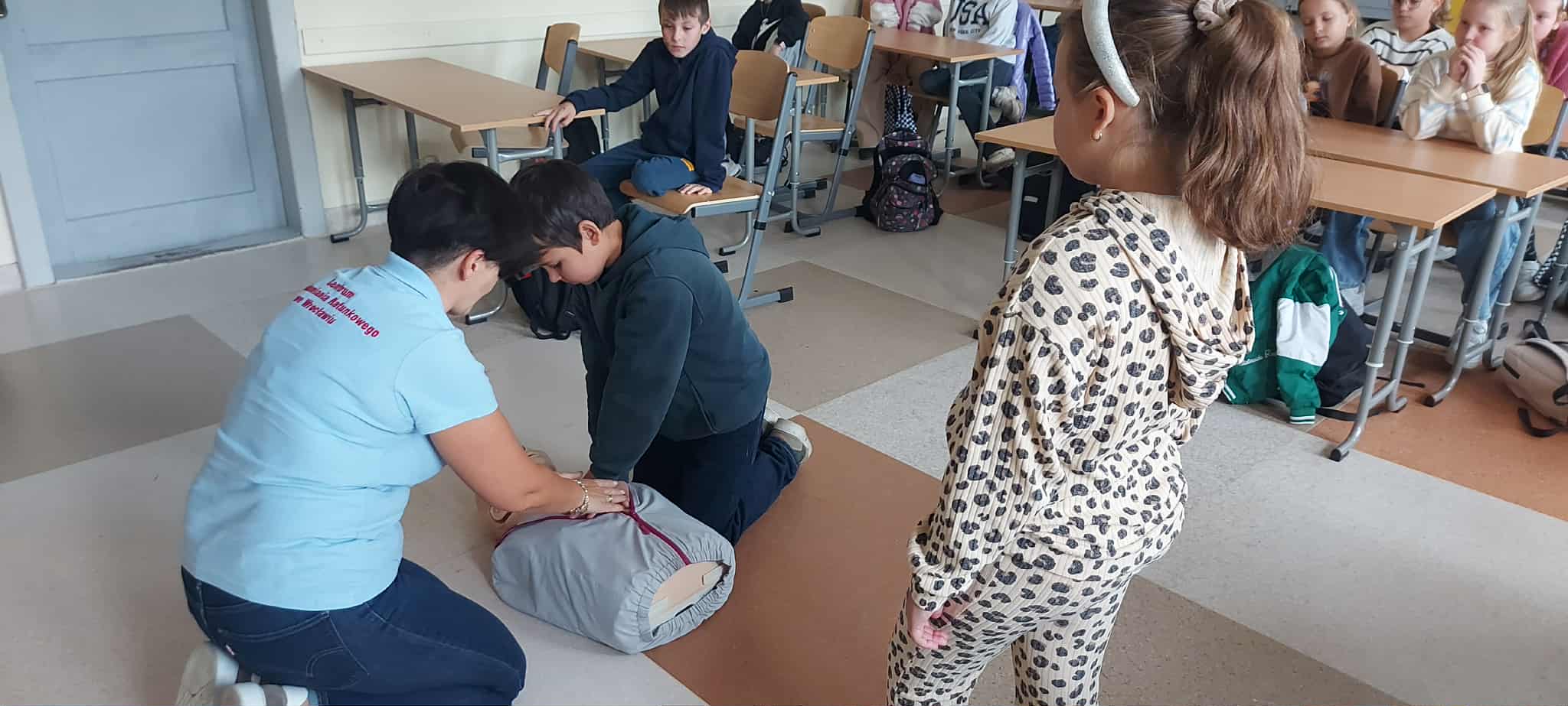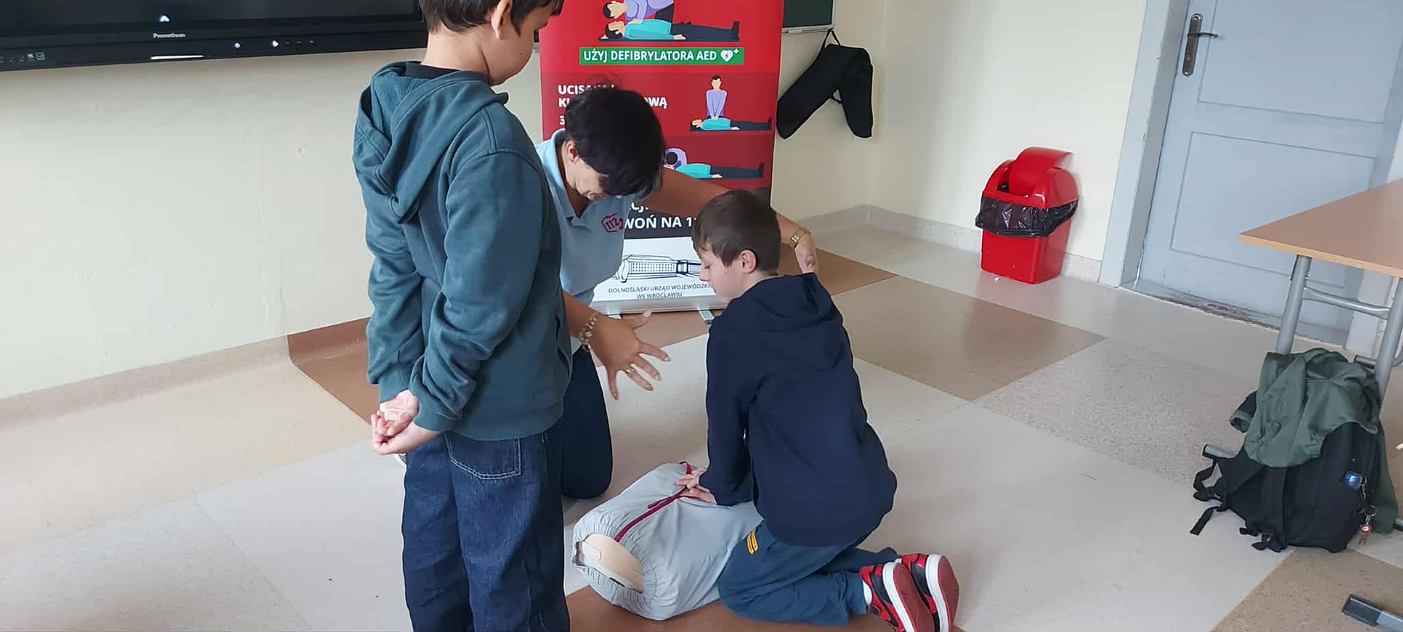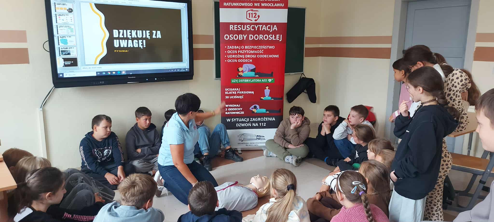 W poniedziałek, 29 września, uczniowie klas 4  wzięli udział w niezwykle pouczającym spotkaniu. Naszymi gośćmi byli przedstawiciele Centrum Powiadamiania Ratunkowego we Wrocławiu. Podczas prelekcji dzieci dowiedziały się, jak prawidłowo i odpowiedzialnie korzystać z numeru alarmowego 112 oraz jakich informacji nie może zabraknąć w rozmowie z dyspozytorem. Najważniejszą częścią spotkania była jednak nauka udzielania pierwszej pomocy. Uczniowie, korzystając ze specjalistycznego fantomu, mogli przećwiczyć podstawowe zabiegi resuscytacji krążeniowo-oddechowej. Zdobyta wiedza i praktyczne umiejętności to cenna lekcja, która z pewnością podniosła świadomość uczniów na temat bezpieczeństwa i szybkiego reagowania w sytuacjach kryzysowych.