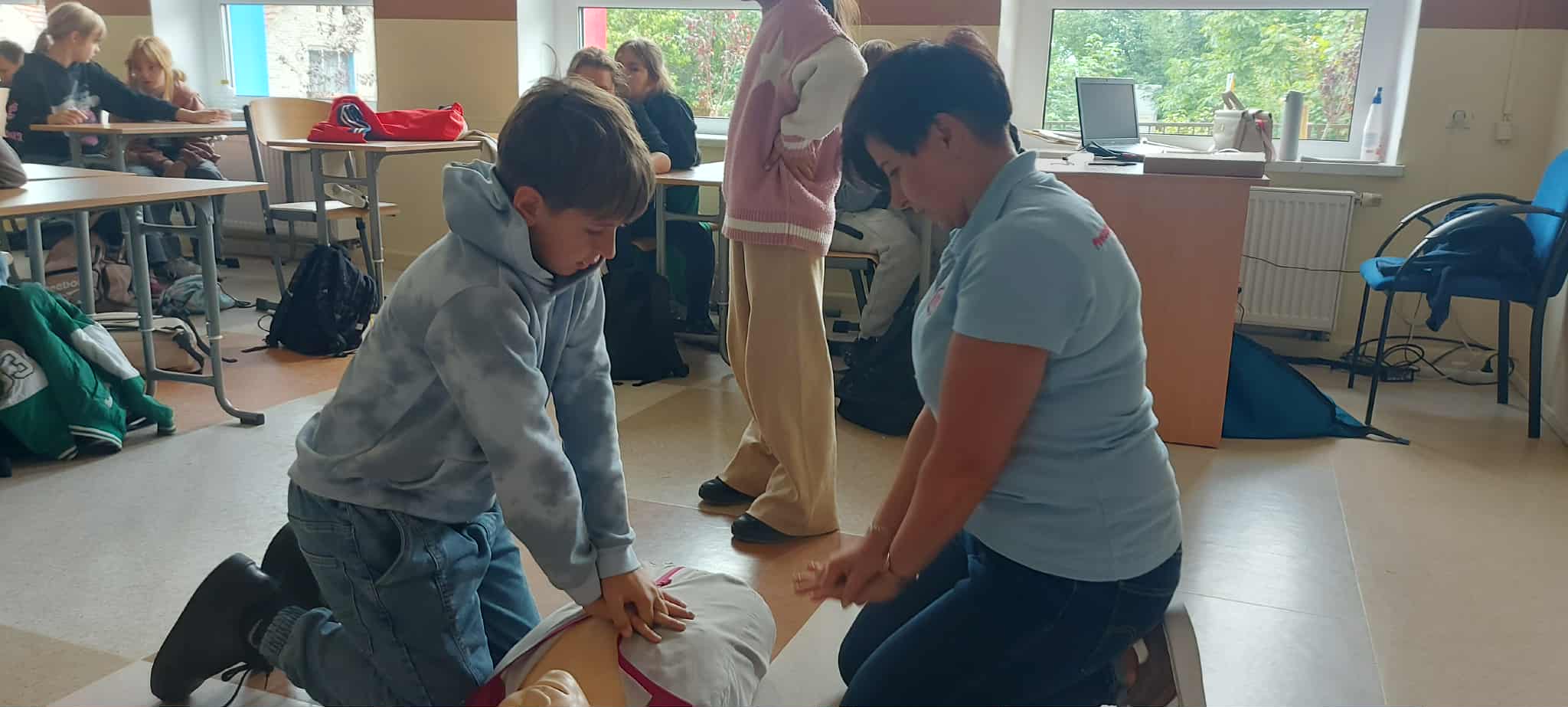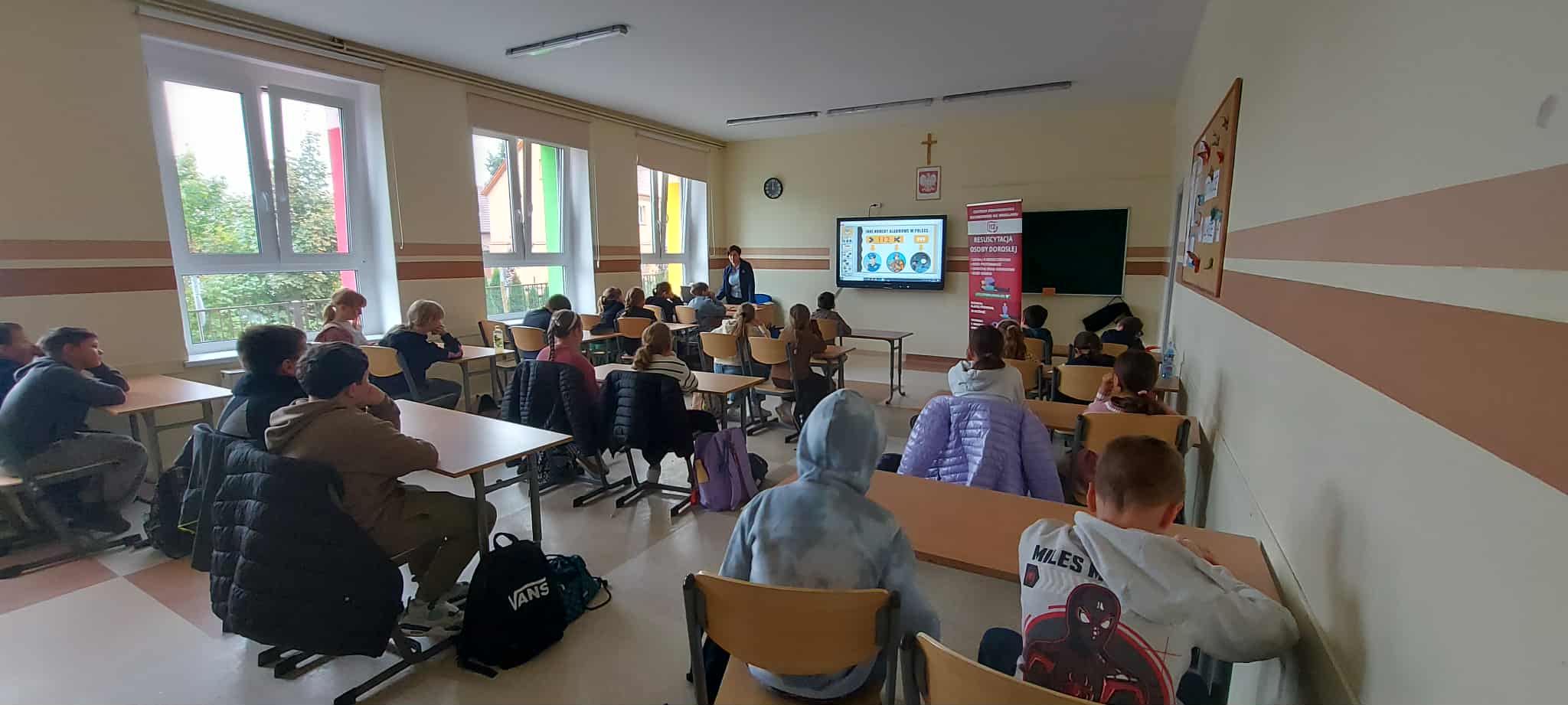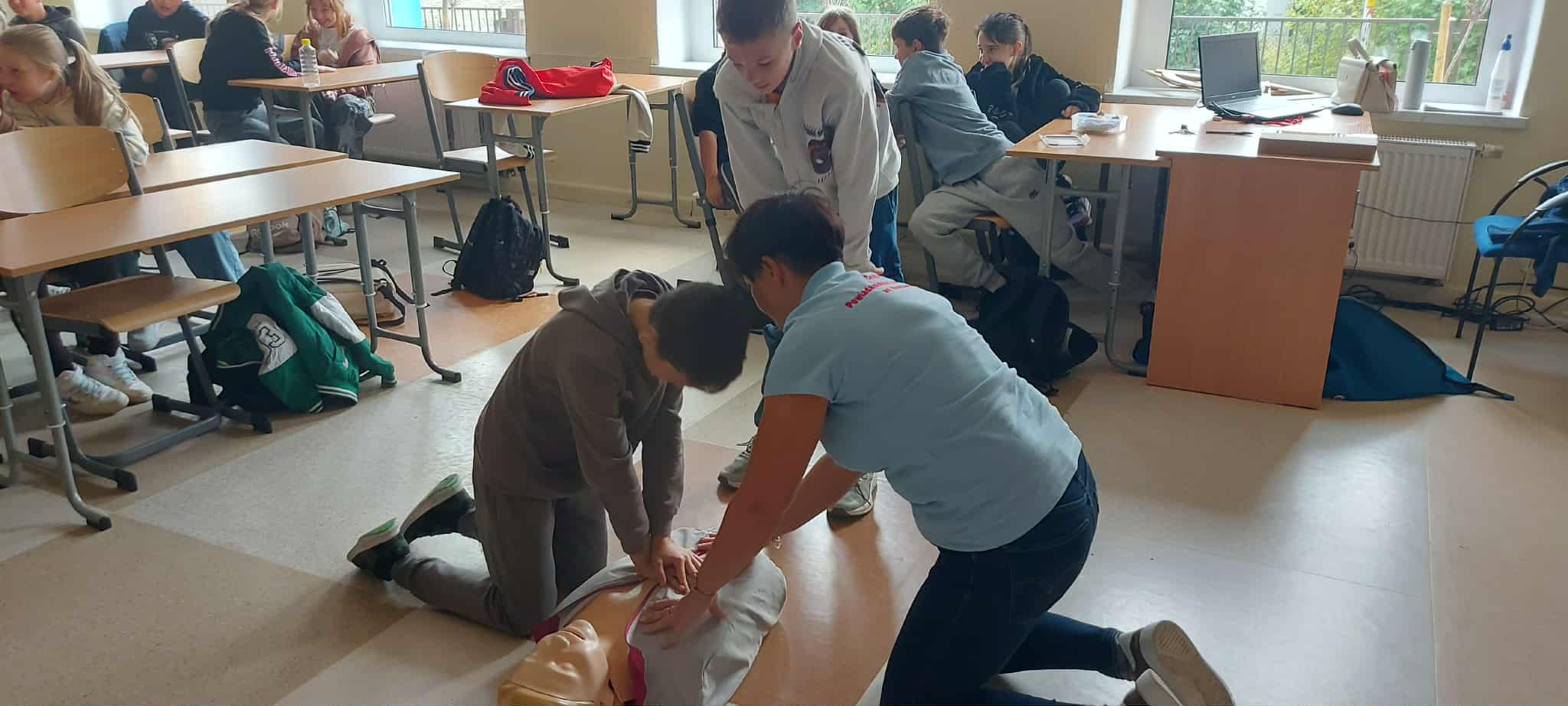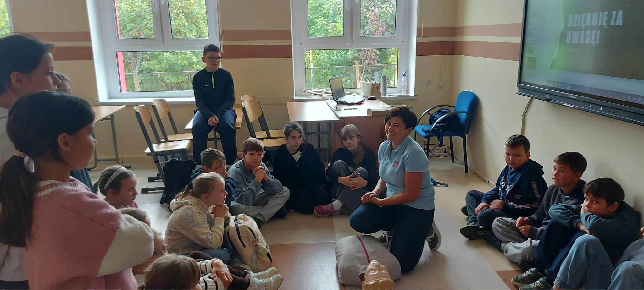 W poniedziałek, 29 września, uczniowie klas 4  wzięli udział w niezwykle pouczającym spotkaniu. Naszymi gośćmi byli przedstawiciele Centrum Powiadamiania Ratunkowego we Wrocławiu. Podczas prelekcji dzieci dowiedziały się, jak prawidłowo i odpowiedzialnie korzystać z numeru alarmowego 112 oraz jakich informacji nie może zabraknąć w rozmowie z dyspozytorem. Najważniejszą częścią spotkania była jednak nauka udzielania pierwszej pomocy. Uczniowie, korzystając ze specjalistycznego fantomu, mogli przećwiczyć podstawowe zabiegi resuscytacji krążeniowo-oddechowej. Zdobyta wiedza i praktyczne umiejętności to cenna lekcja, która z pewnością podniosła świadomość uczniów na temat bezpieczeństwa i szybkiego reagowania w sytuacjach kryzysowych.