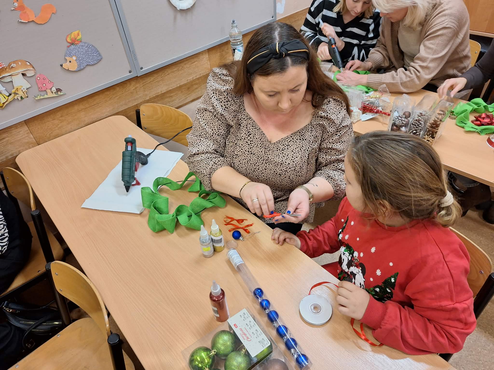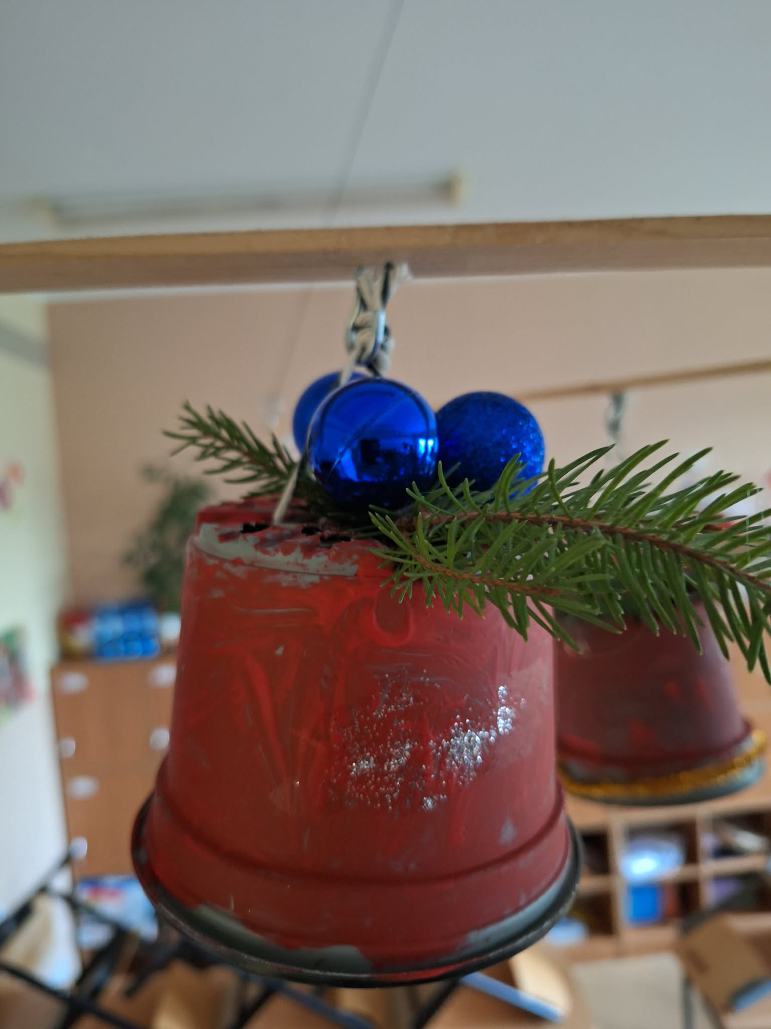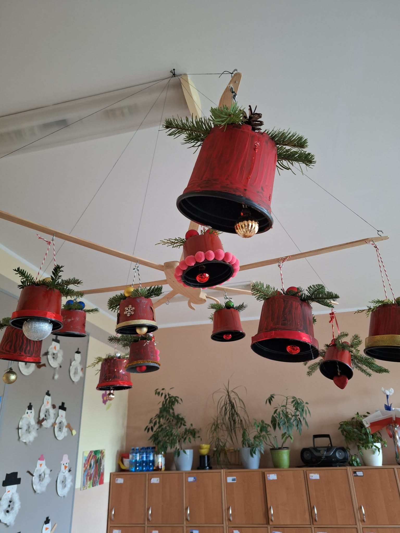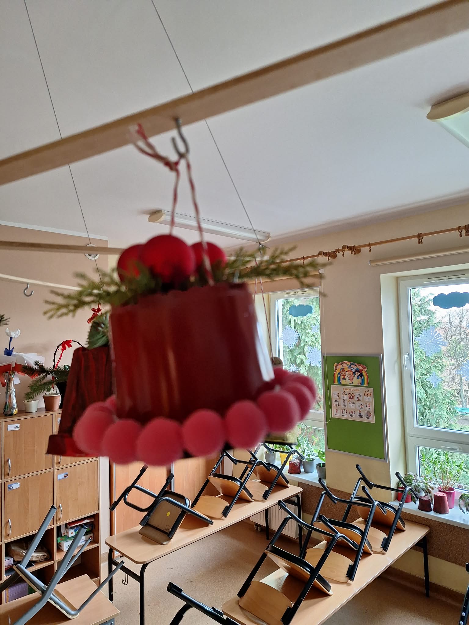 Świąteczny klimat w naszej klasie zagościł.  Płatki śniegowe ( co prawda papierowe) na oknach, dzwonki  własnorecznie robione świadczą o tym, że już niedługo święta. Podczas spotkania z rodzicami wspólnie tworzone były wianki na drzwi. Wszystko wyszło pieknie. Zapraszamy do nas.