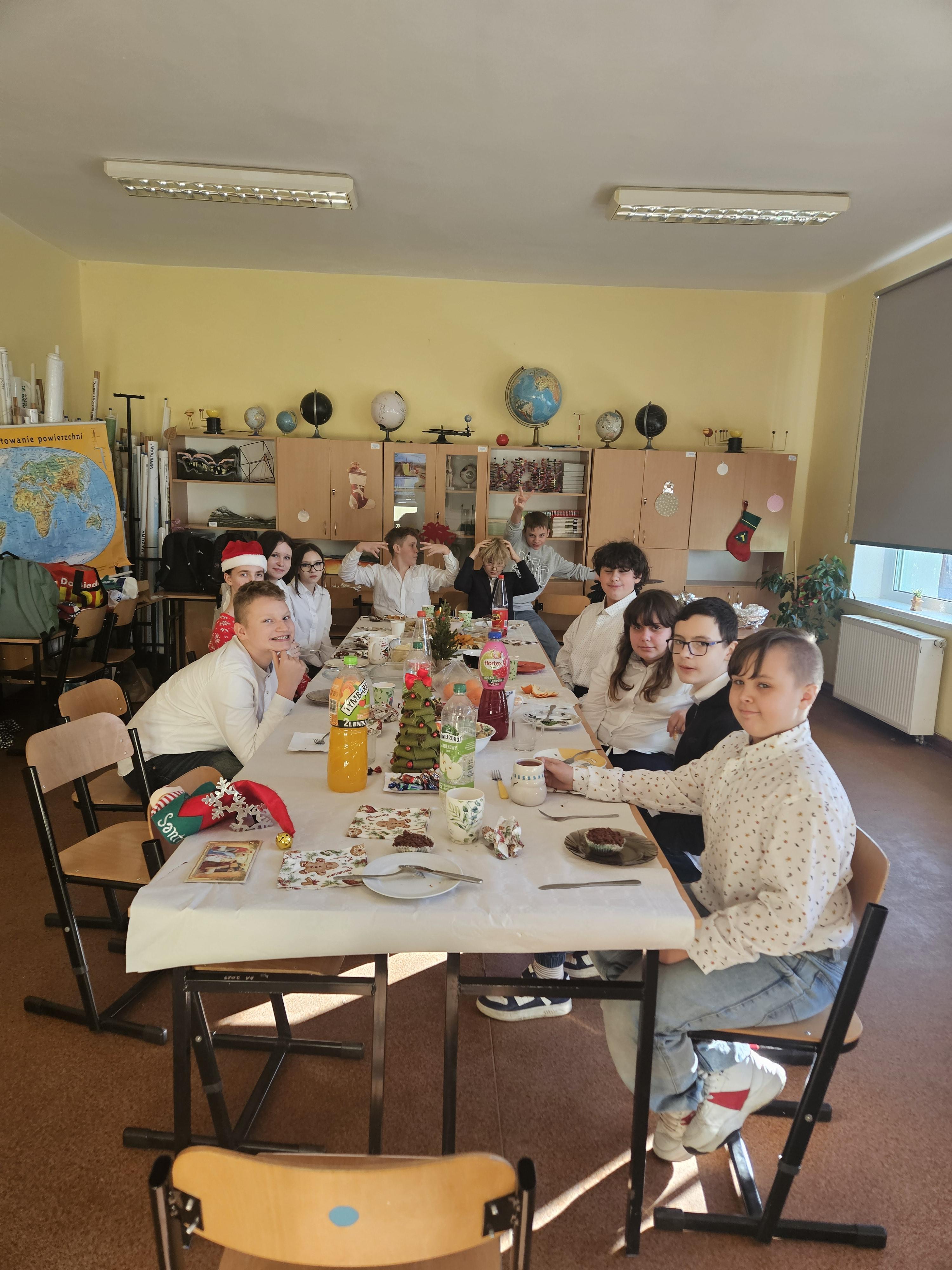 19 grudnia po raz czwarty wspólnie zasiedliśmy do świątecznego stołu.  Rodzice aktywnie włączyli się w przygotowanie wigilijnych potraw, za co serdecznie im dziękujemy, zwłaszcza tym, którzy z wielkim poświęceniem osobiście dostarczyli je do klasy. Spotkaniu towarzyszył dobry nastrój,  radość  i duma, że potrafimy już samodzielnie i pięknie przygotować tę wyjątkową uroczystość,  zaczynając od wystroju klasy, ustawieniu,  nakryciu i dekoracji stołu, przez celebrowanie, składanie życzeń, na uporządkowaniu  kończąc.