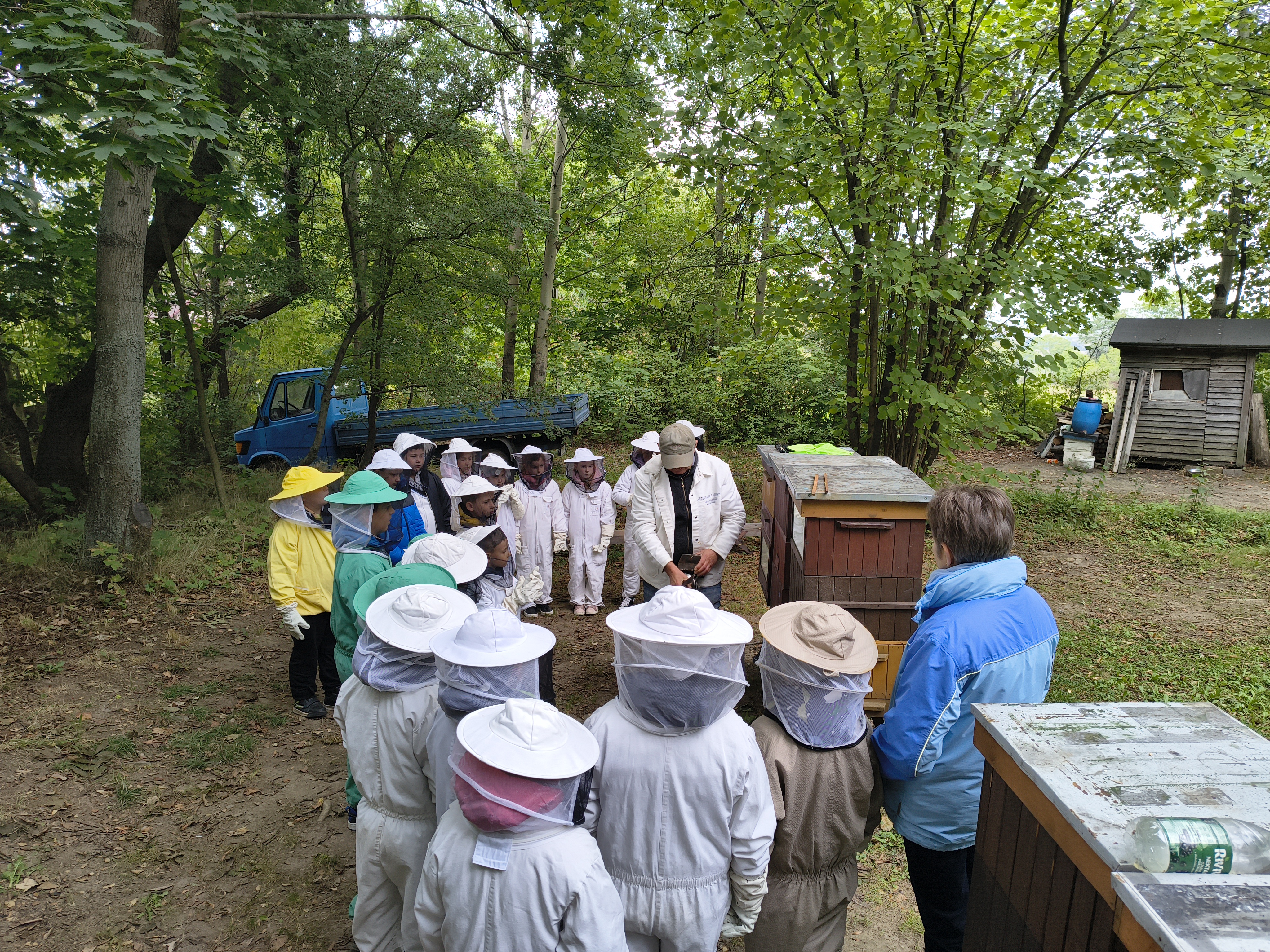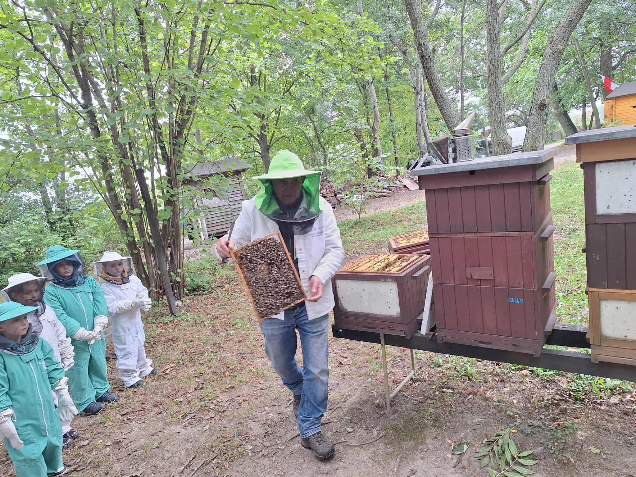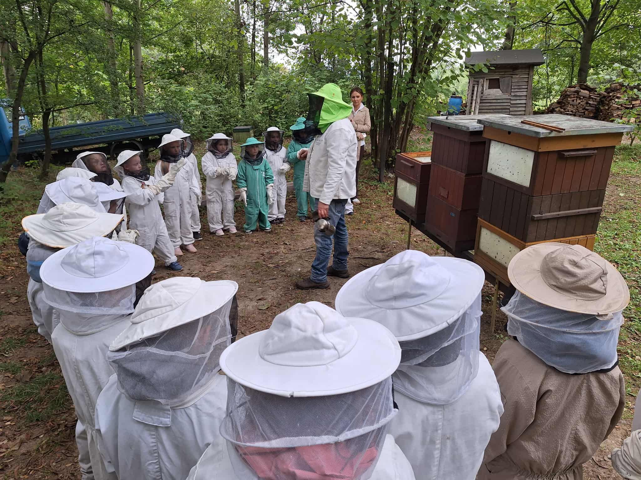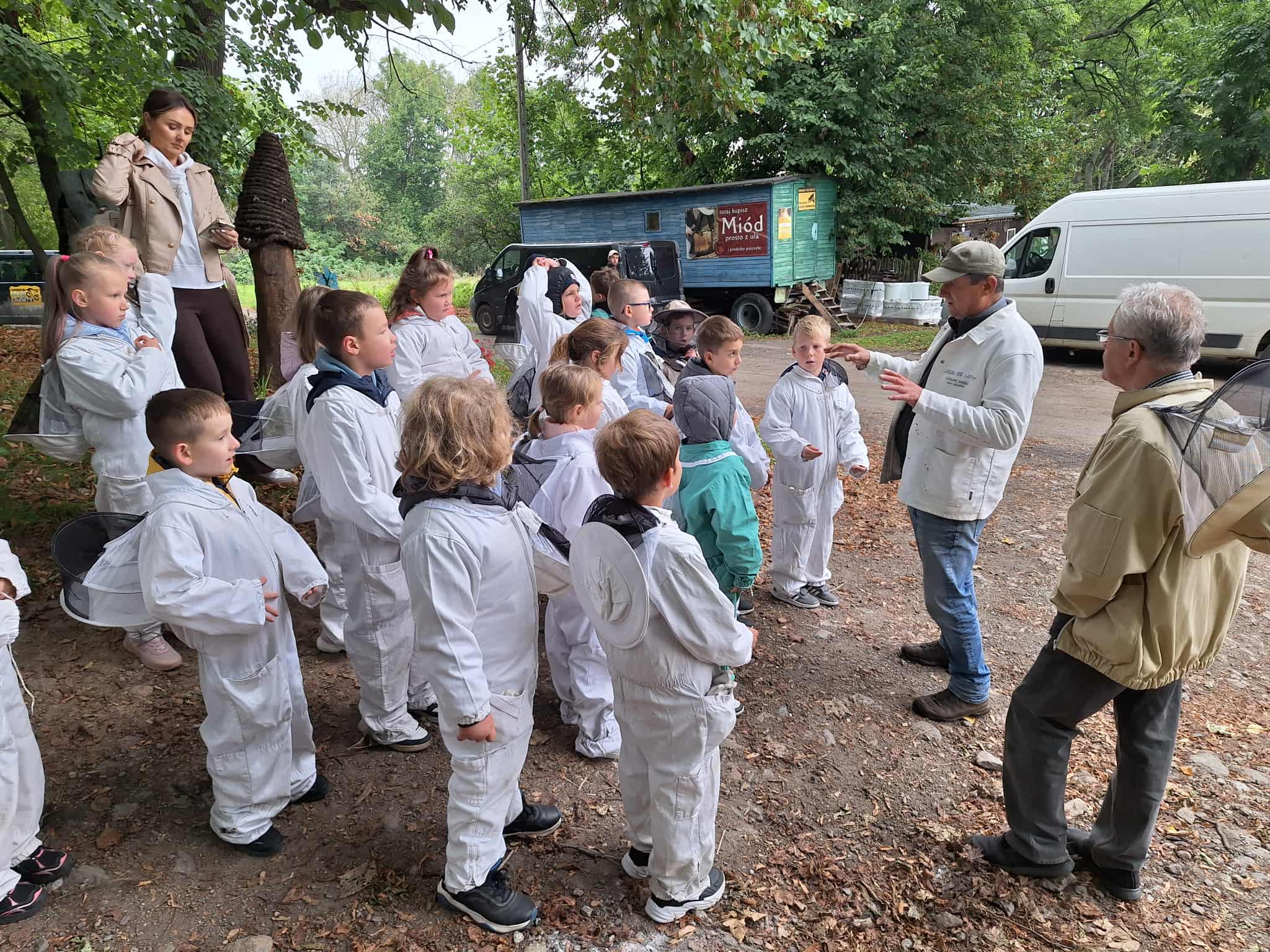 W dalszej części wycieczki uczniowie udali się przez las do pasieki. Tam wysłuchali prelekcji mistrza pszczelarstwa, który opowiedział o pracy pszczół i sposobach opieki nad ulami. Mieli również możliwość obejrzenia prawdziwych uli oraz poznania darów, jakie człowiek otrzymuje dzięki pszczołom.