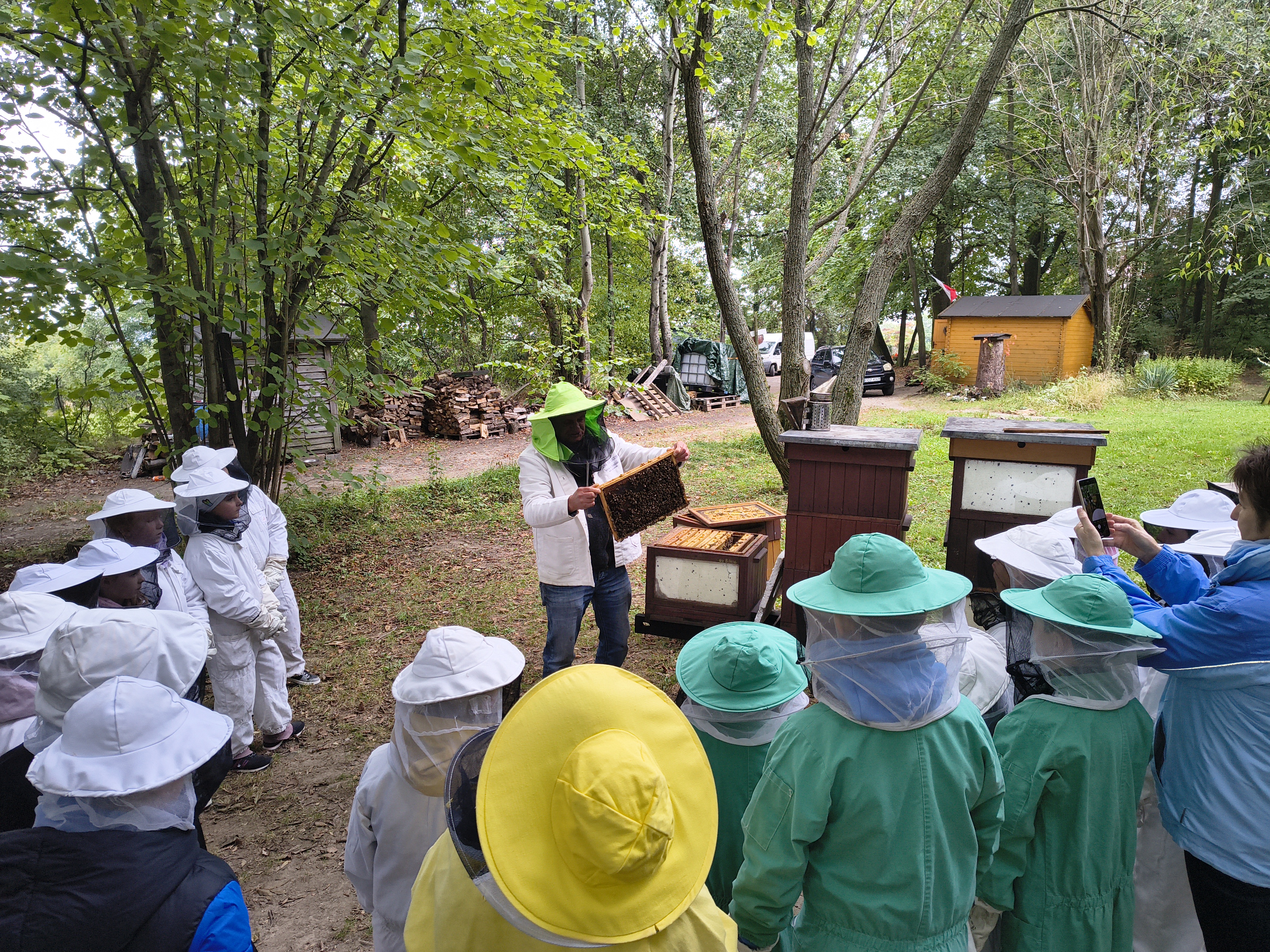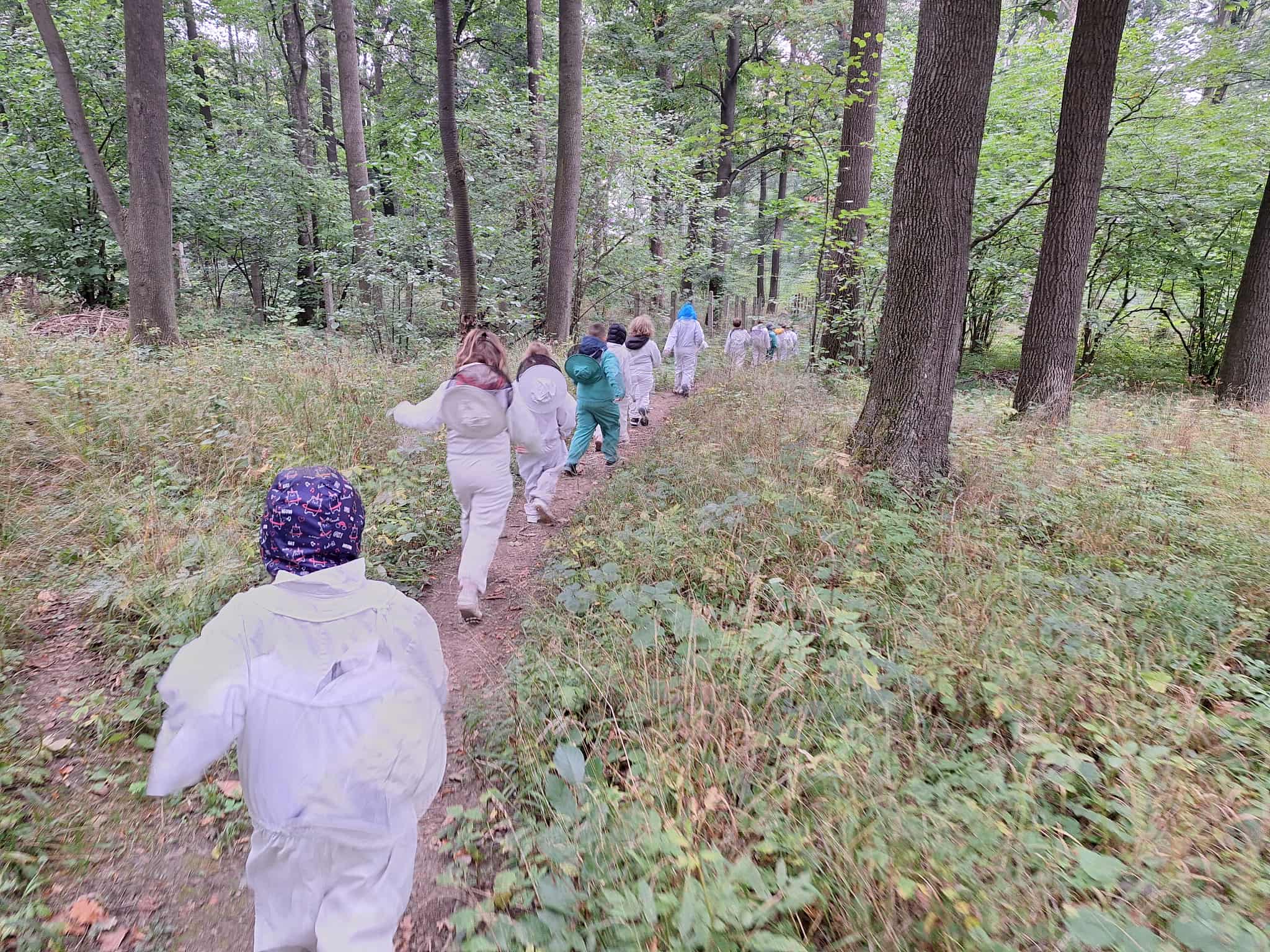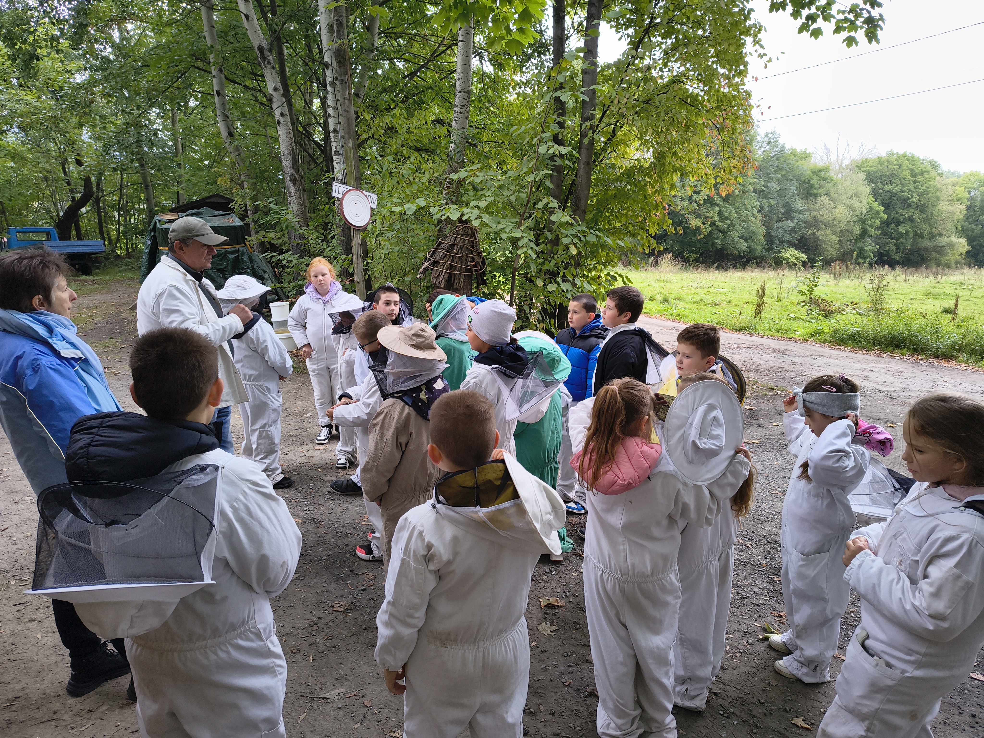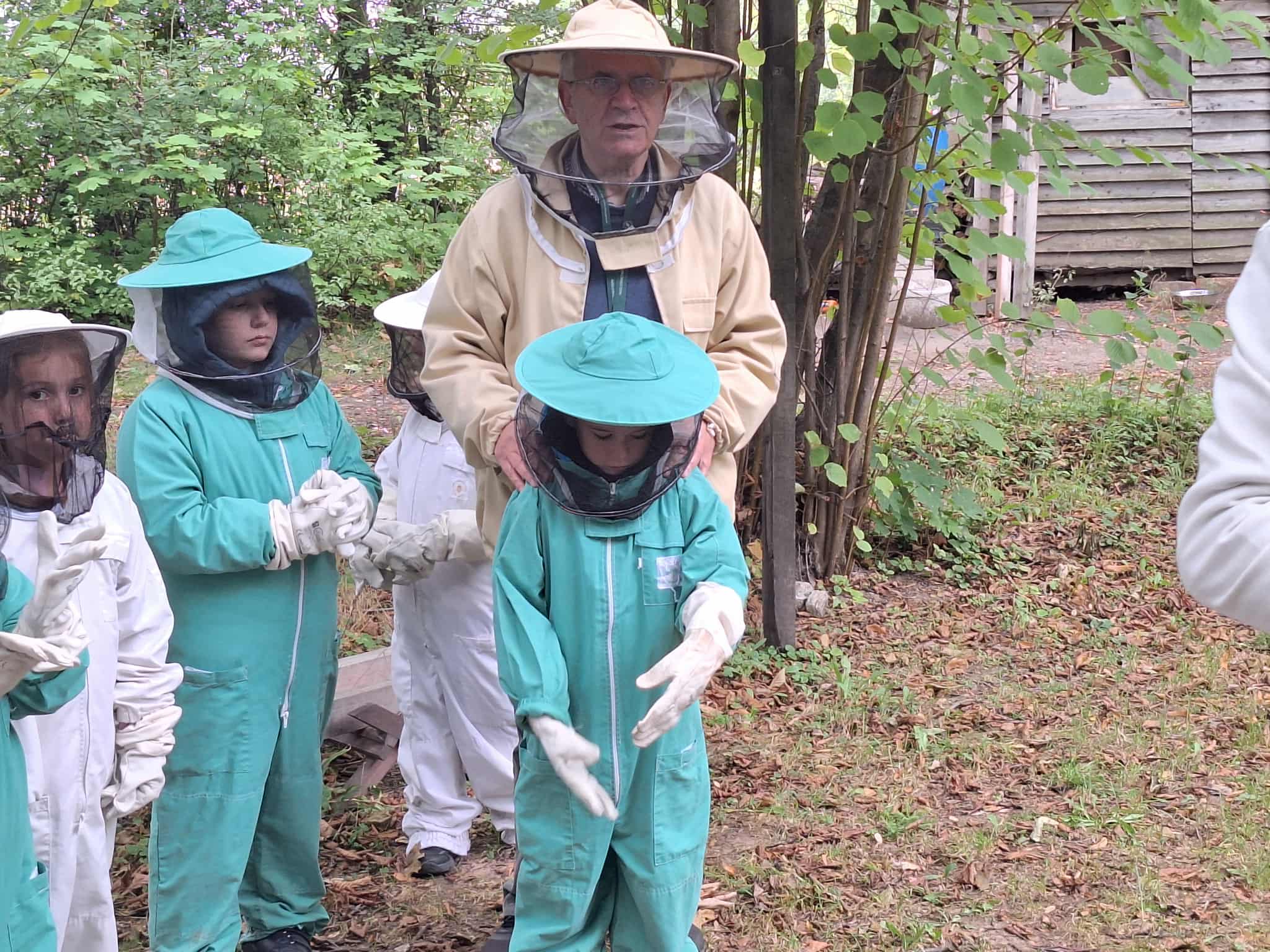 W dalszej części wycieczki uczniowie udali się przez las do pasieki. Tam wysłuchali prelekcji mistrza pszczelarstwa, który opowiedział o pracy pszczół i sposobach opieki nad ulami. Mieli również możliwość obejrzenia prawdziwych uli oraz poznania darów, jakie człowiek otrzymuje dzięki pszczołom.