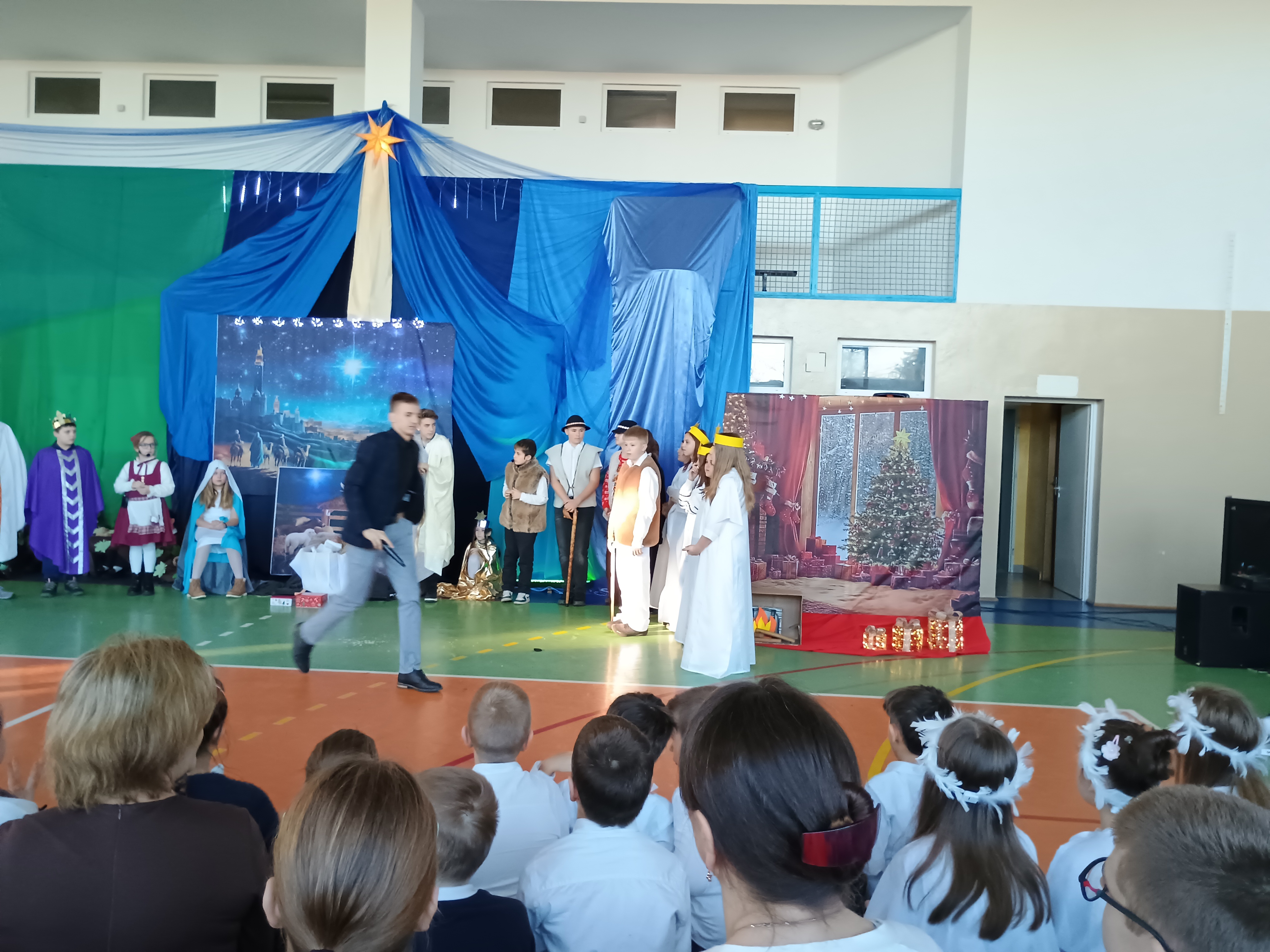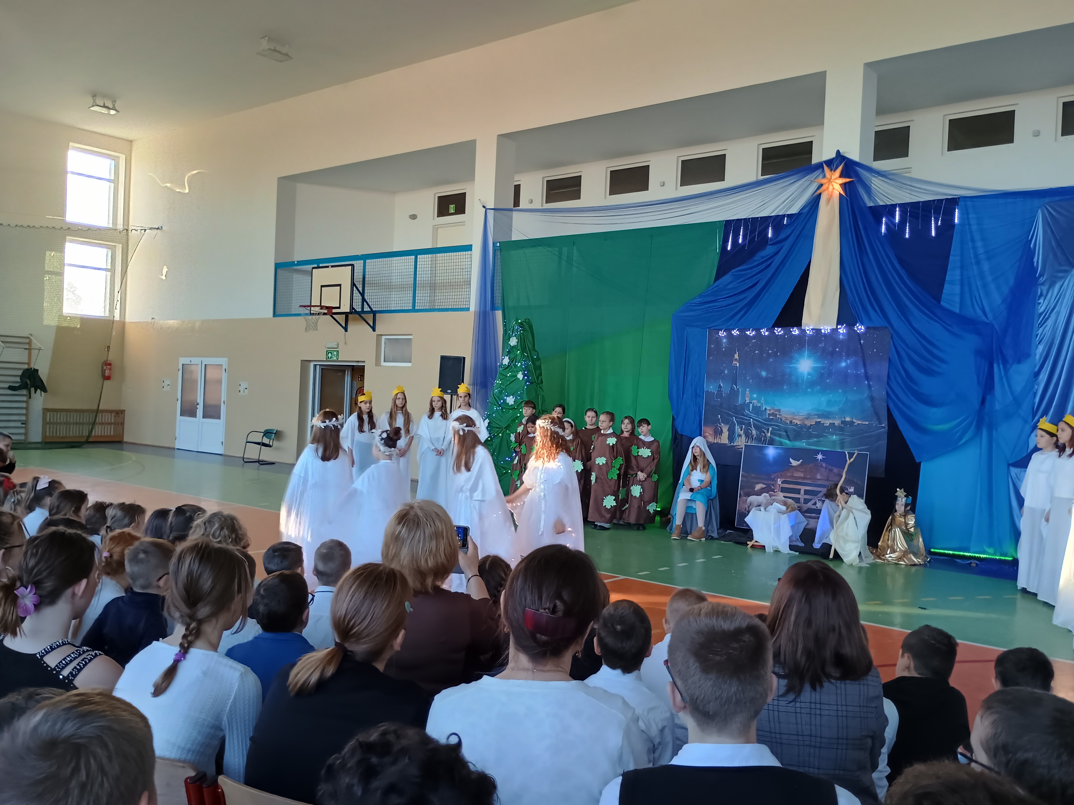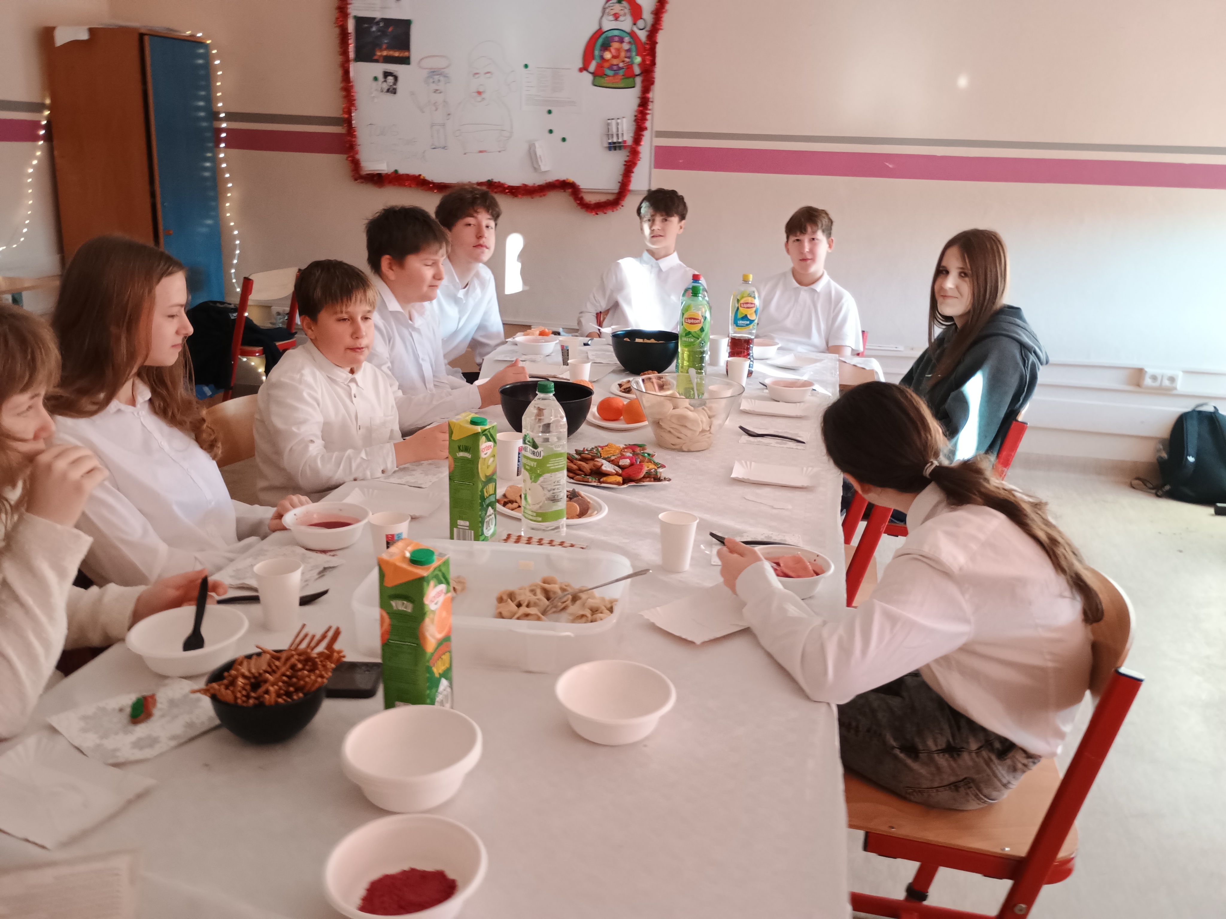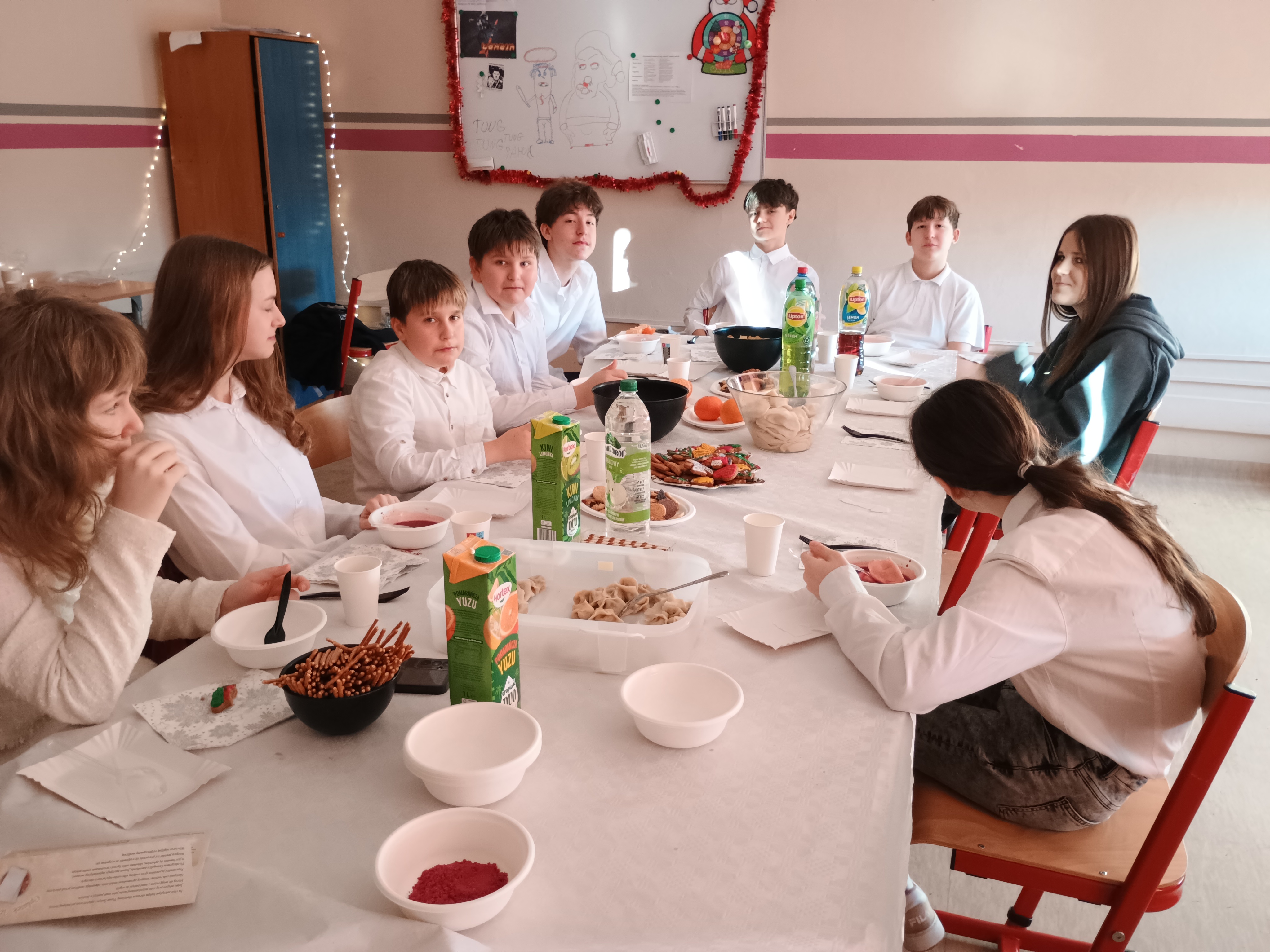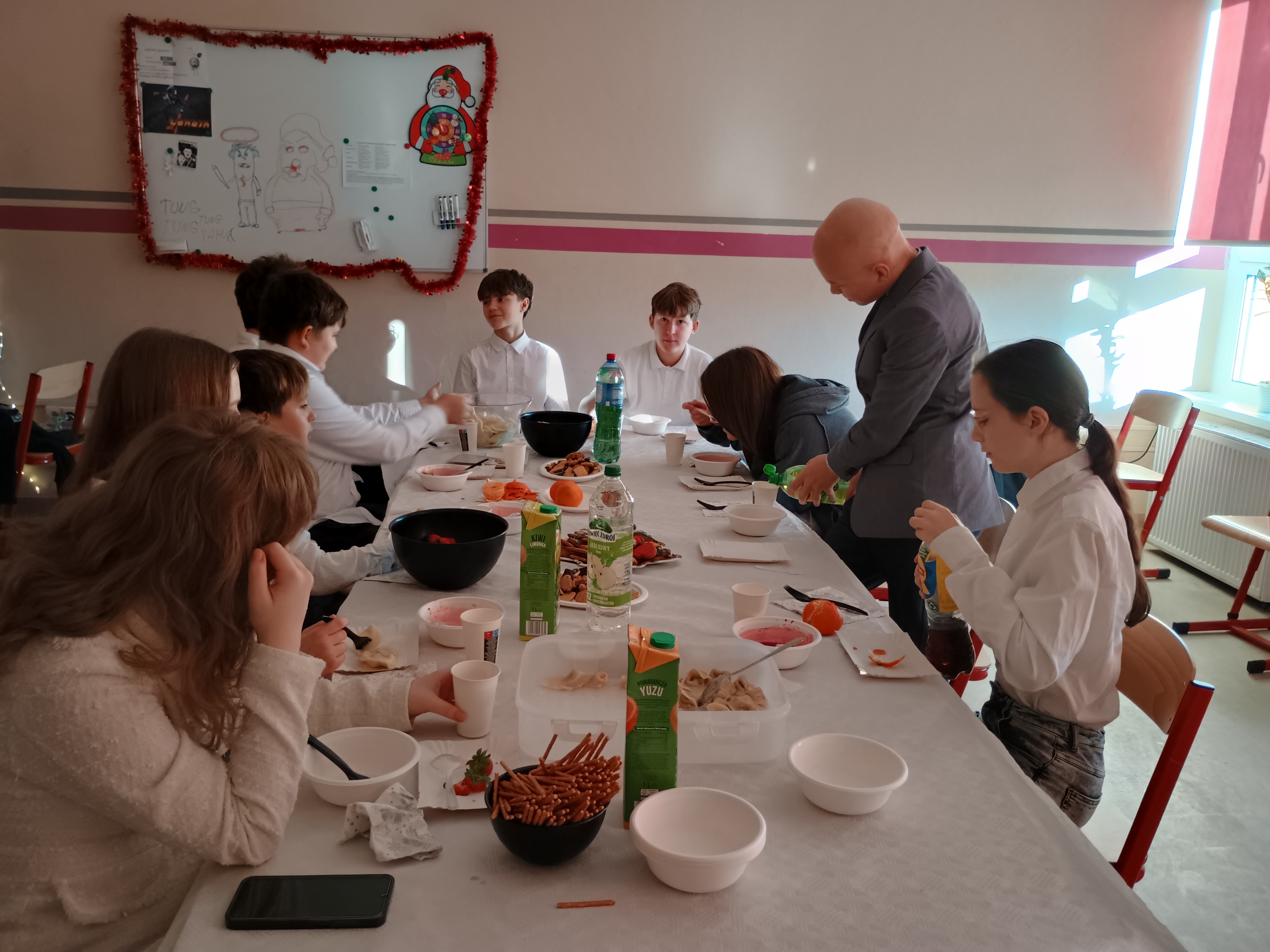 19 grudnia uczestniczyliśmy w szkolnych jasełkach. Po jasełkach mieliśmy wigilię klasową. Rodzice (reprezentowani przez mamę Kasi) zadbali o to, by na talerzach pojawił się ciepły barszcz, uszka, pierogi. Nie udało się zjeść wszystkiego, no ale takie sa właśnie wigilie. Bardzo dziękujemy.