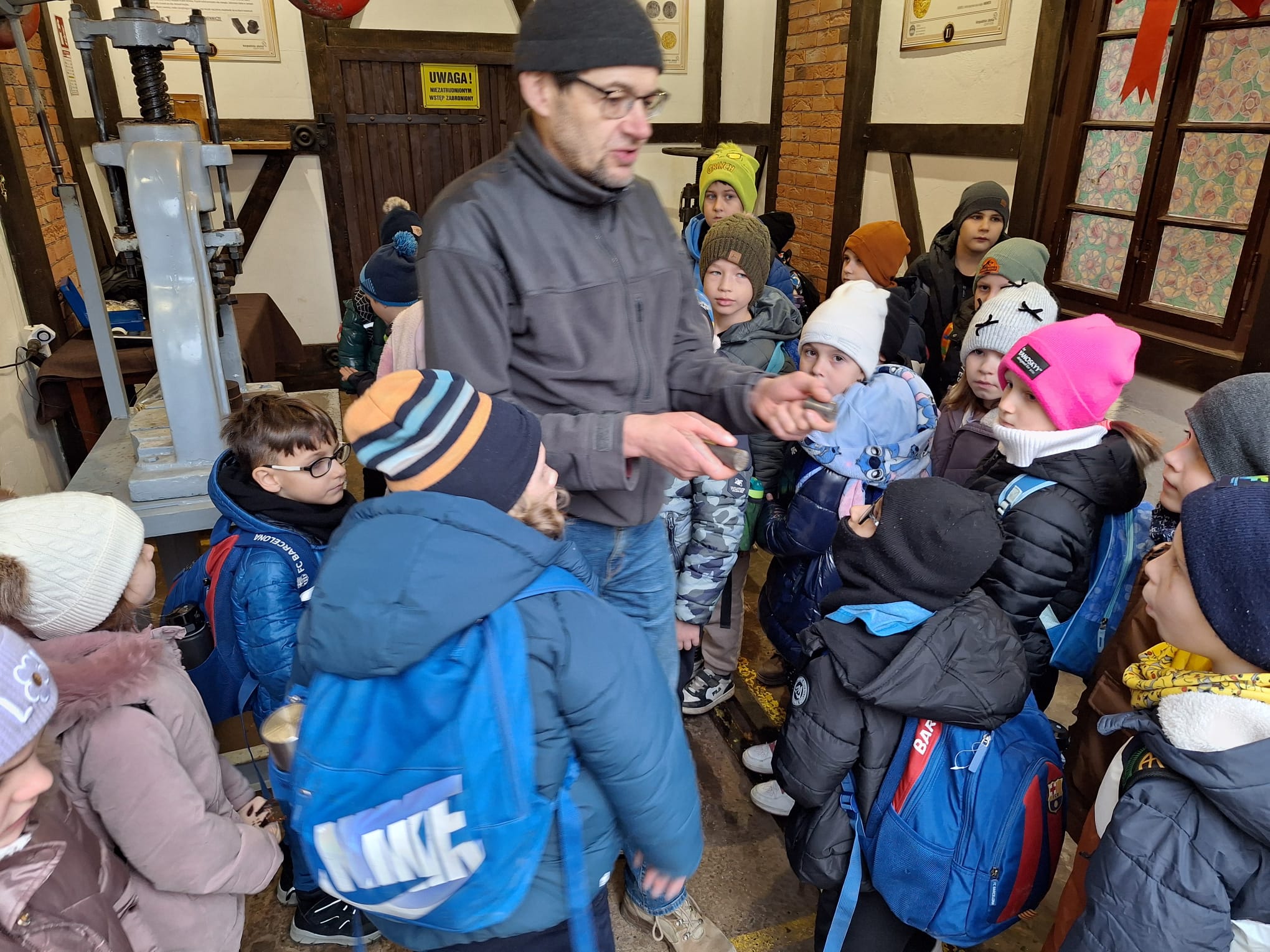 Wyjazd do Kopalni Złota w Złotym Stoku był niezwykle ciekawy. Oprócz atrakcji w postaci zwiedzania kopalni, pokazu wybijania monet, odlewania sztabki metalu, poszukiwania minerałów czy przejazdu kolejką podziemną były opowieści związane z podróżami, jakie dokonuje Mikołaj, a także spotkanie z Mikołajem.
