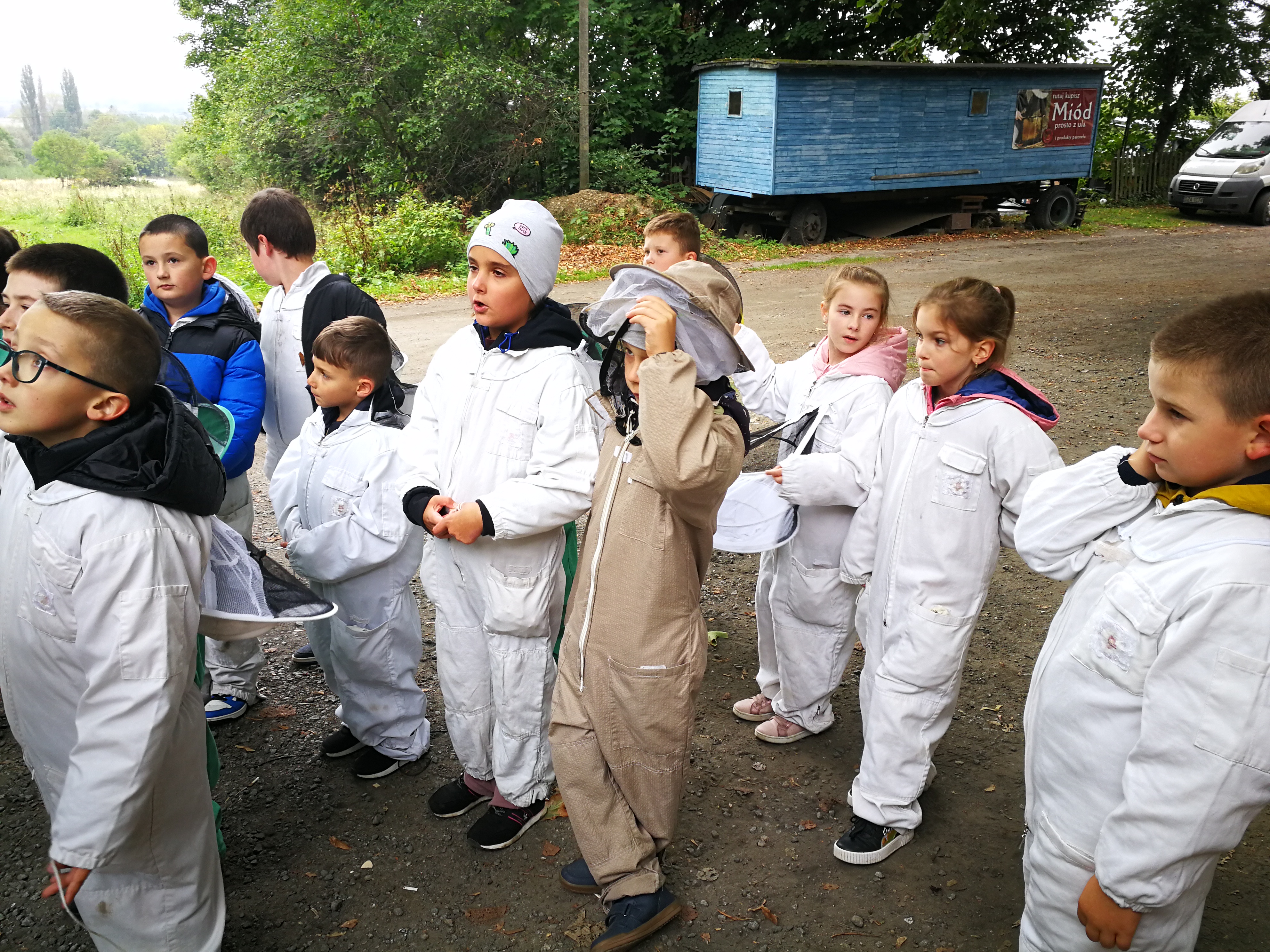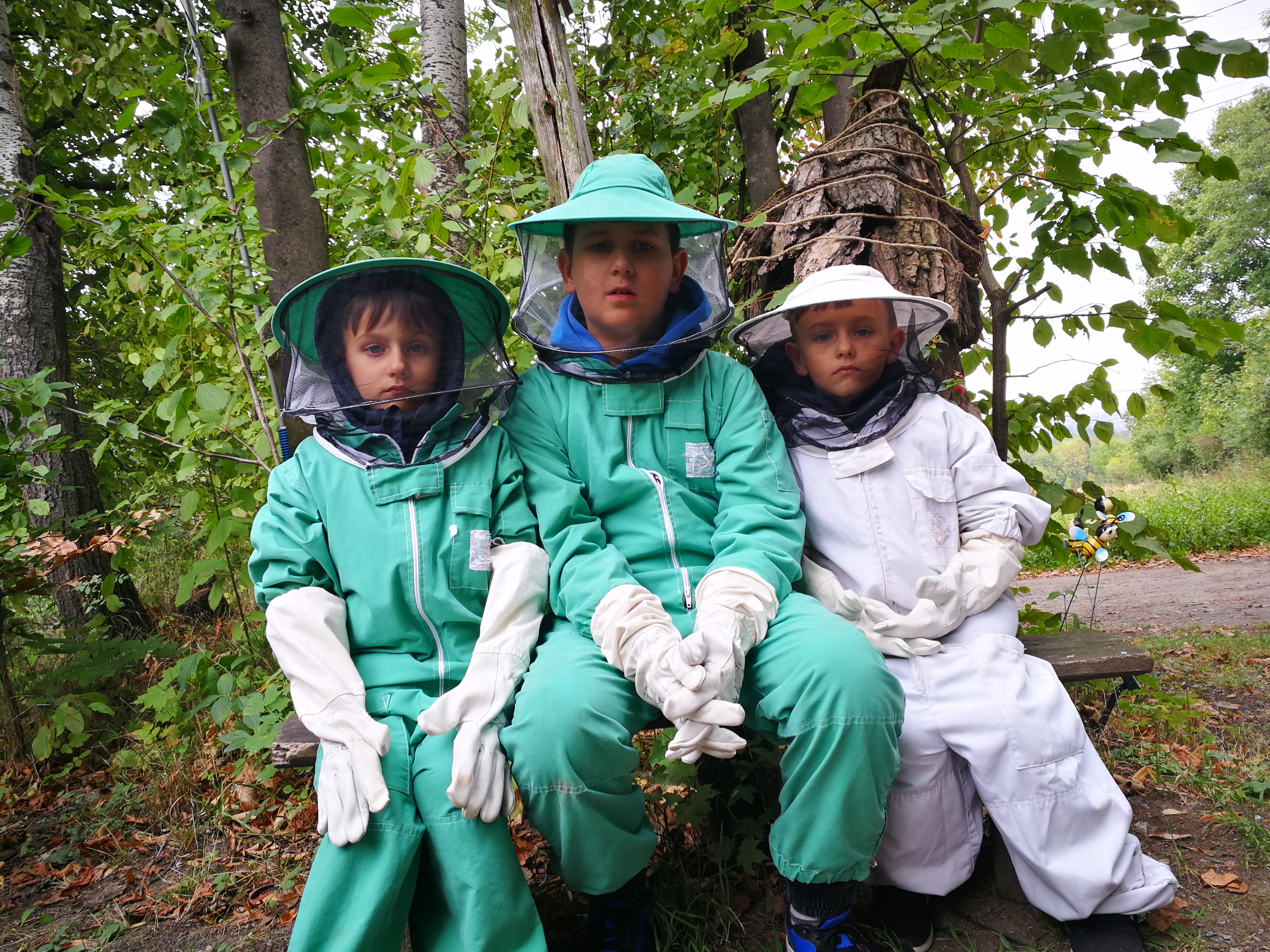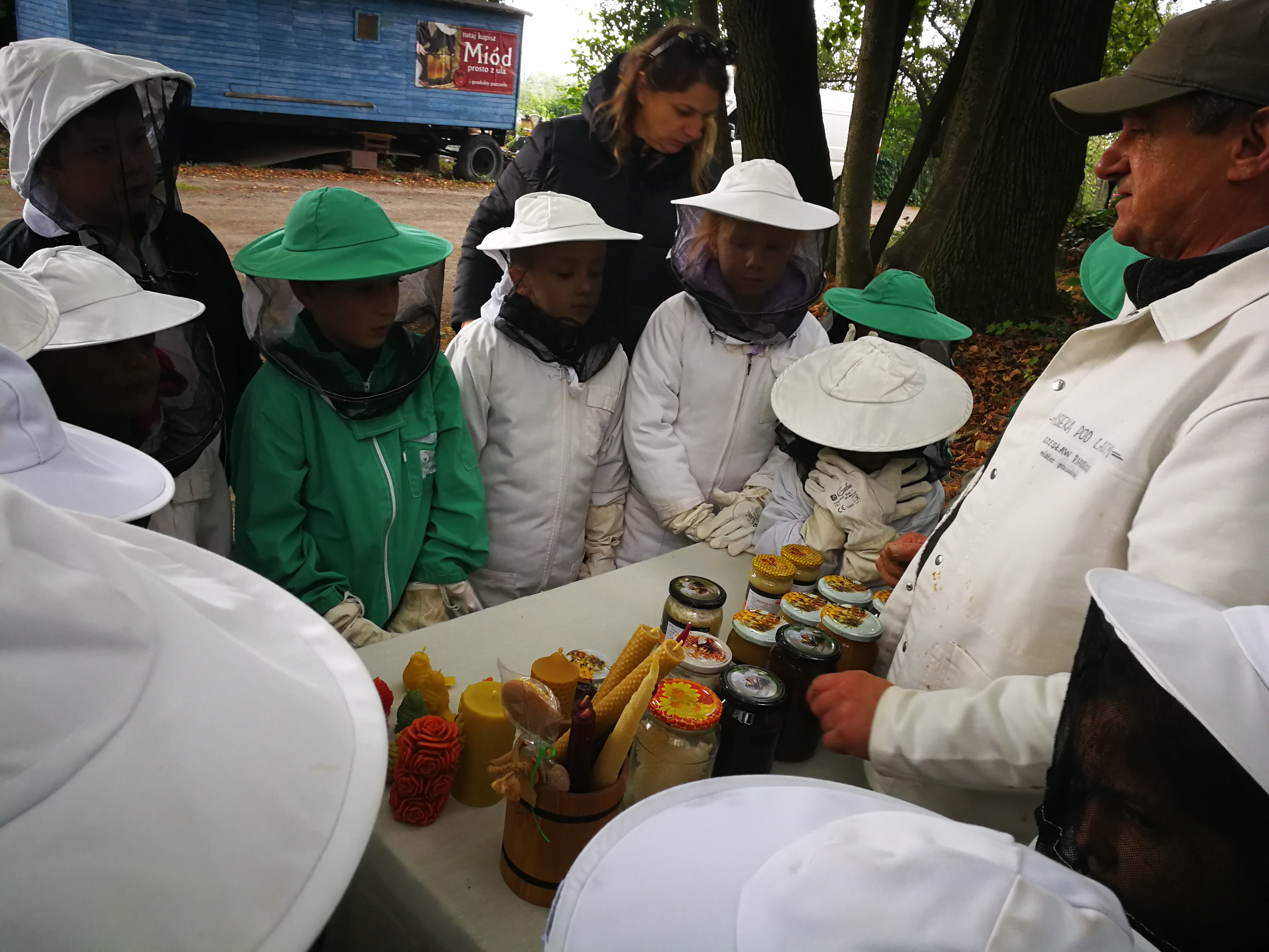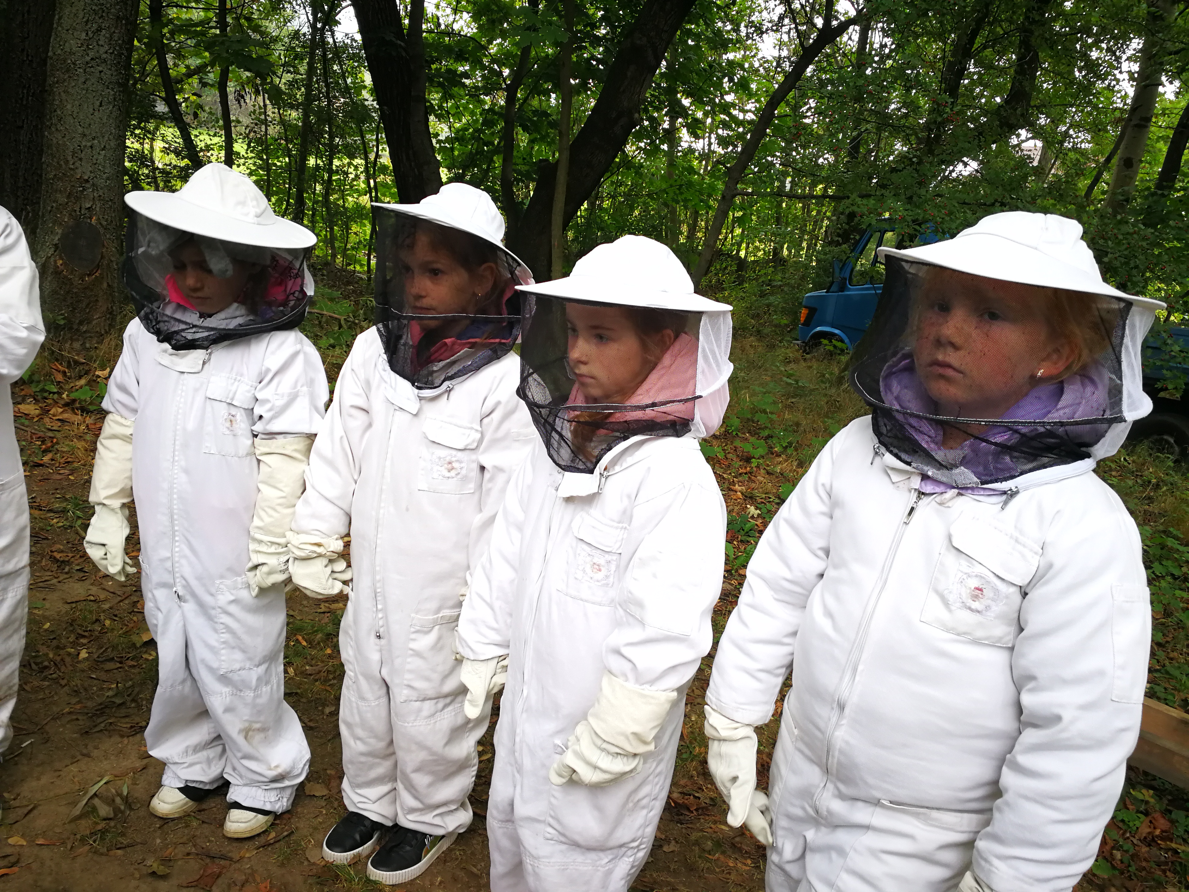 Podczas zajęć w Leśnej Szkole w Bielawie  rozpoznawaliśmy różne owady, szukaliśmy owadów, aby obserwowac je w powiększeniu, odwiedziliśmy pasiekę i dowiedzieliśmy się wielu interesujacych ciekawostek dotyczących życia pszczół od mistrza pszczelarstwa Pana Czesława