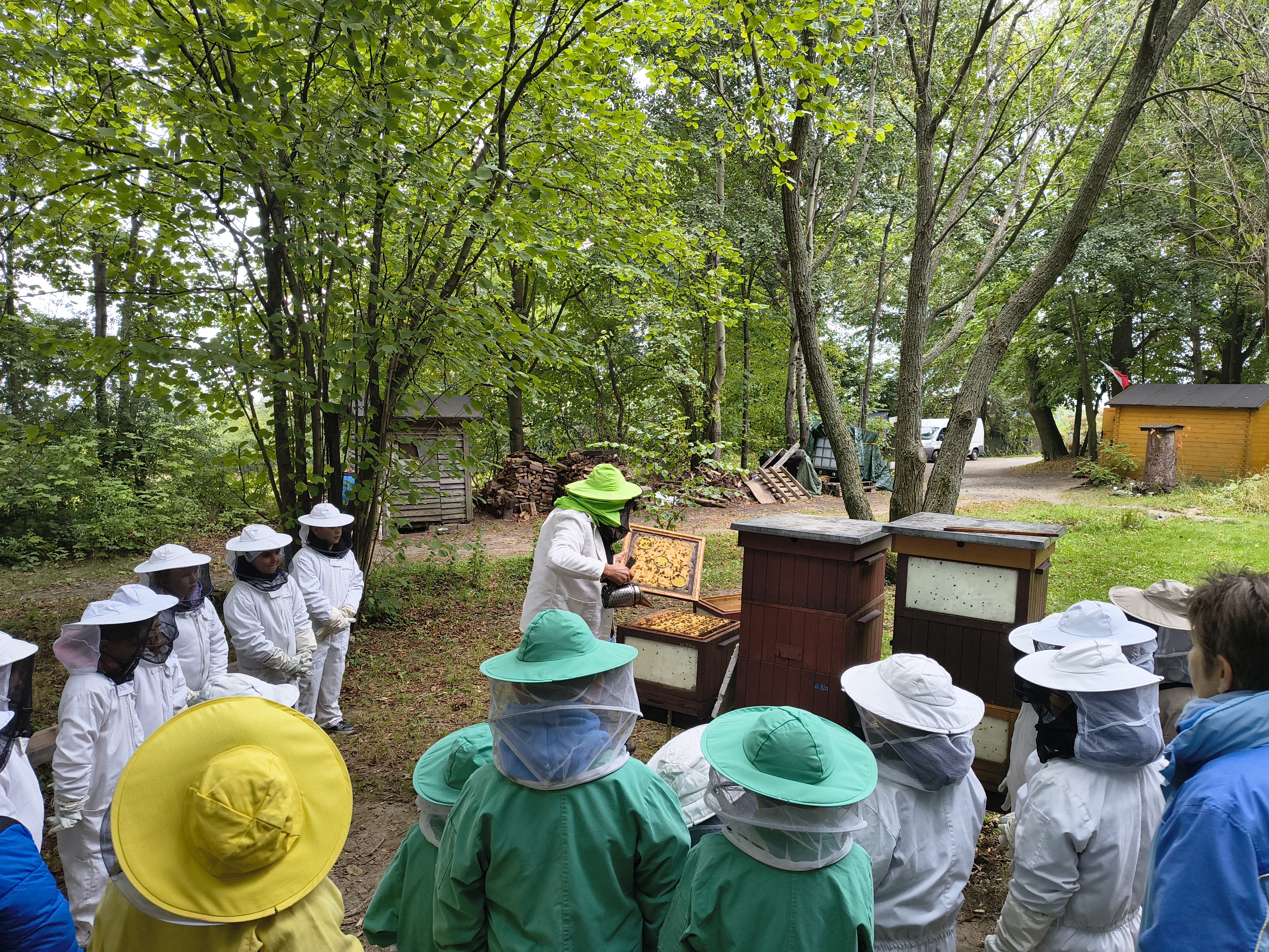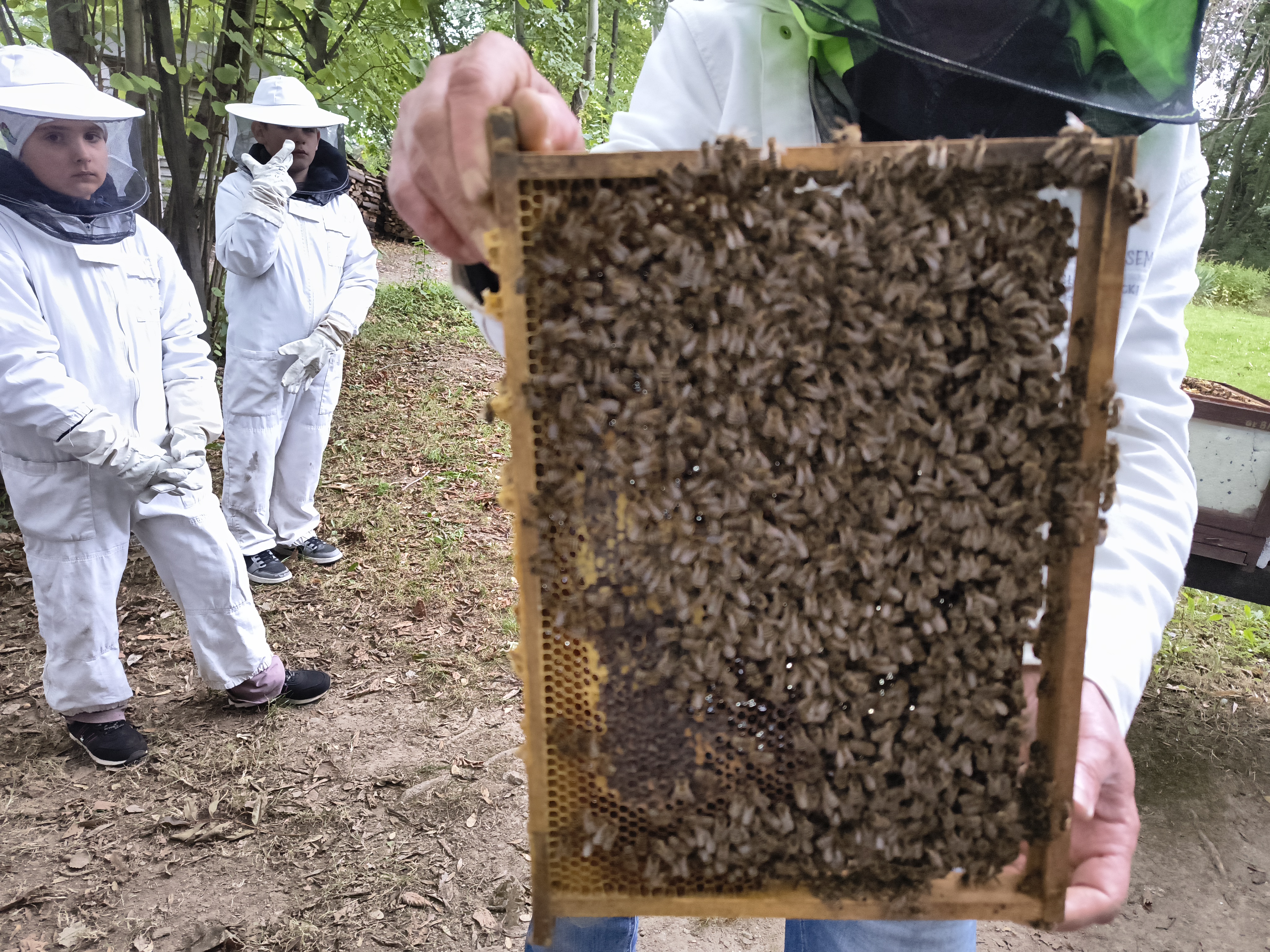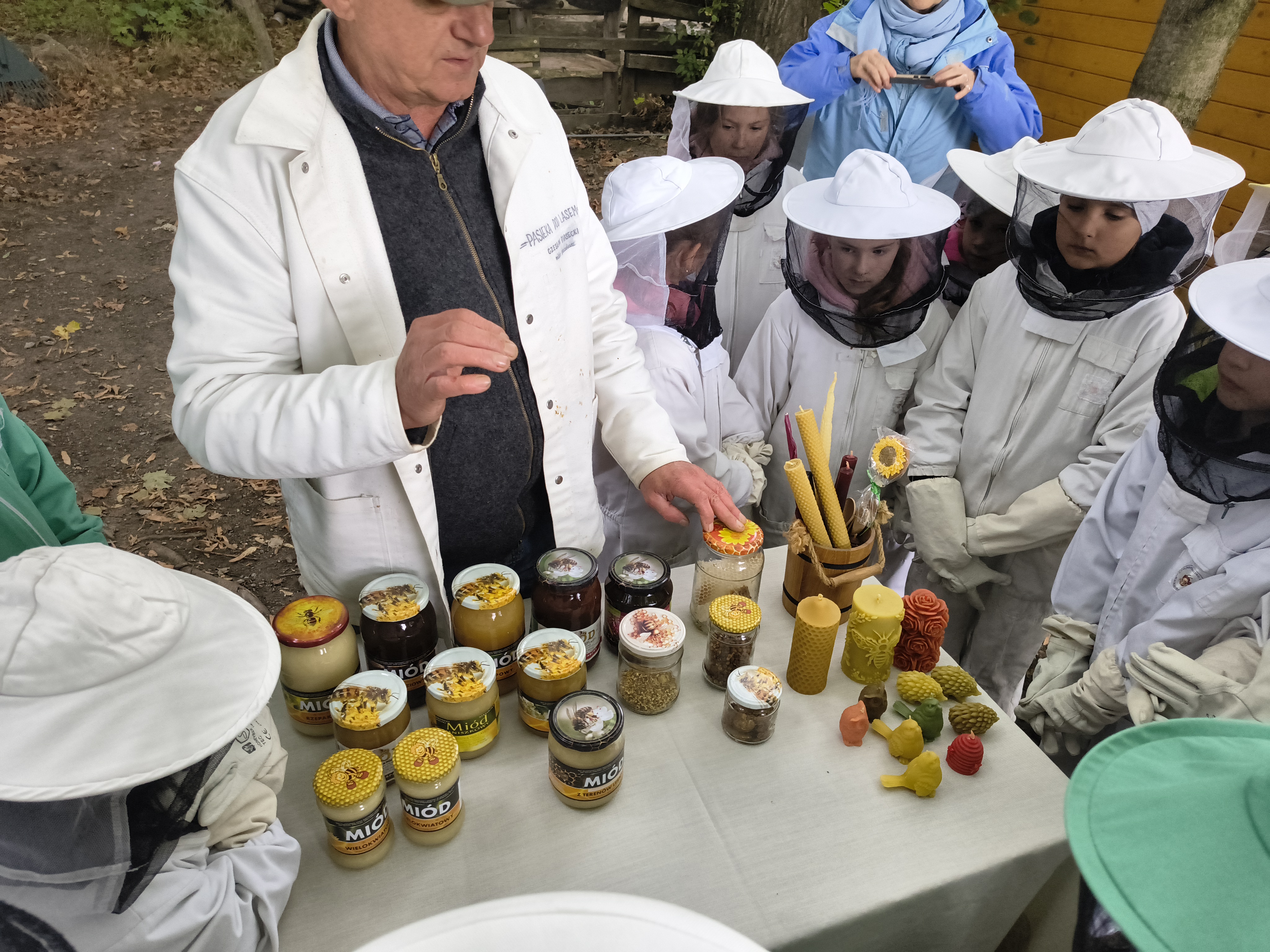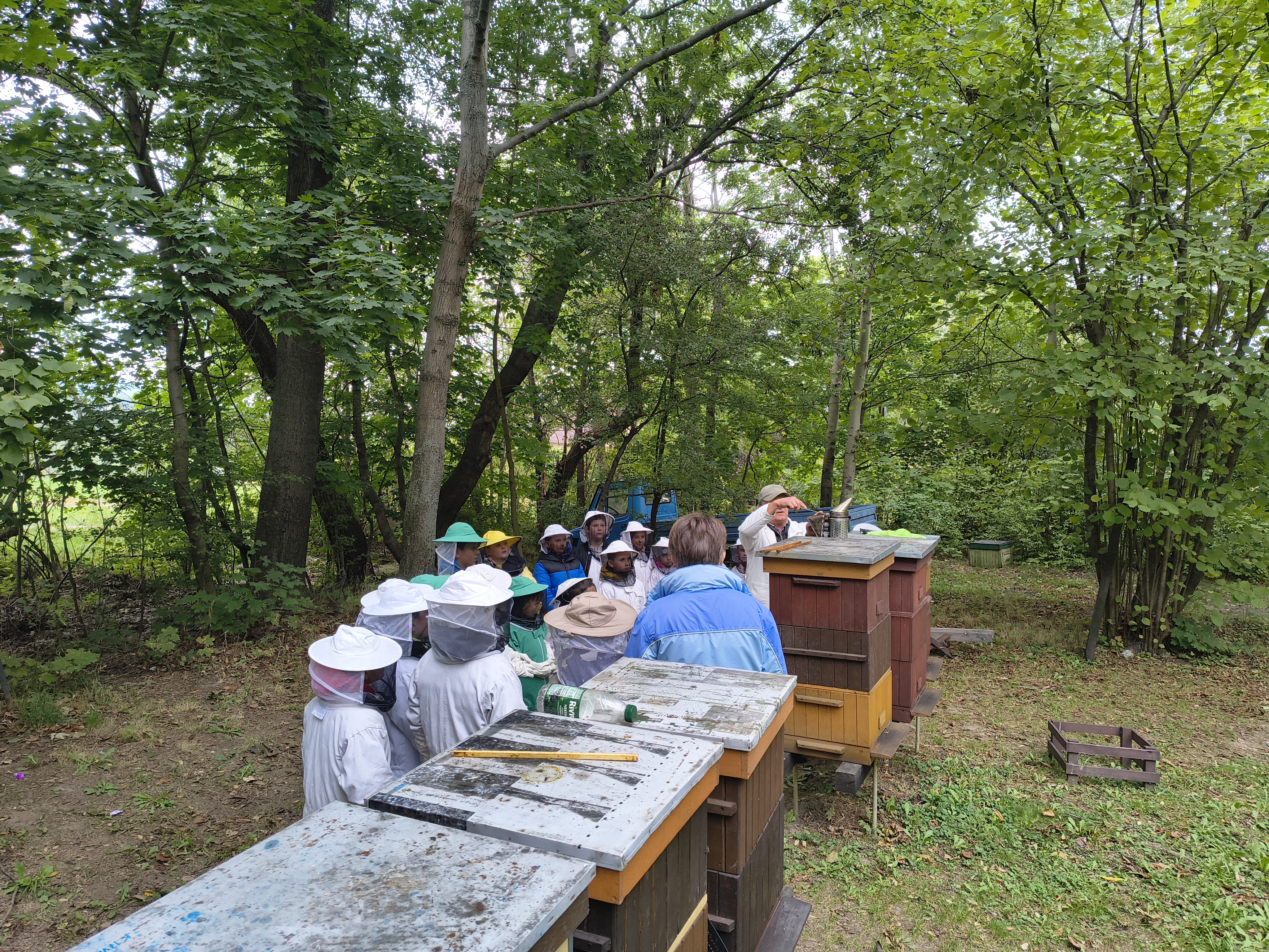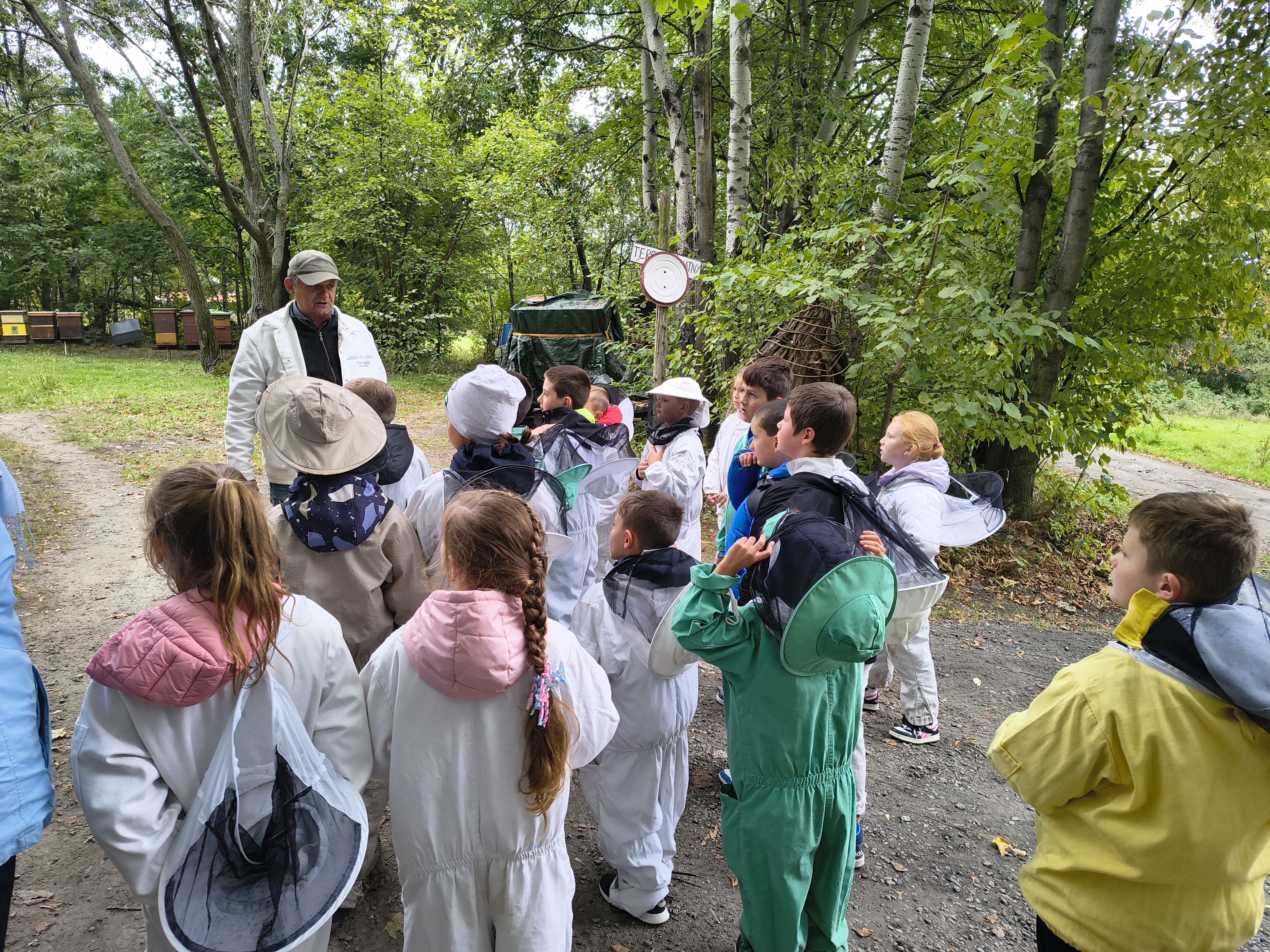 W dalszej części wycieczki uczniowie udali się przez las do pasieki. Tam wysłuchali prelekcji mistrza pszczelarstwa, który opowiedział o pracy pszczół i sposobach opieki nad ulami. Mieli również możliwość obejrzenia prawdziwych uli oraz poznania darów, jakie człowiek otrzymuje dzięki pszczołom.