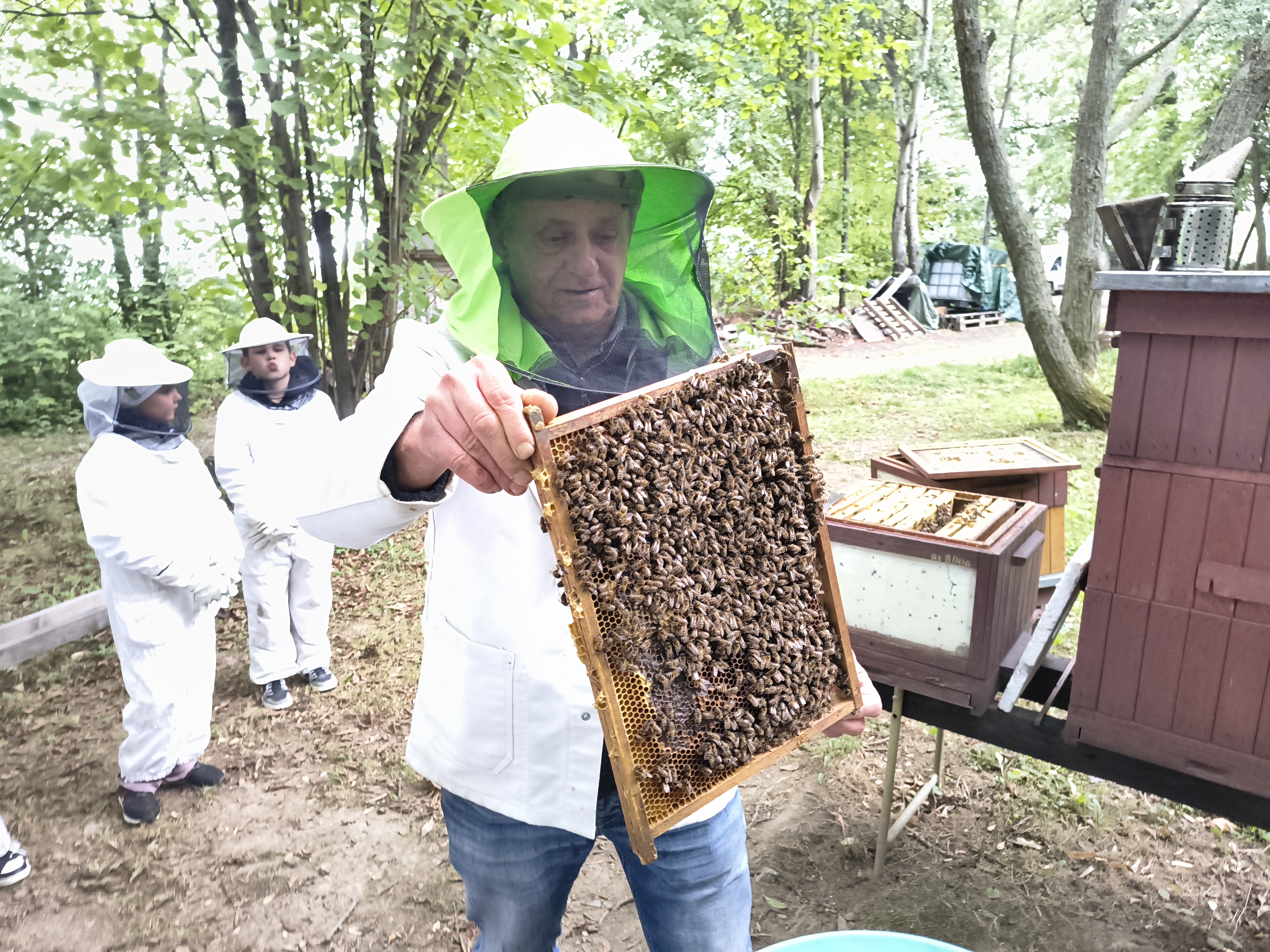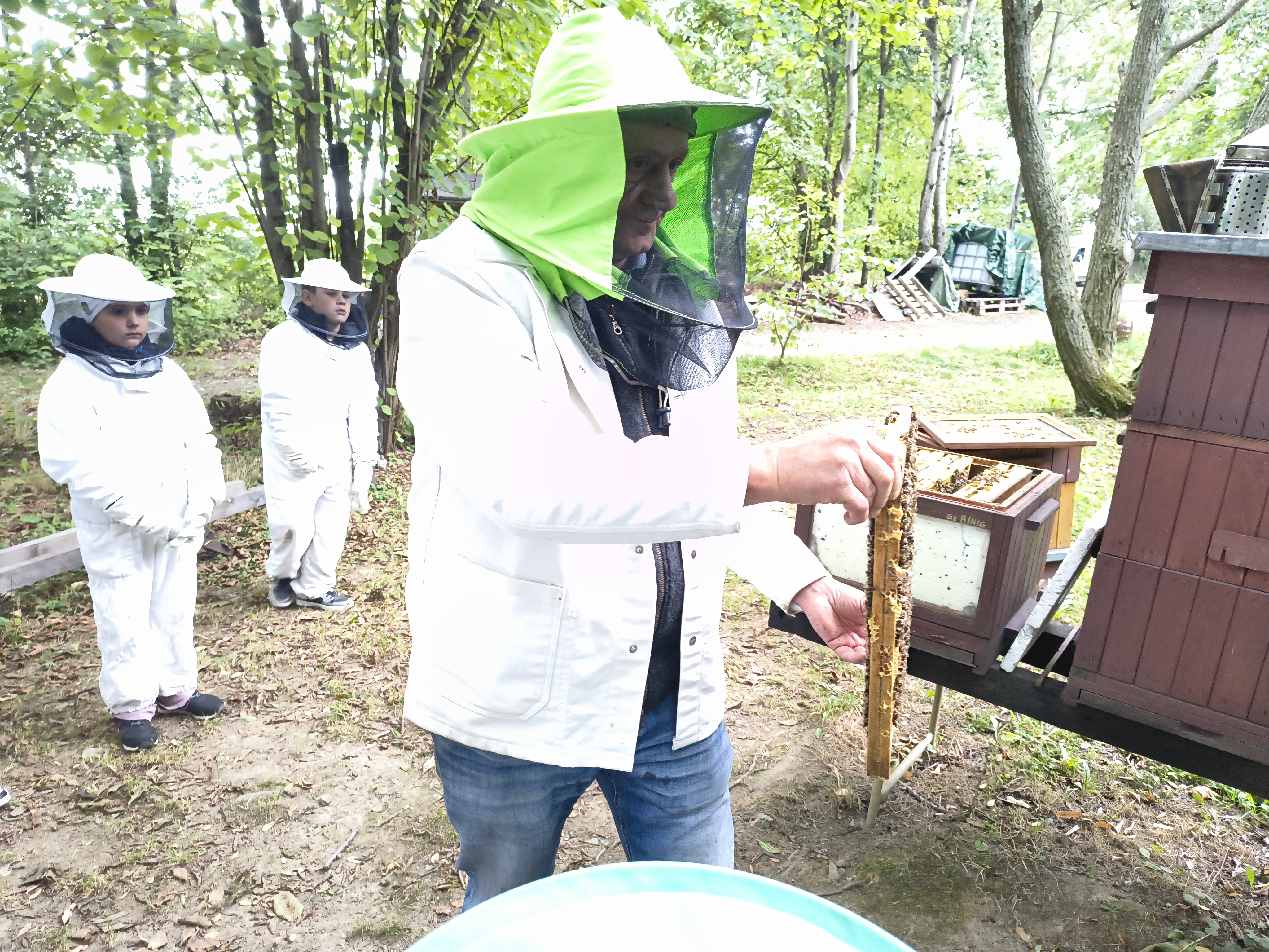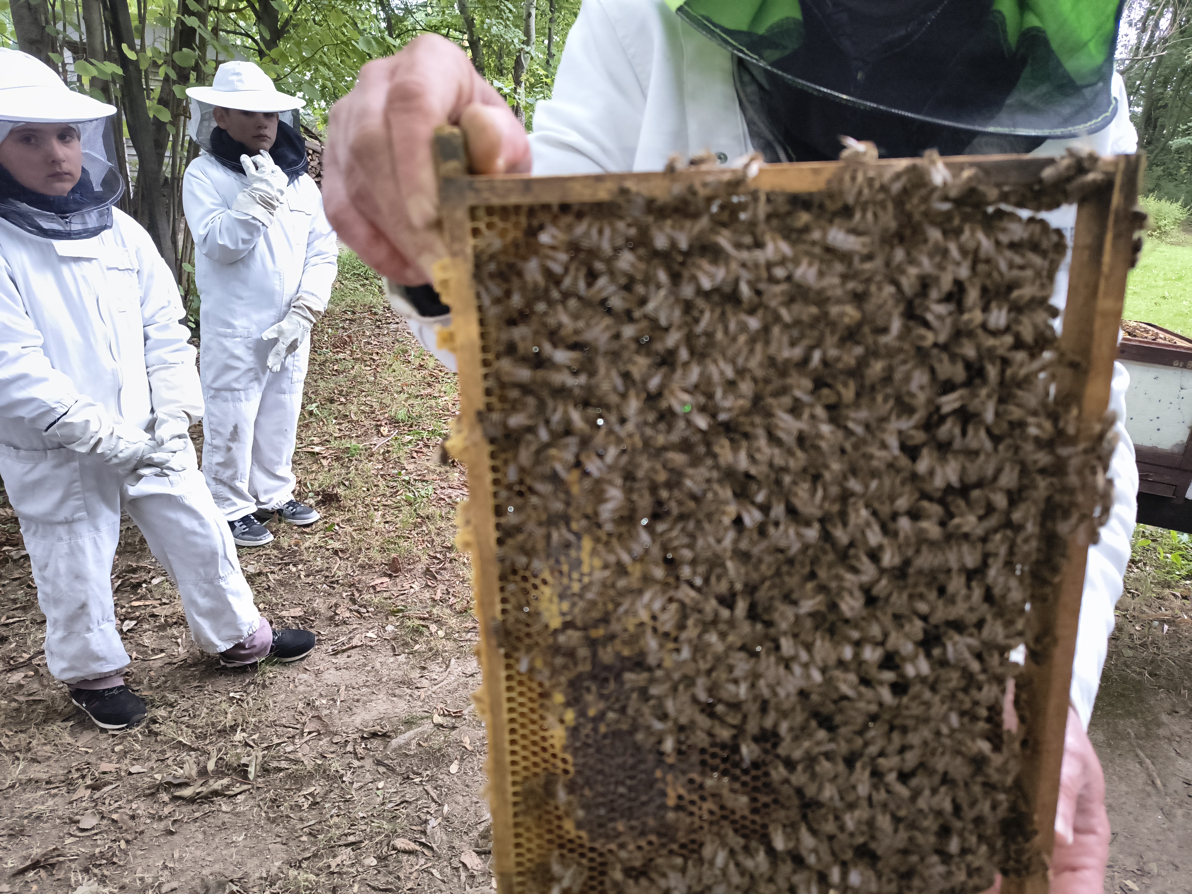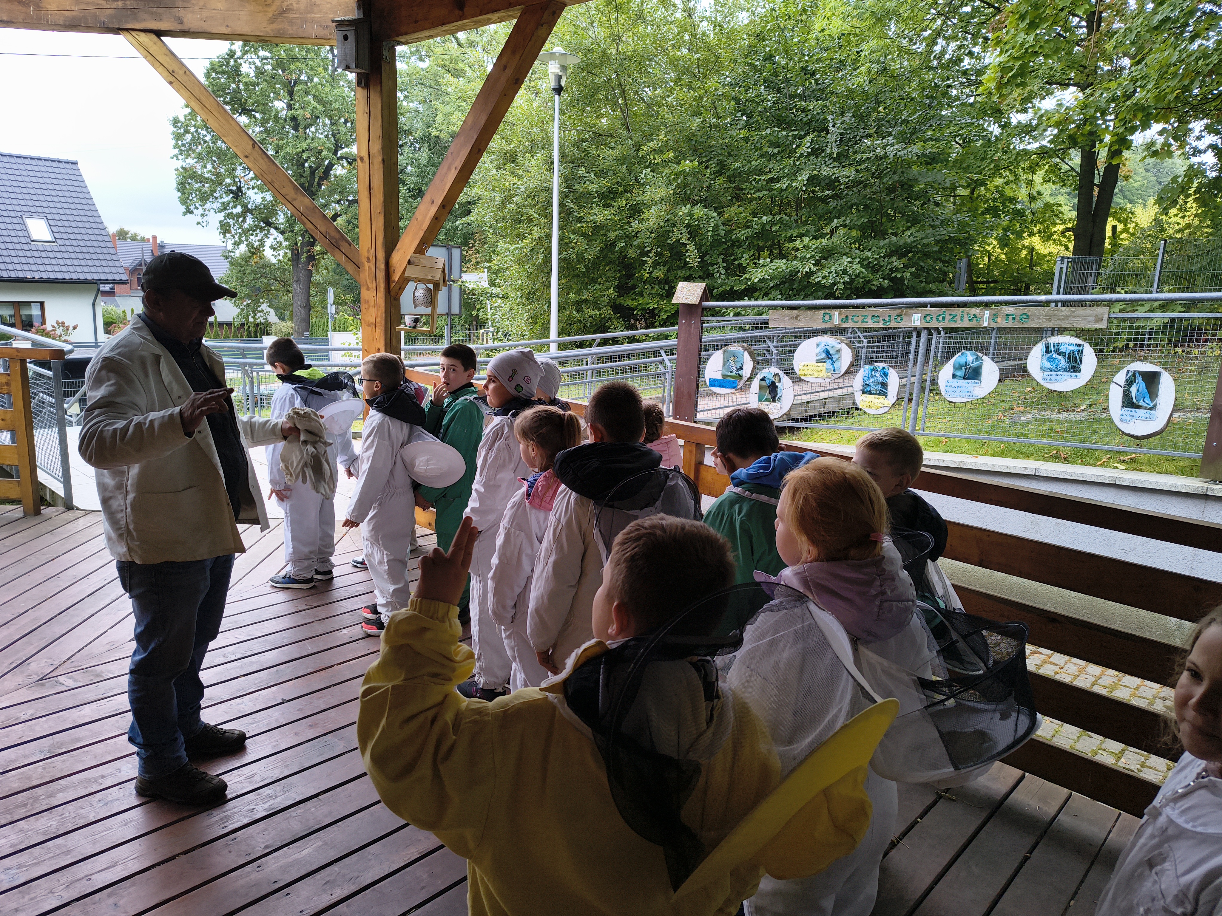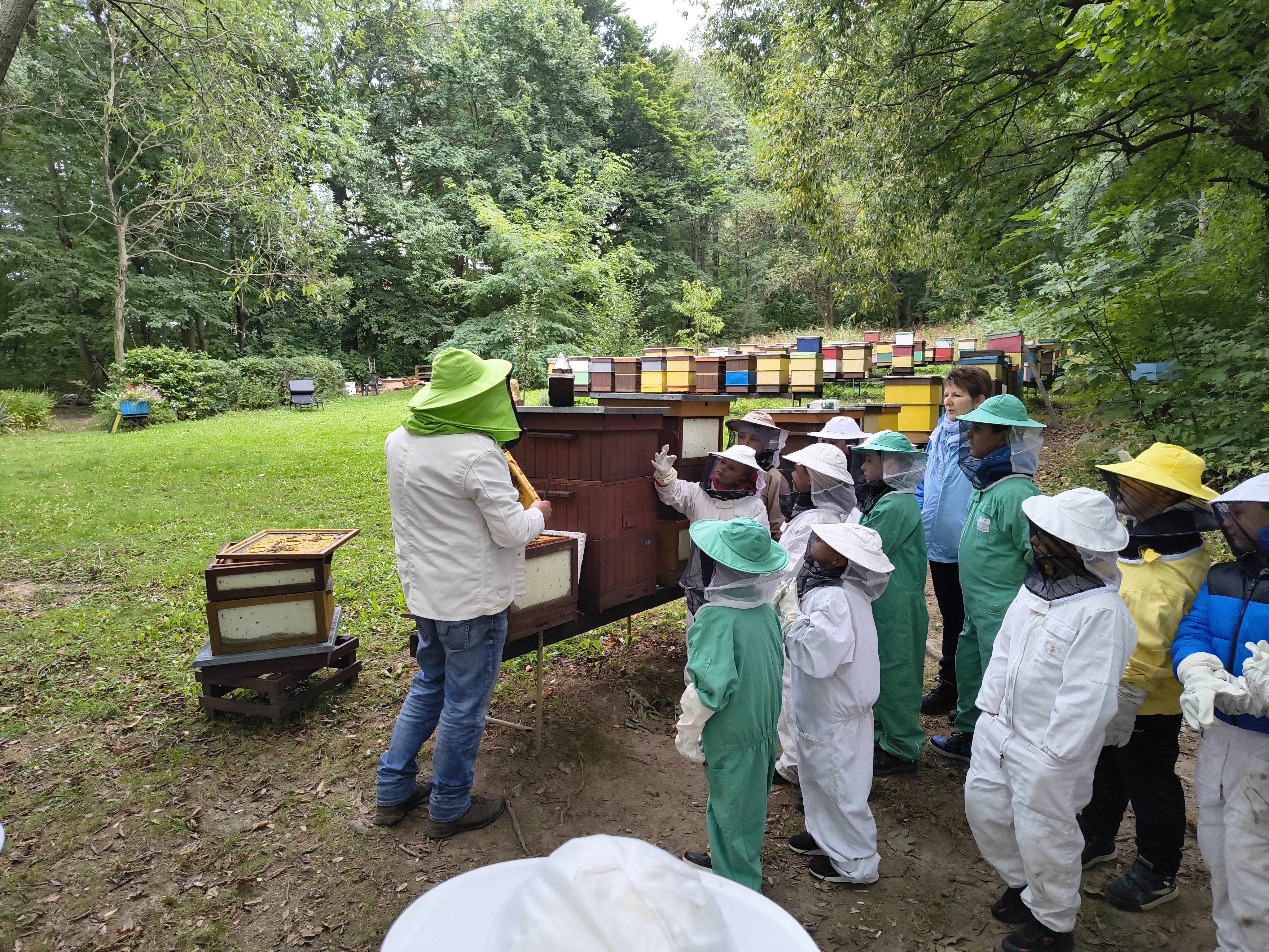 W dalszej części wycieczki uczniowie udali się przez las do pasieki. Tam wysłuchali prelekcji mistrza pszczelarstwa, który opowiedział o pracy pszczół i sposobach opieki nad ulami. Mieli również możliwość obejrzenia prawdziwych uli oraz poznania darów, jakie człowiek otrzymuje dzięki pszczołom.