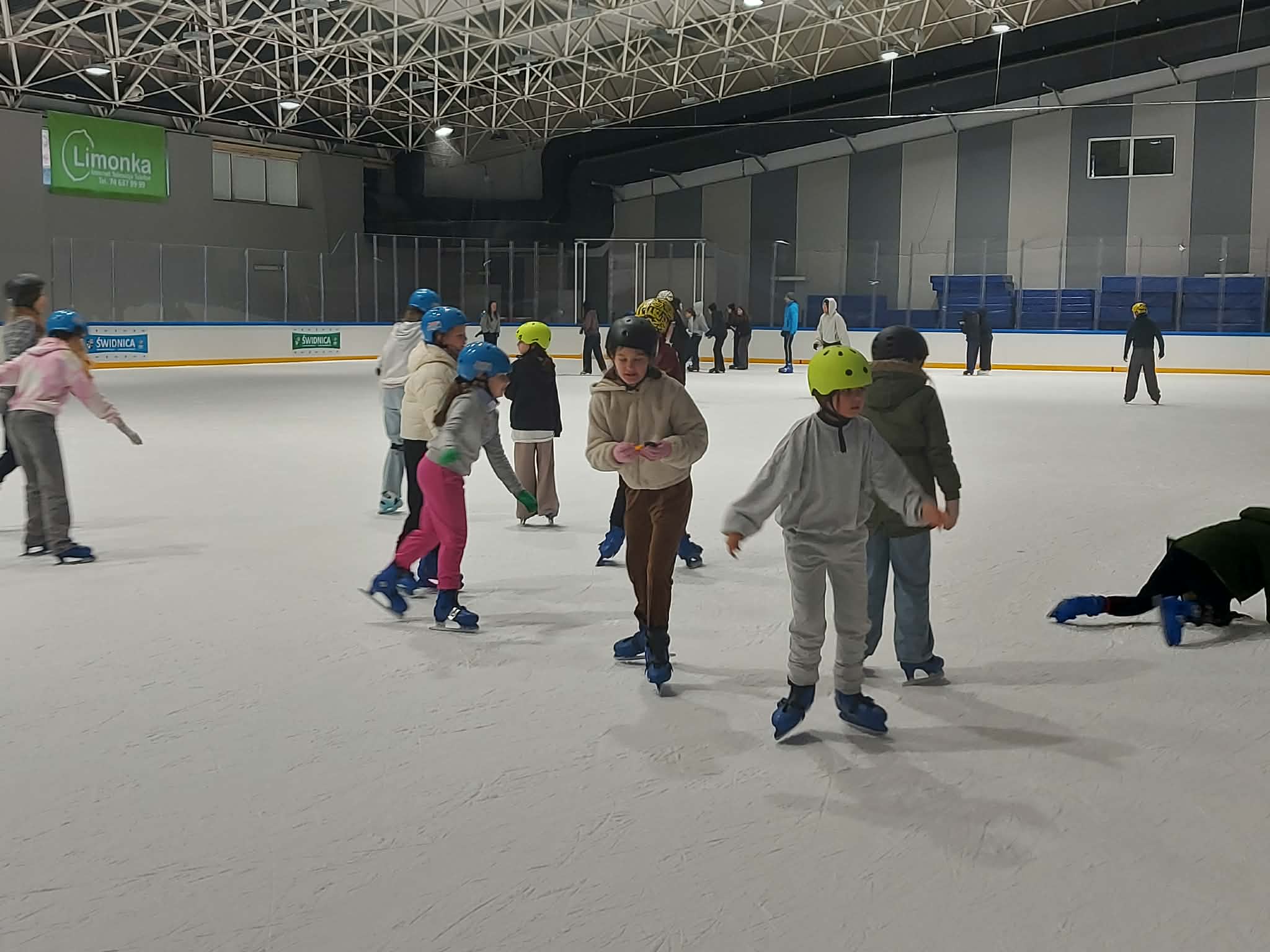 Dnia 29 stycznia uczniowie klasy 4 oraz 5b zamienili szkolne ławki na tafle lodu! Wycieczka była doskonałą okazją do aktywnego spędzenia czasu, integracji międzyklasowej oraz szlifowania łyżwiarskich umiejętności. Choć dla niektórych były to pierwsze kroki na lodzie, a dla innych pokaz profesjonalnych piruetów, wszystkim dopisywały świetne humory!