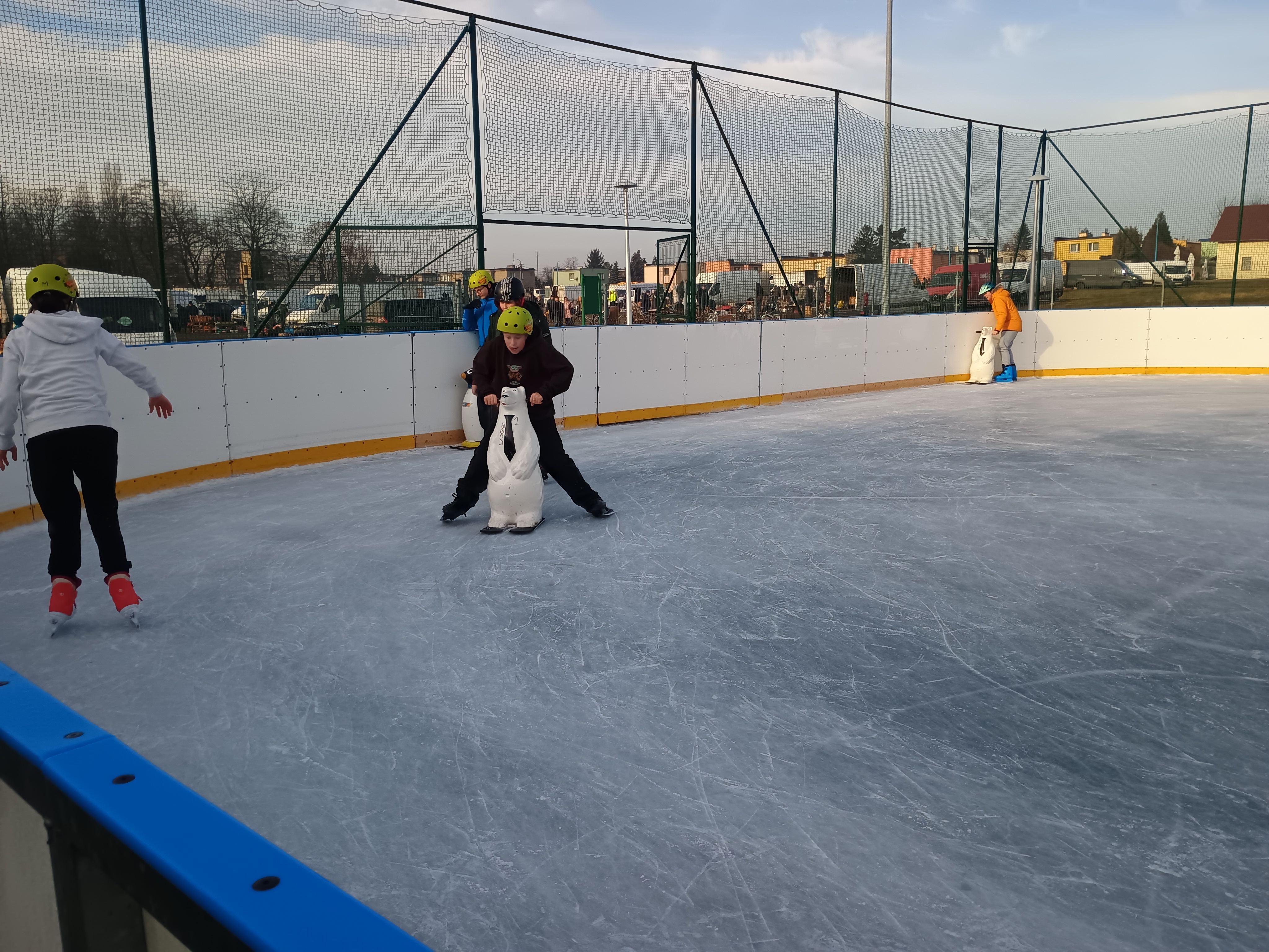 16 stycznia (jak co roku od 3 lat) wyjechaliśmy na lodowisko do Strzelina. W wyjeździe wzieli udział uczniowie z klasy 6a, 7a, i 7b. Pogoda dopisała. Temperatura w okolicach zera, lowowisko wyłącznie dla nas. DLa niektórych to była pierwsza wizyta na lodowisku i na poczatku potrzebne były niedźwiadki i pingwinki. KAżdy zaliczył  minimum jeden upadek. Było bezpiecznie - głowy chroniliśmy kaskami.